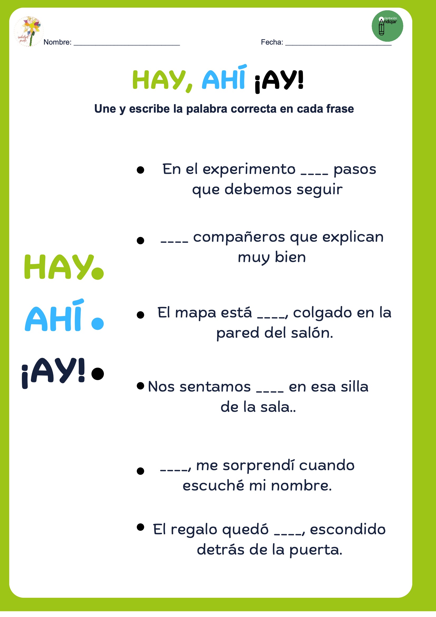HAY, AHÍ, ¡AY! Más de 40 oraciones 8