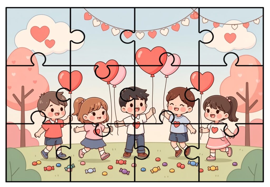 Estos puzzles pueden utilizarse como actividad individual o cooperativa, en rincones de aprendizaje, talleres de convivencia o como propuesta especial para celebrar el Día del Amor y la Amistad 💞.