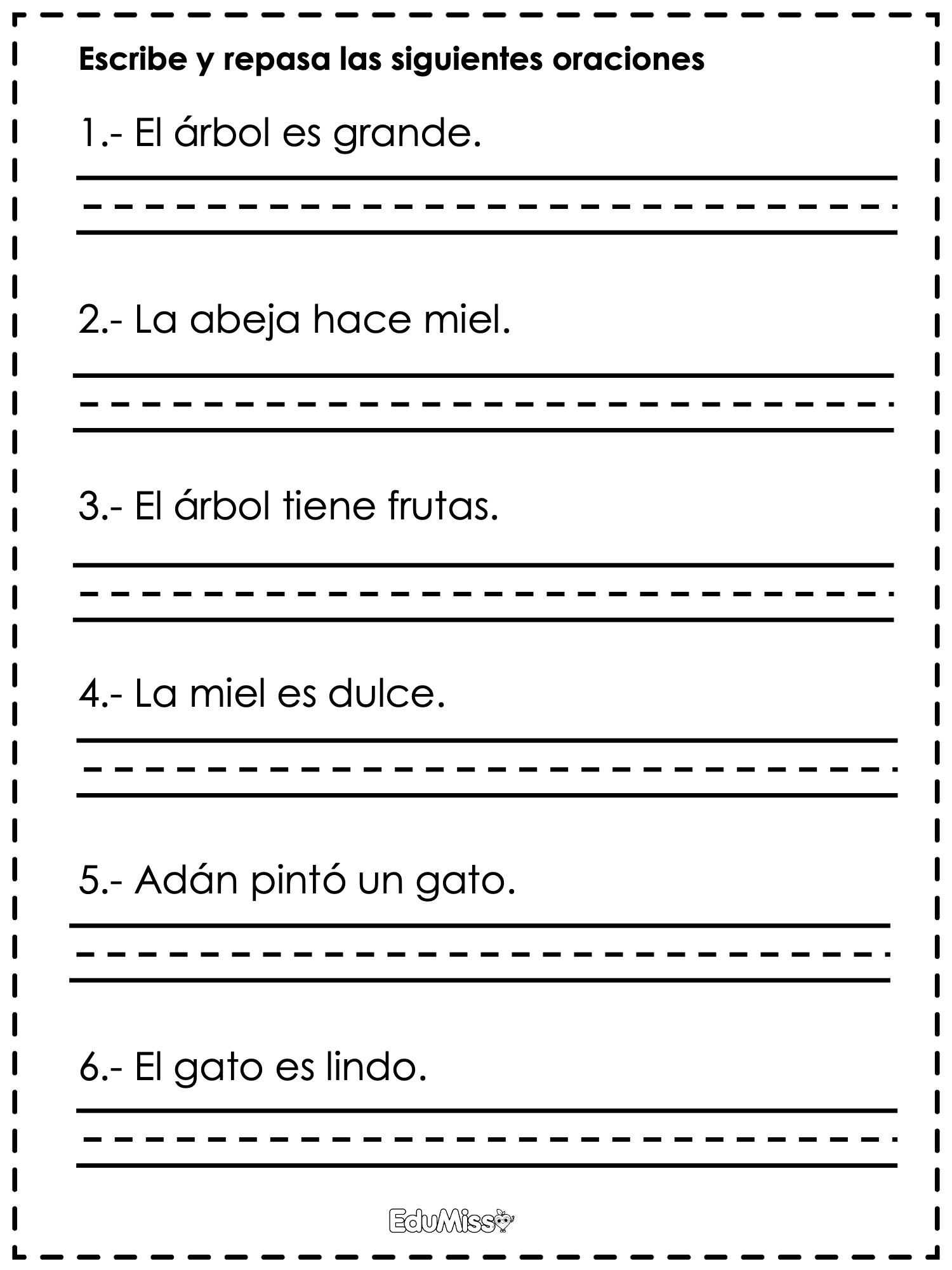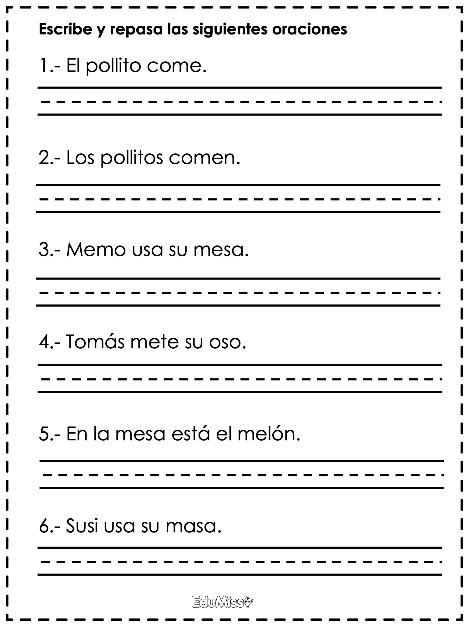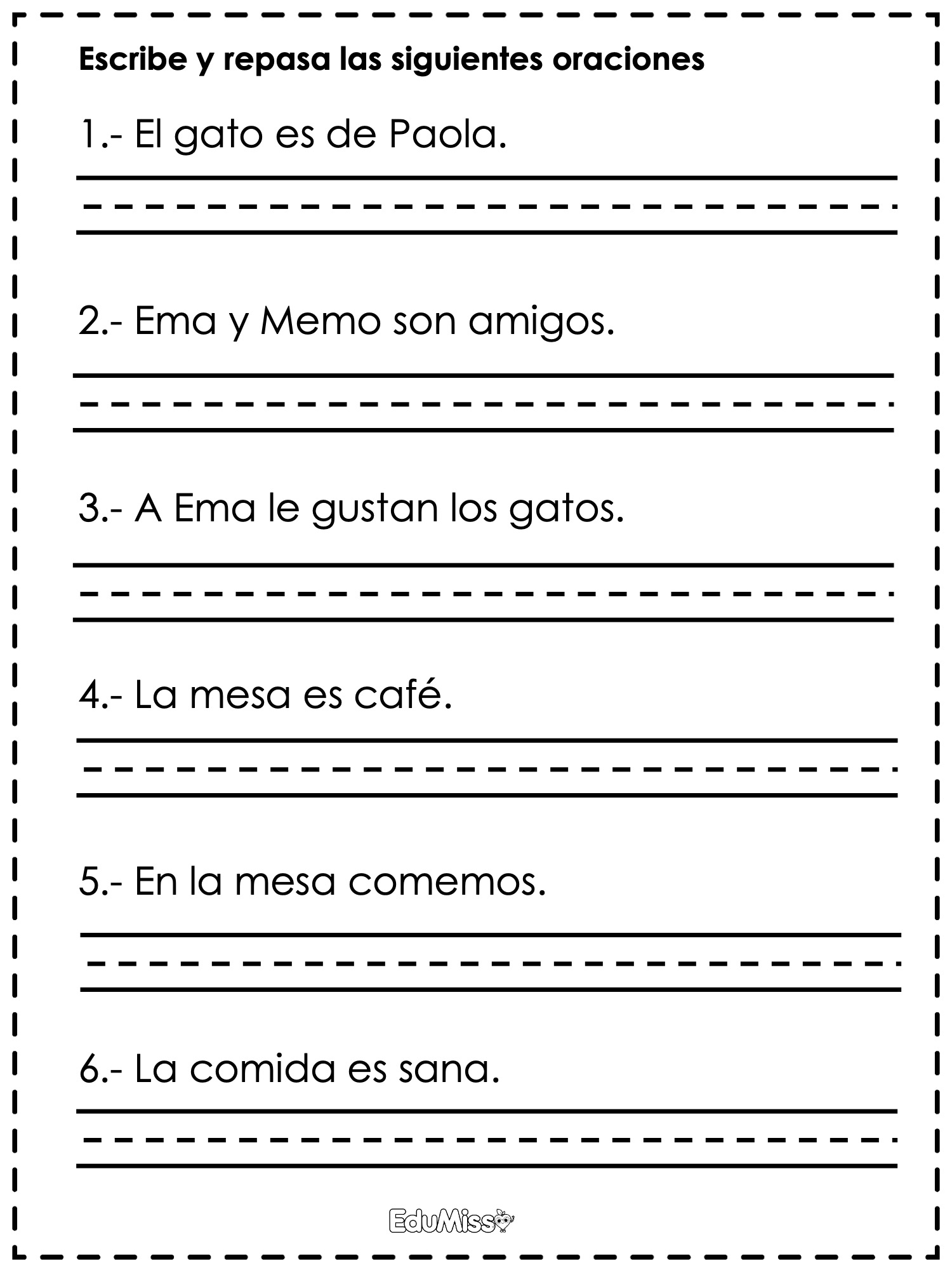 Se recomienda trabajar pocas oraciones cada día, leyendo primero en voz alta y después pasando a la copia o repaso, respetando siempre el ritmo de cada alumno.