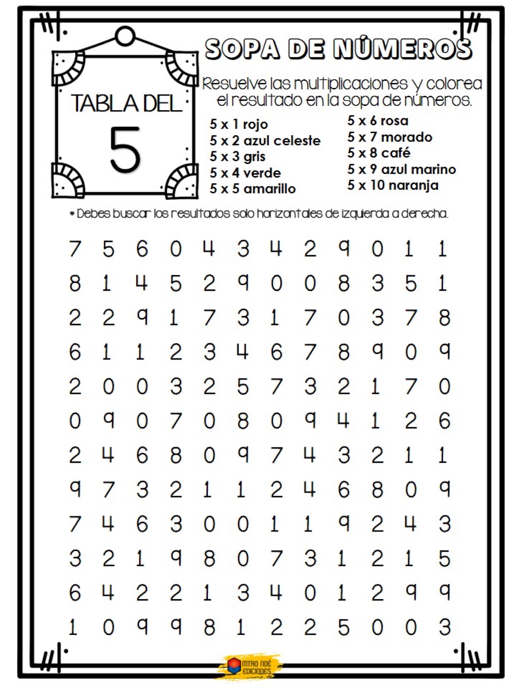 Sopa de números para aprender tablas de multiplicar 5 Publicado por orientacionandujar hace 3 semanas