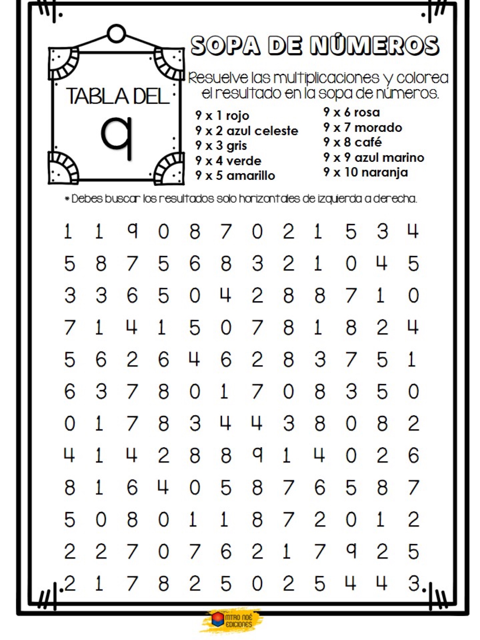 Sopa de números para aprender tablas de multiplicar 9 Publicado por orientacionandujar el 9 febrero, 2026