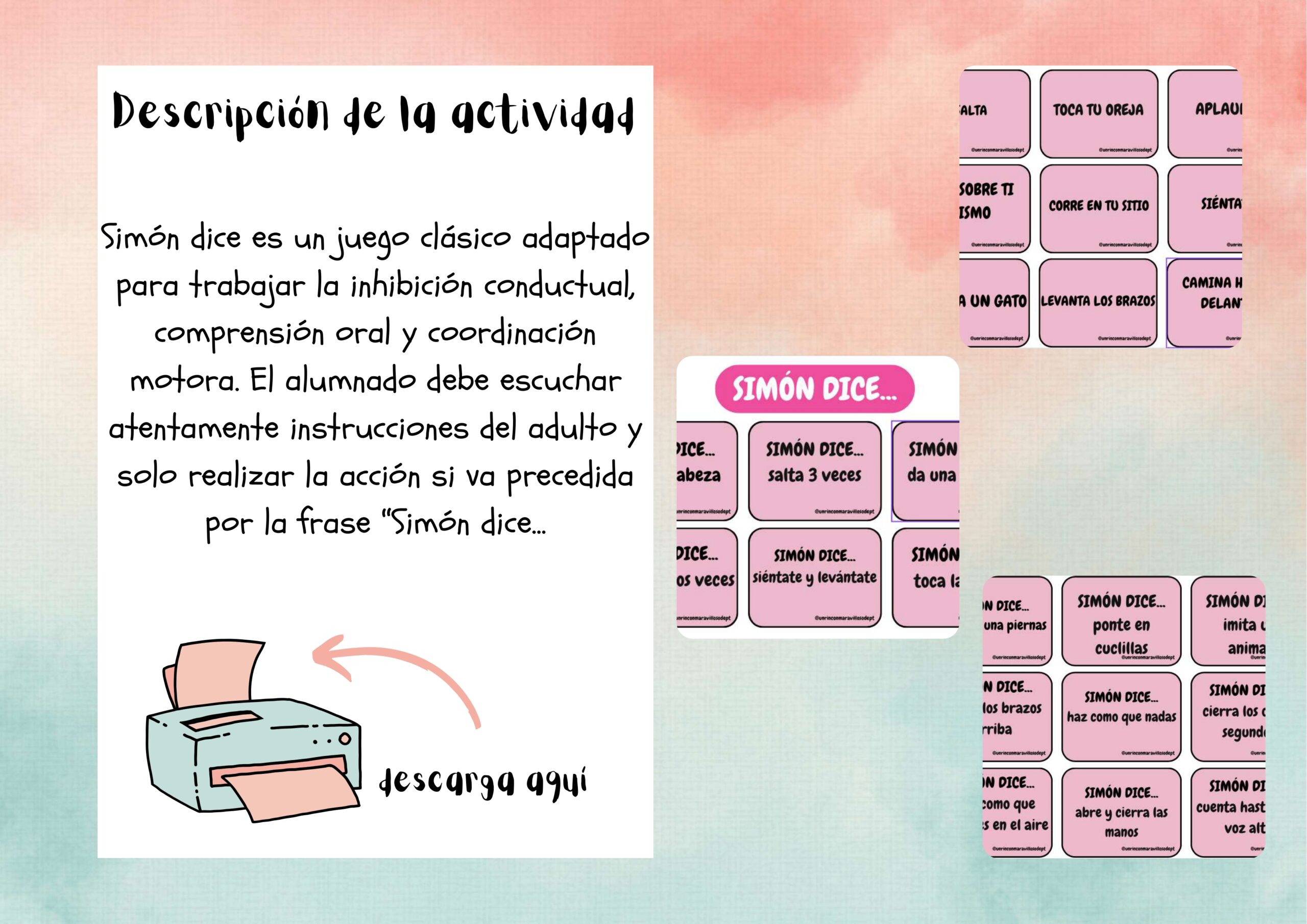 Por este motivo, compartir y utilizar actividades específicas para entrenar la inhibición resulta especialmente importante tanto en el aula como en el hogar. A través del juego y la experimentación, los alumnos aprenden a detenerse, pensar y elegir la mejor respuesta. Estas actividades permiten crear un entorno seguro donde equivocarse forma parte del aprendizaje y donde el autocontrol se entrena de manera natural y progresiva.