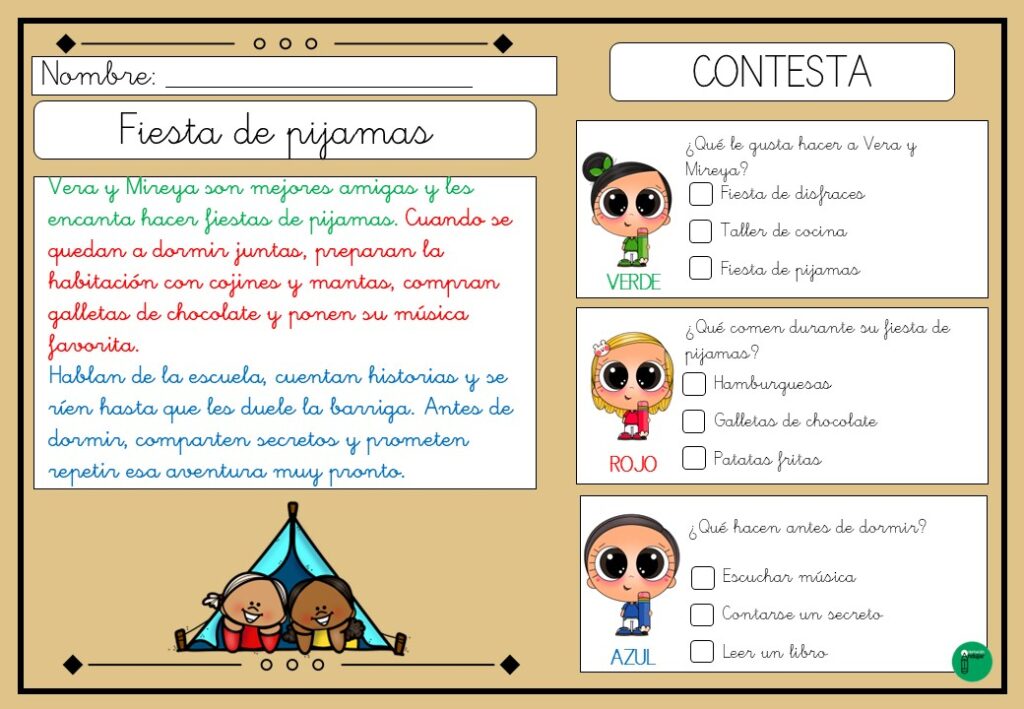 Cada lectura está diseñada con fragmentos de texto resaltados en diferentes colores. Estos colores no son meros adornos visuales, sino pistas clave que guían a los estudiantes en la identificación de información relevante. Al momento de responder preguntas de comprensión, los alumnos pueden utilizar los colores como referencia para localizar rápidamente las respuestas en el texto.