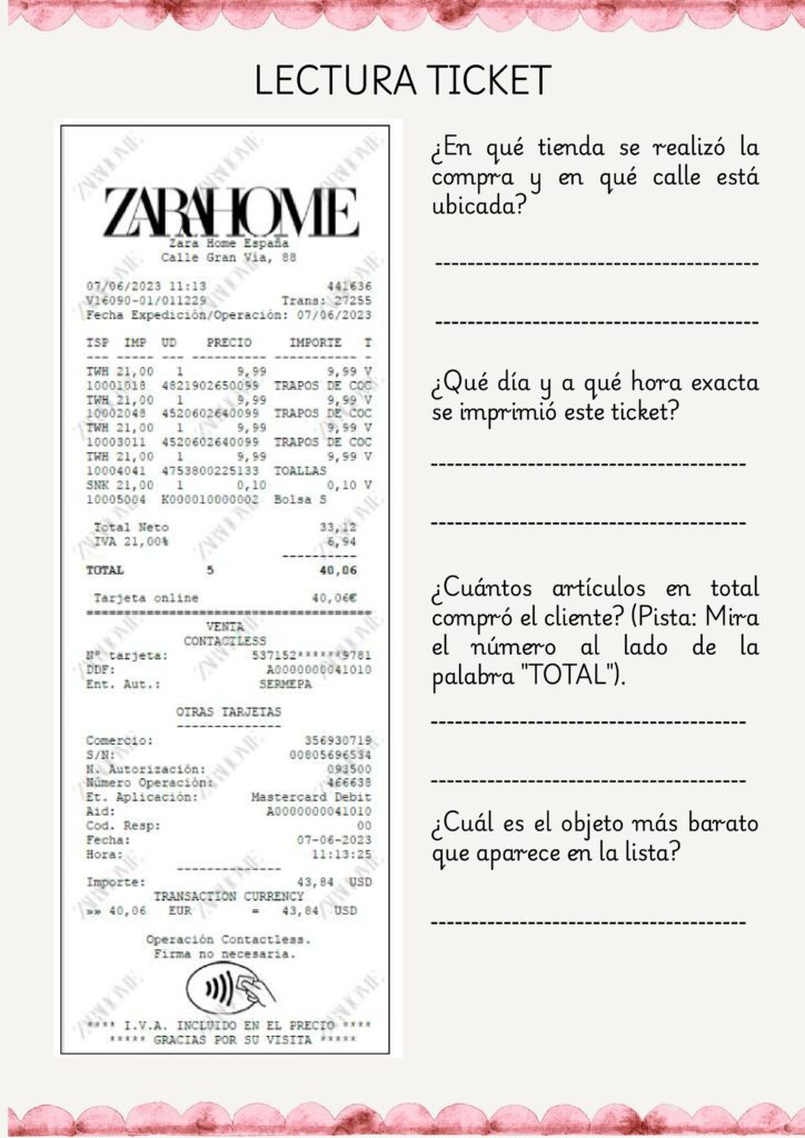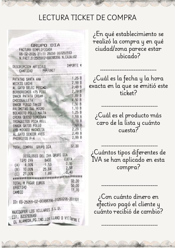 ✔️ Actividades de comprensión a partir de facturas reales simuladas 🧾