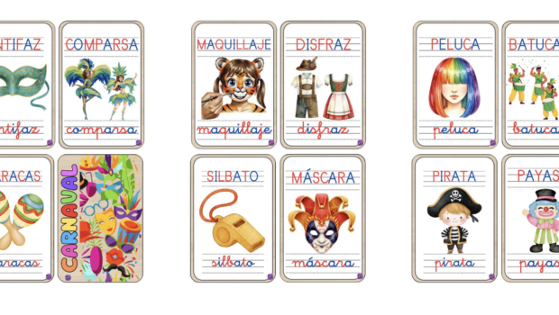 Flash card Montessori vocabulario carnaval
