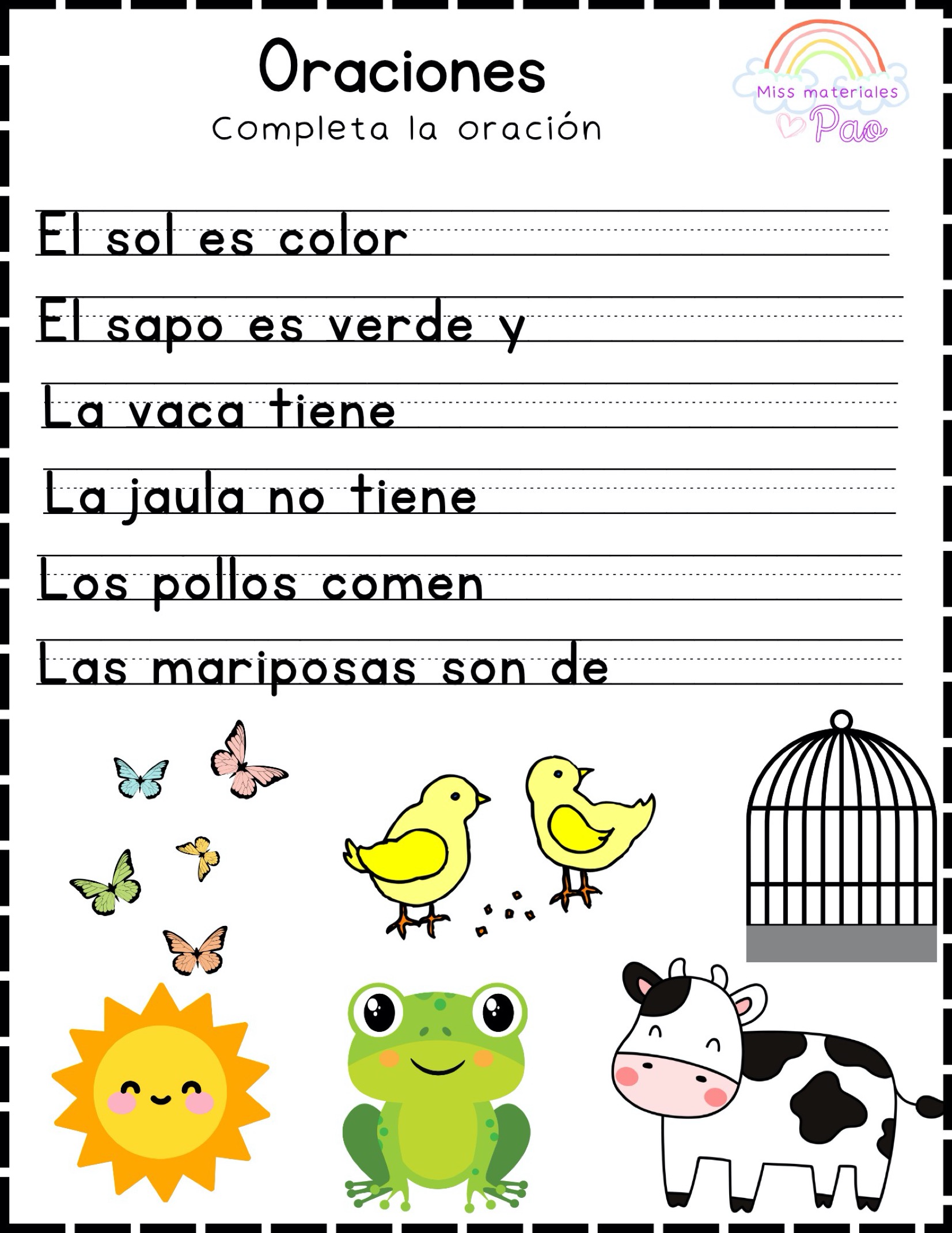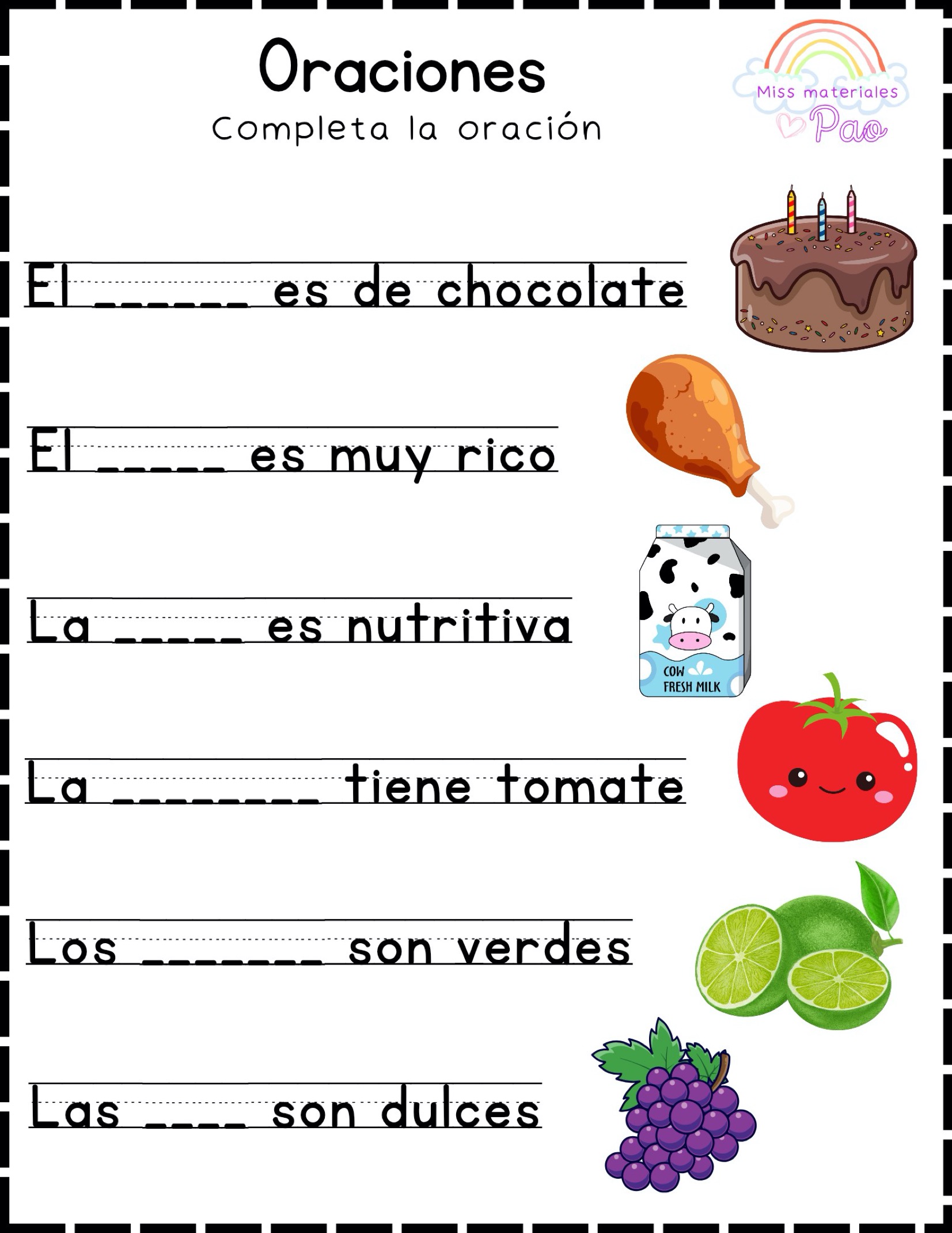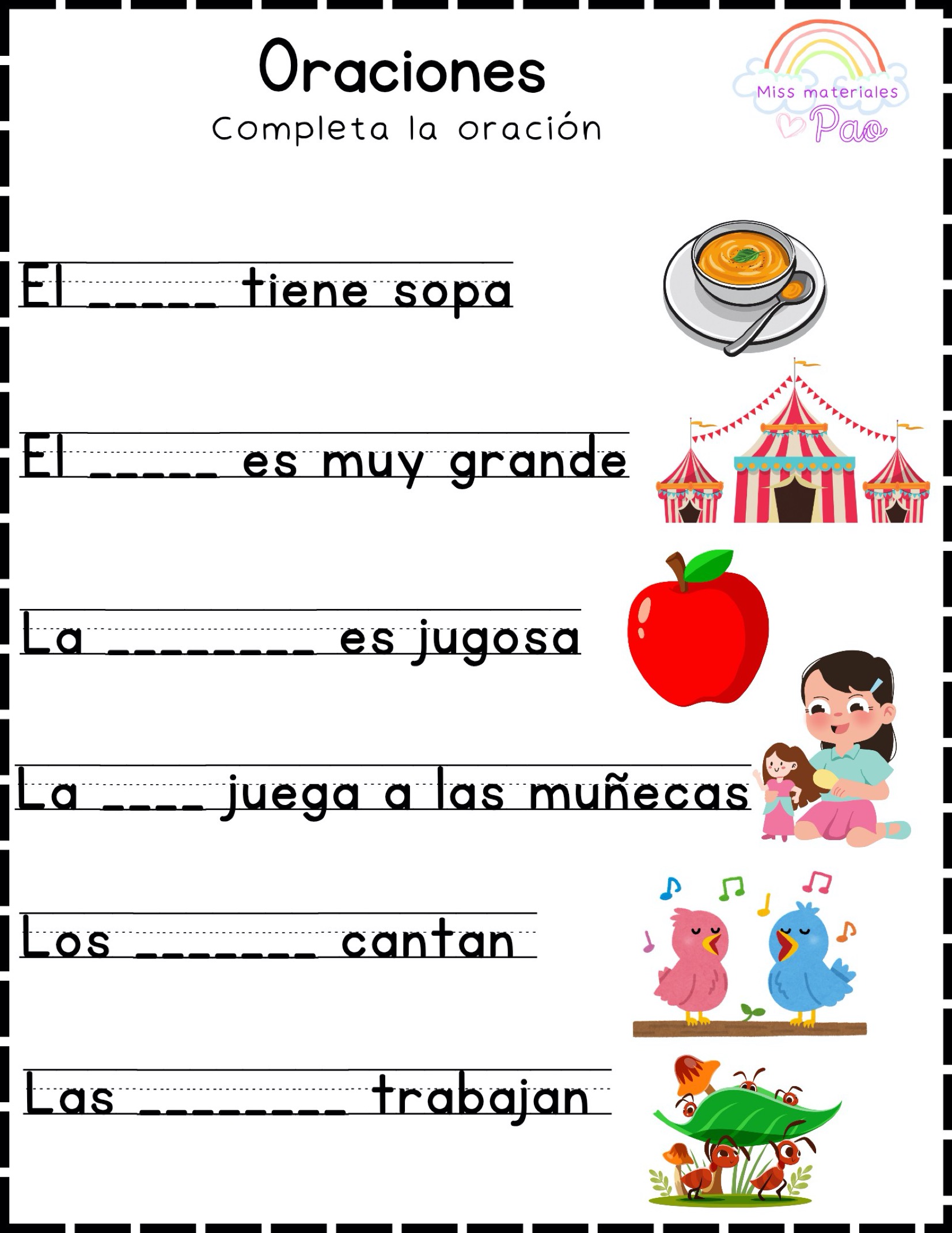 Fichas de oraciones para niños en PDF para la lectoescritura