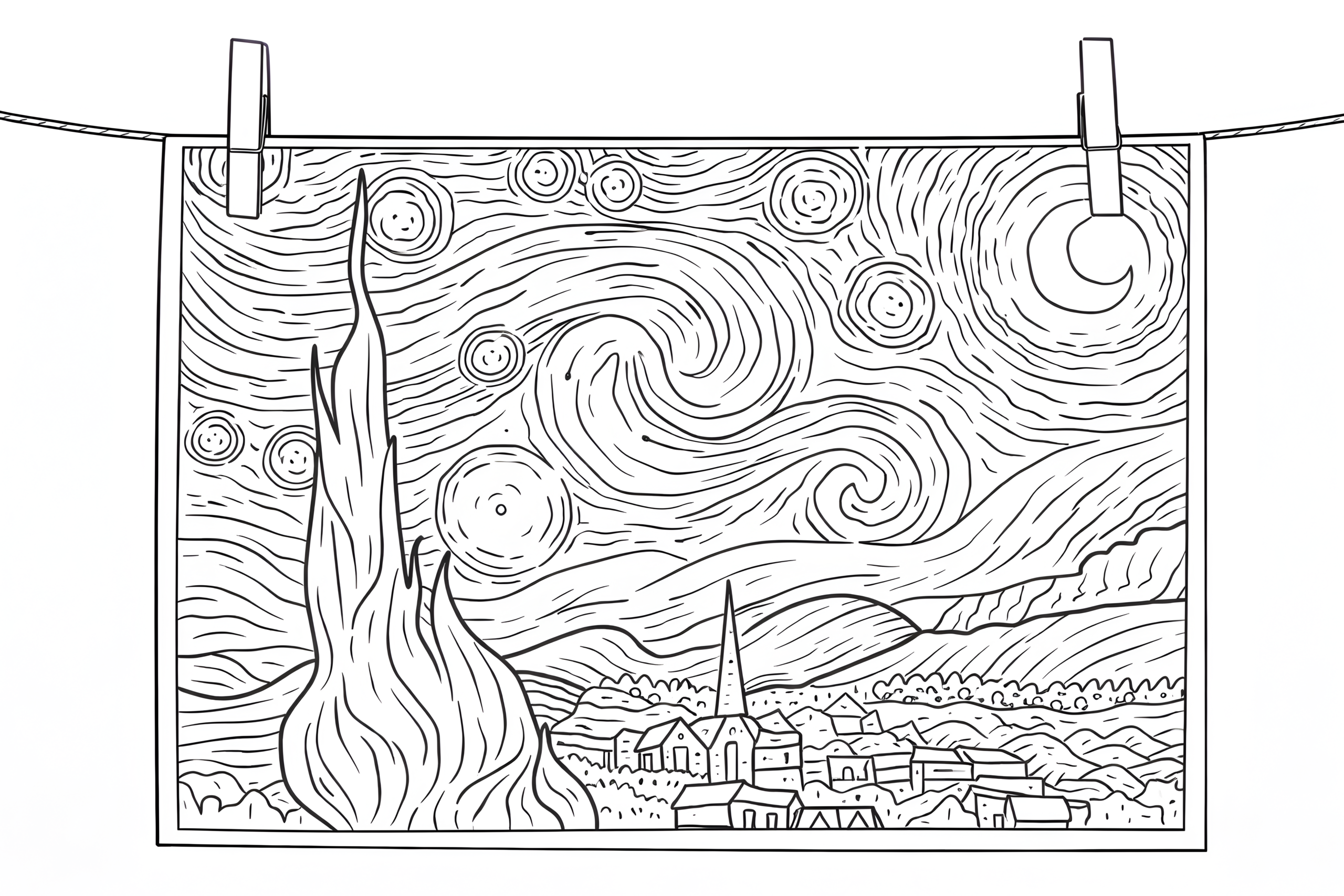 ✨ Nuestra ciudad al estilo Van Gogh: lámina para colorear