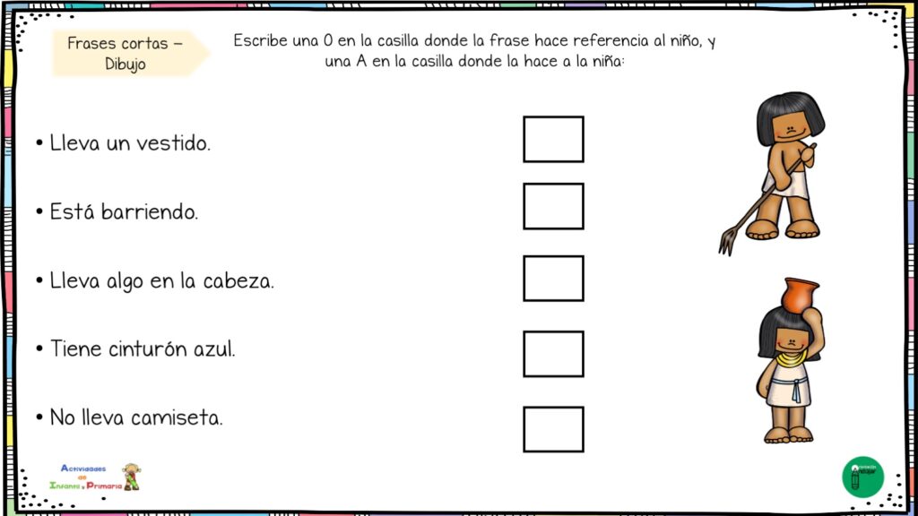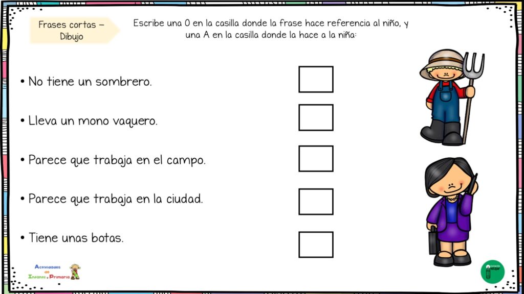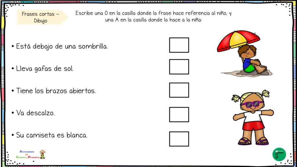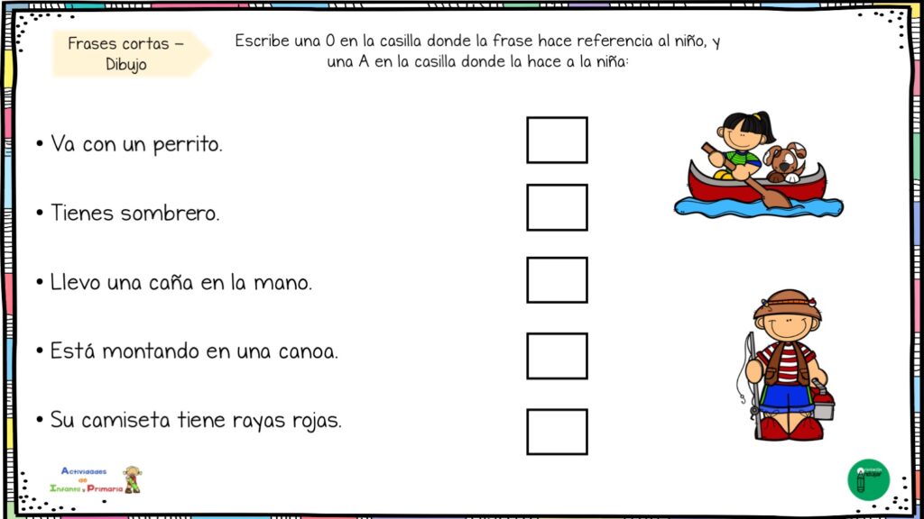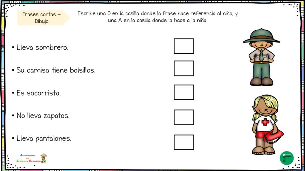 Ejercicios para identificar si la frase hace referencia a niño o niña