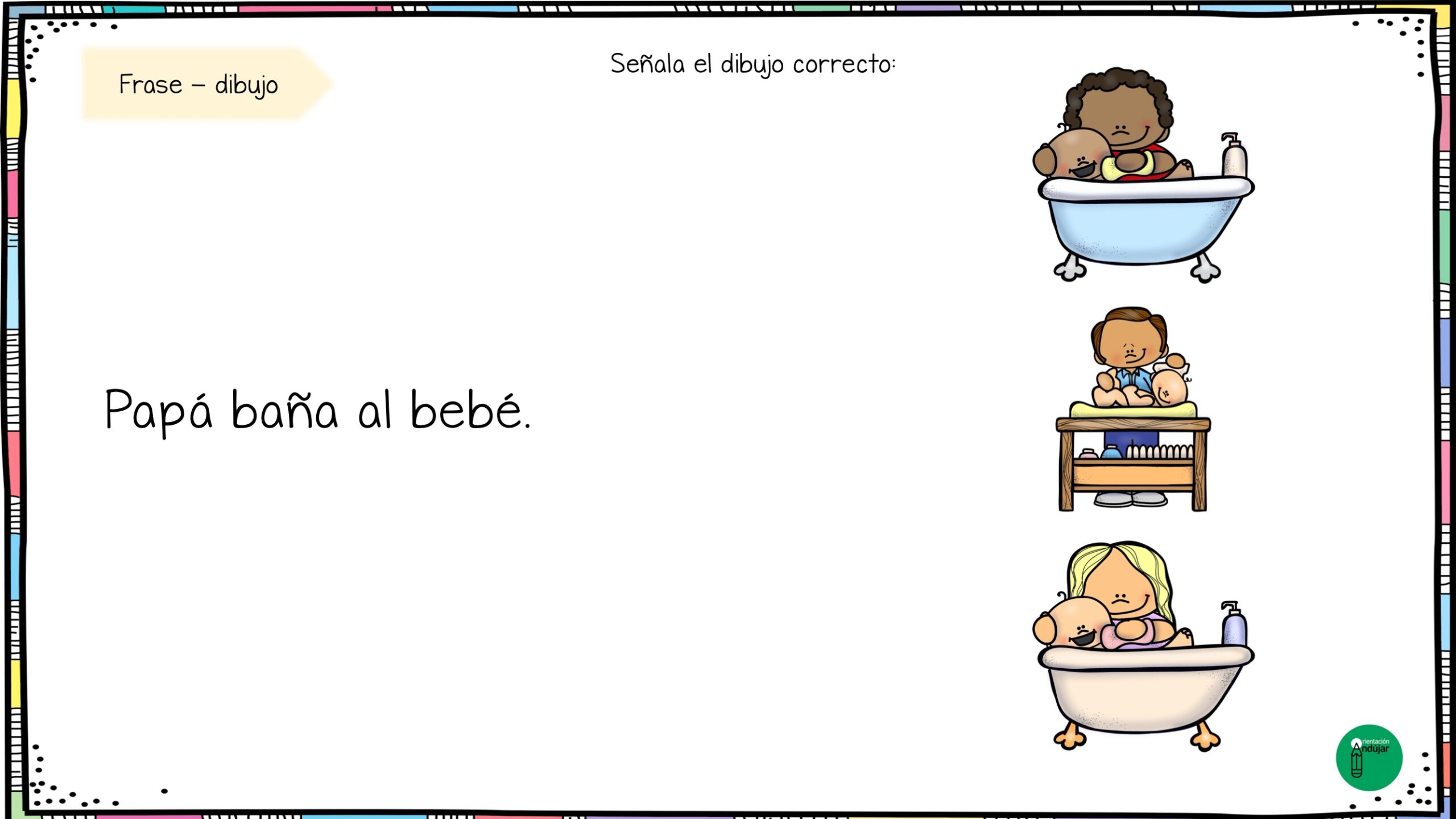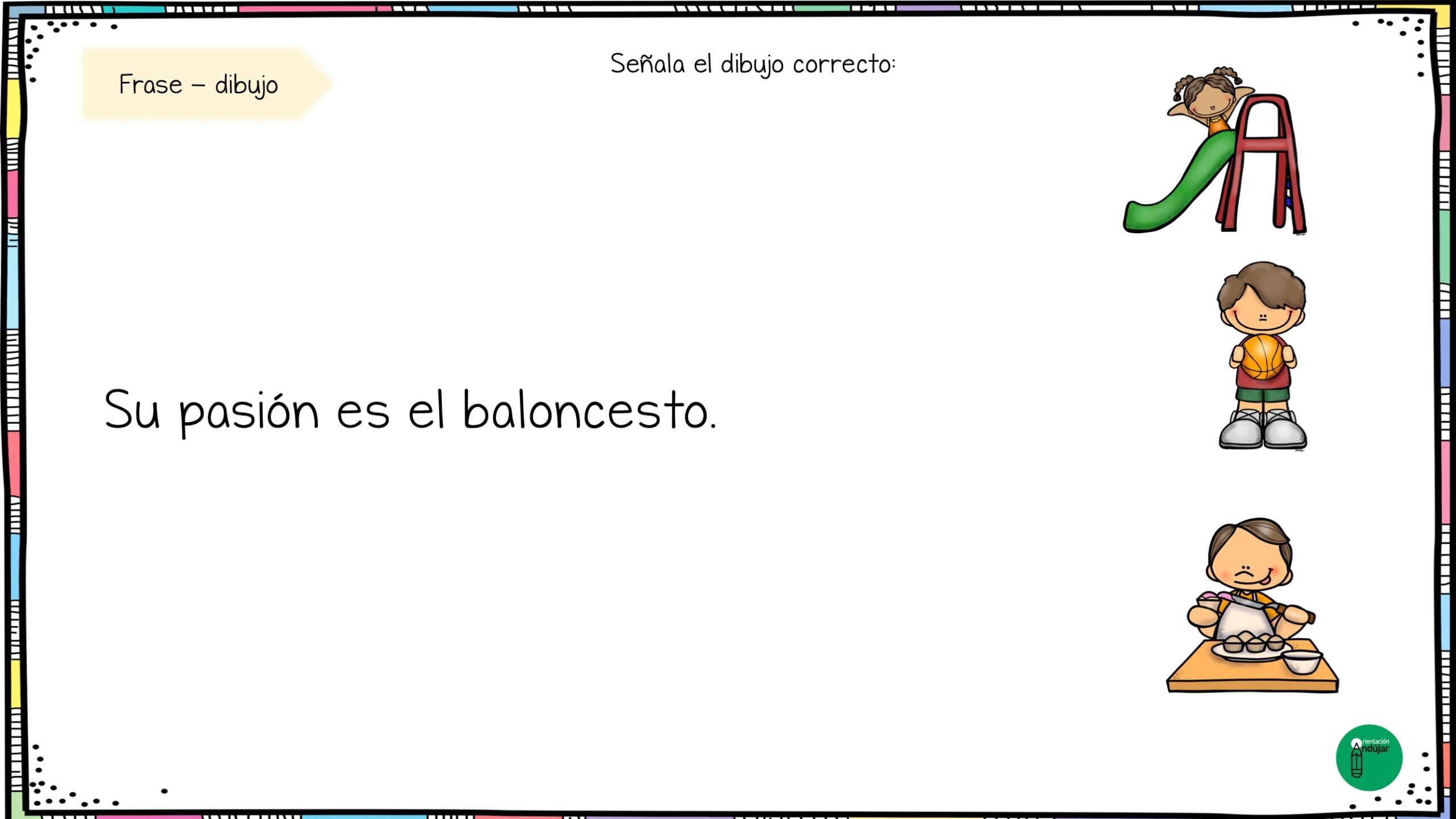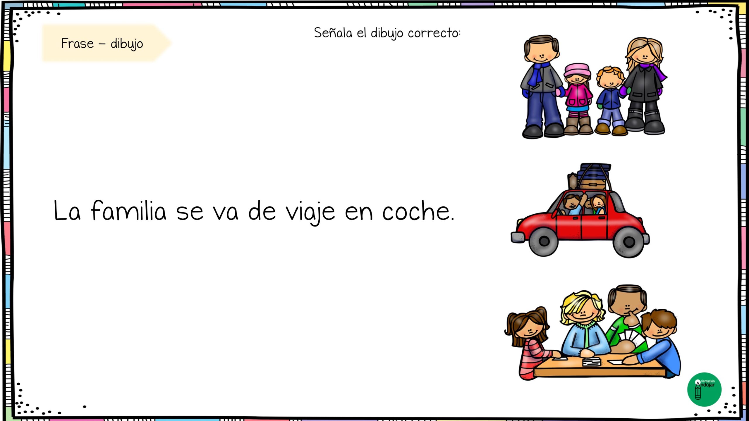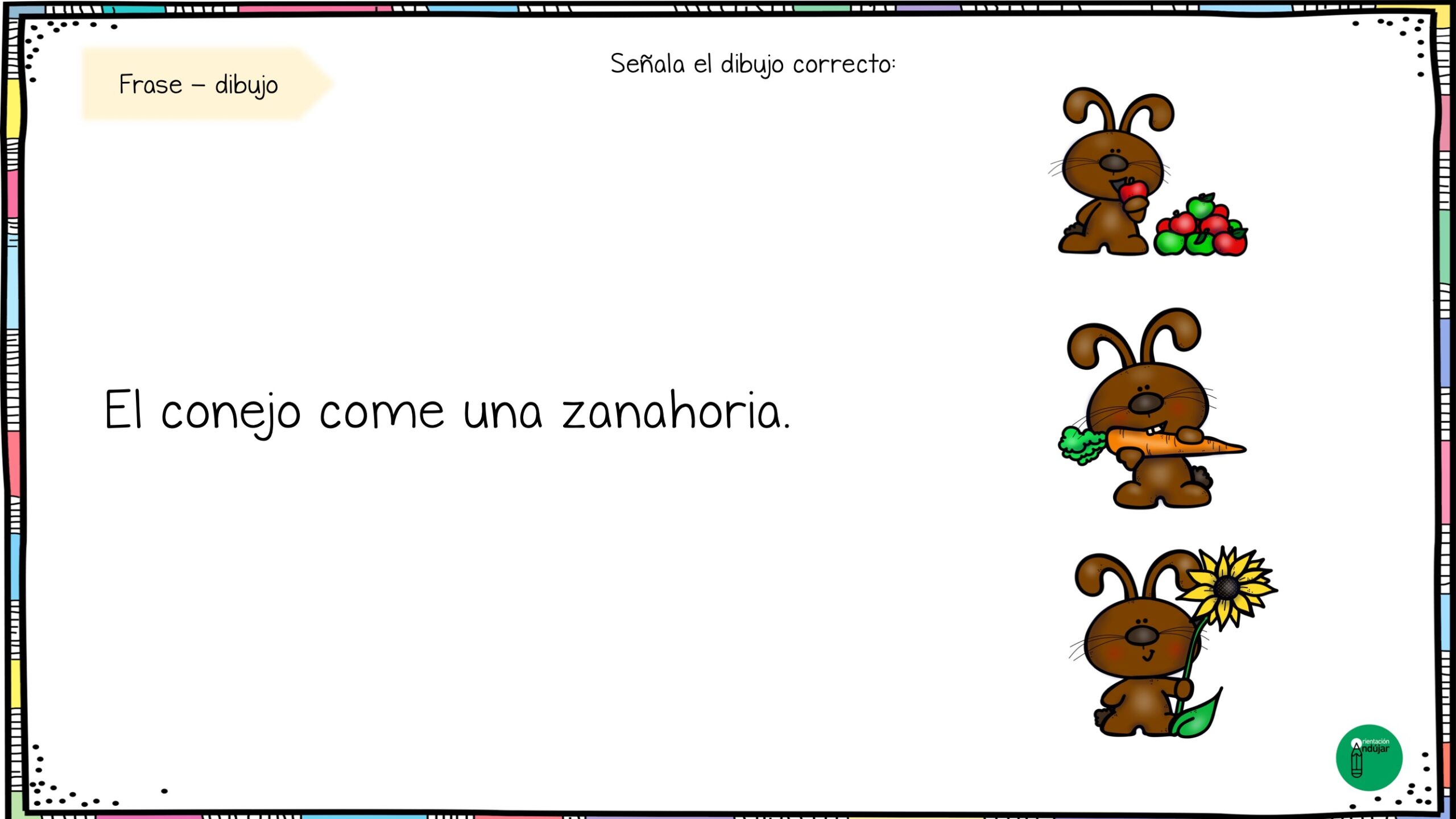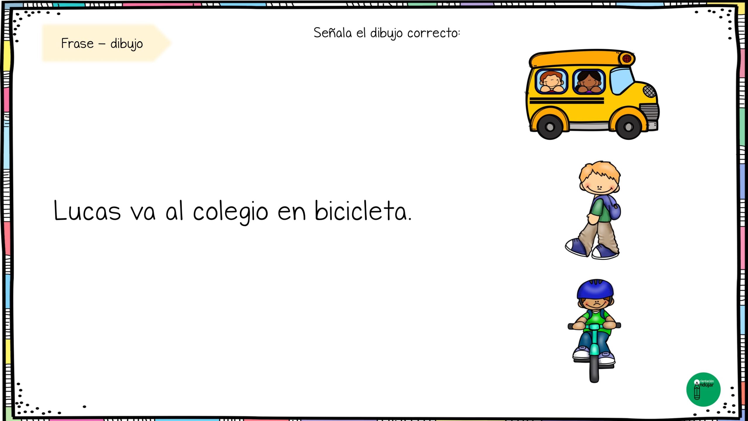 Estas fichas combinan frase + imagen, ayudando al alumnado a leer con atención y seleccionar el dibujo correcto según lo que indica el enunciado.