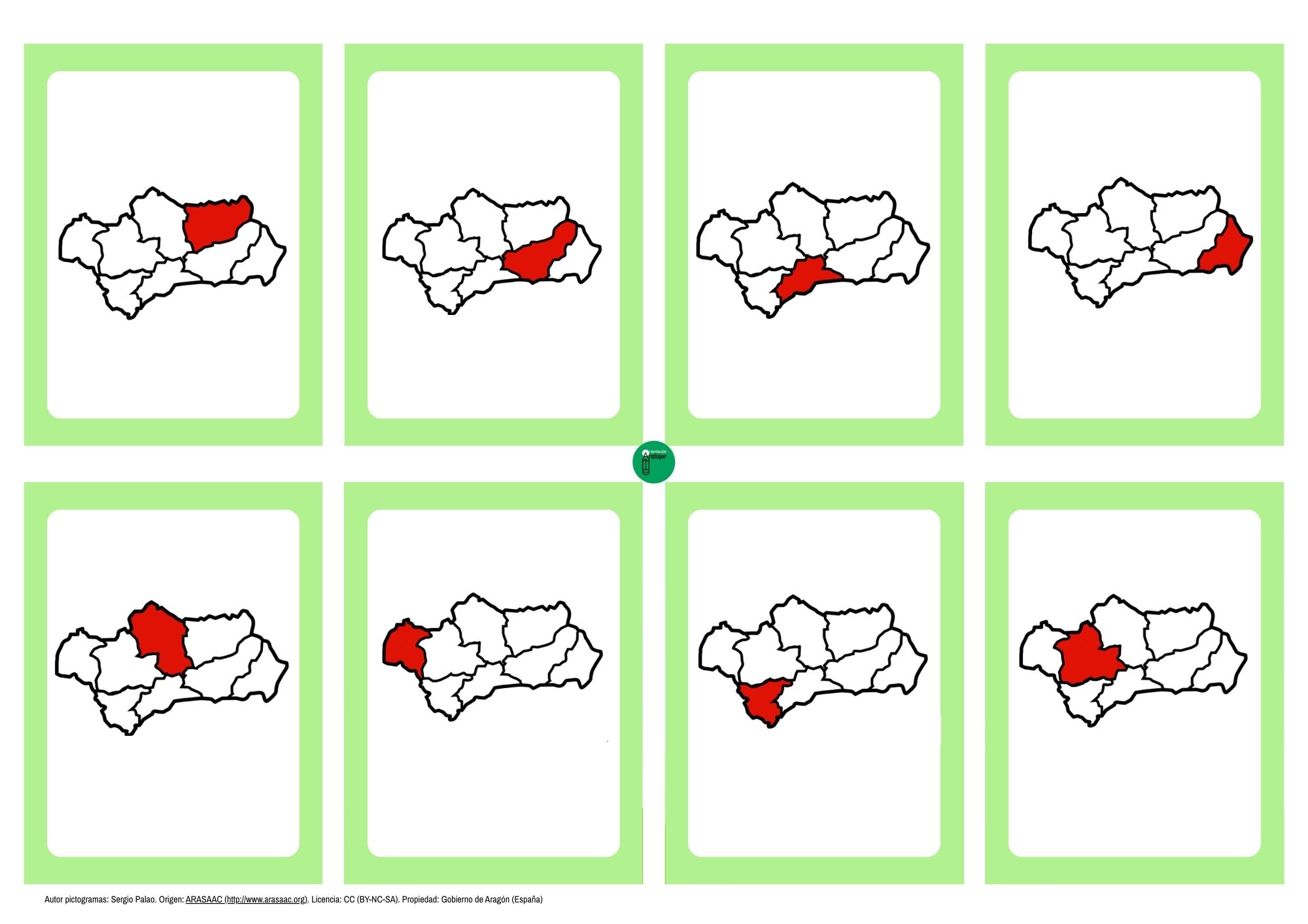 Para los alumnos que ya dominan lo básico, ¡subimos la apuesta! En esta colección de tarjetas, la provincia aparece resaltada de forma aislada dentro de su silueta en el mapa. ¿Serán capaces de identificar qué provincia es solo por su forma y ubicación, y emparejarla con su nombre correspondiente? Es un ejercicio de conciencia espacial y geografía excelente.