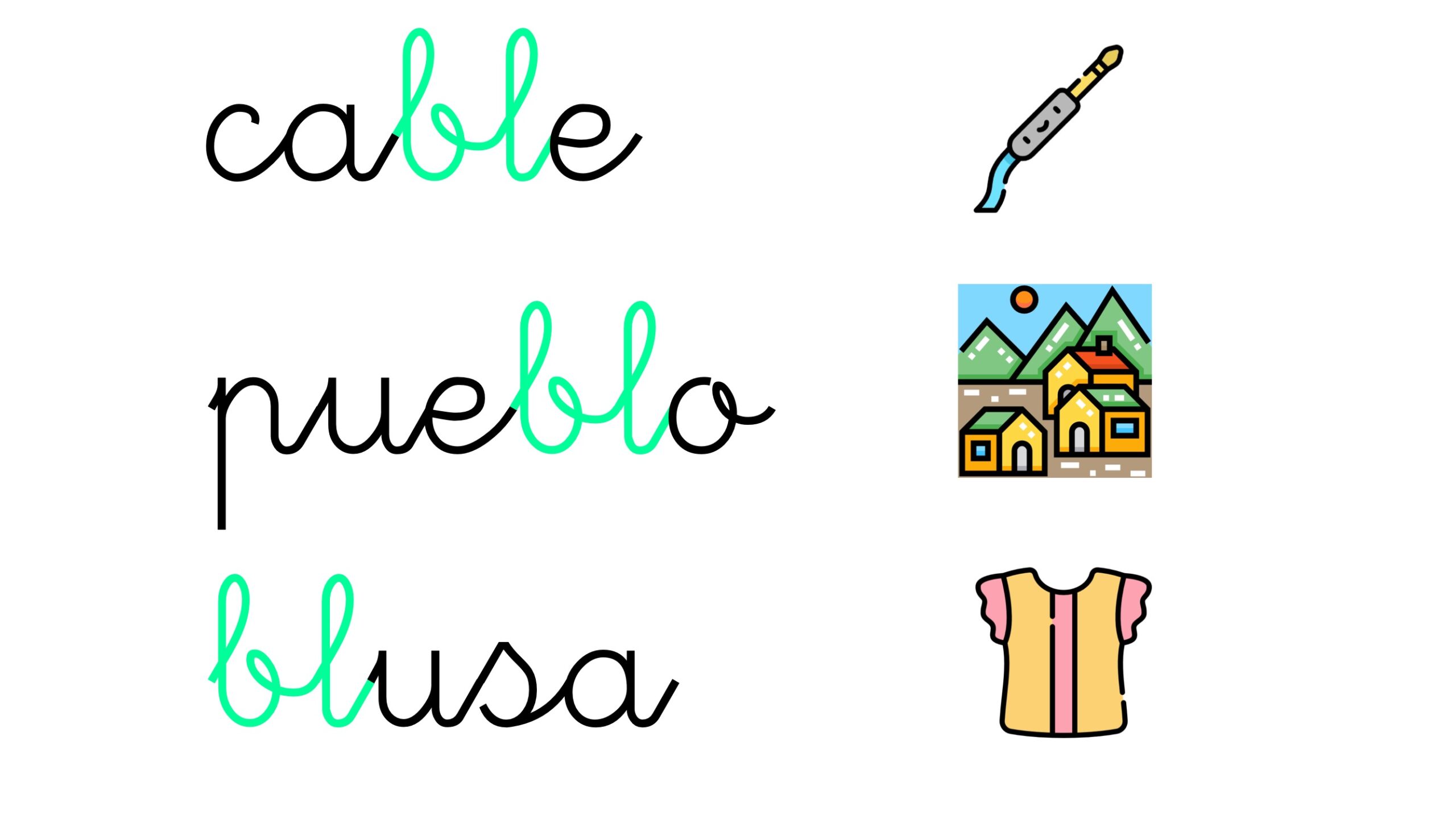 Estos materiales permiten que los niños reconozcan patrones ortográficos como cr, gr, bl, pl, ll, y, entre otros, a través de imágenes que captan su atención y favorecen la memoria visual. Además, son ideales para trabajar en sesiones cortas, dinámicas y muy efectivas.