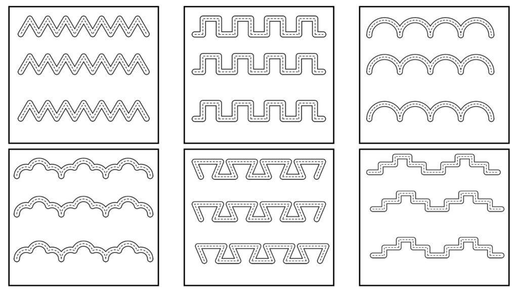 El documento incluye una colección de tarjetas con diferentes tipos de trazos básicos, ideales para trabajar: