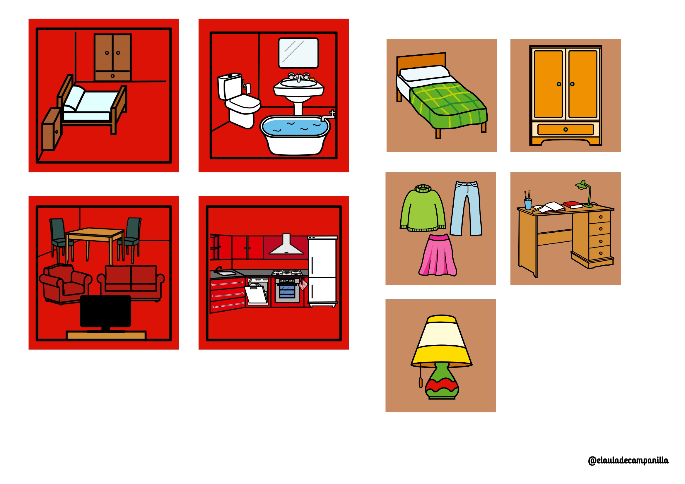 Después de trabajar el vocabulario, los niños pueden representar acciones propias de cada estancia.