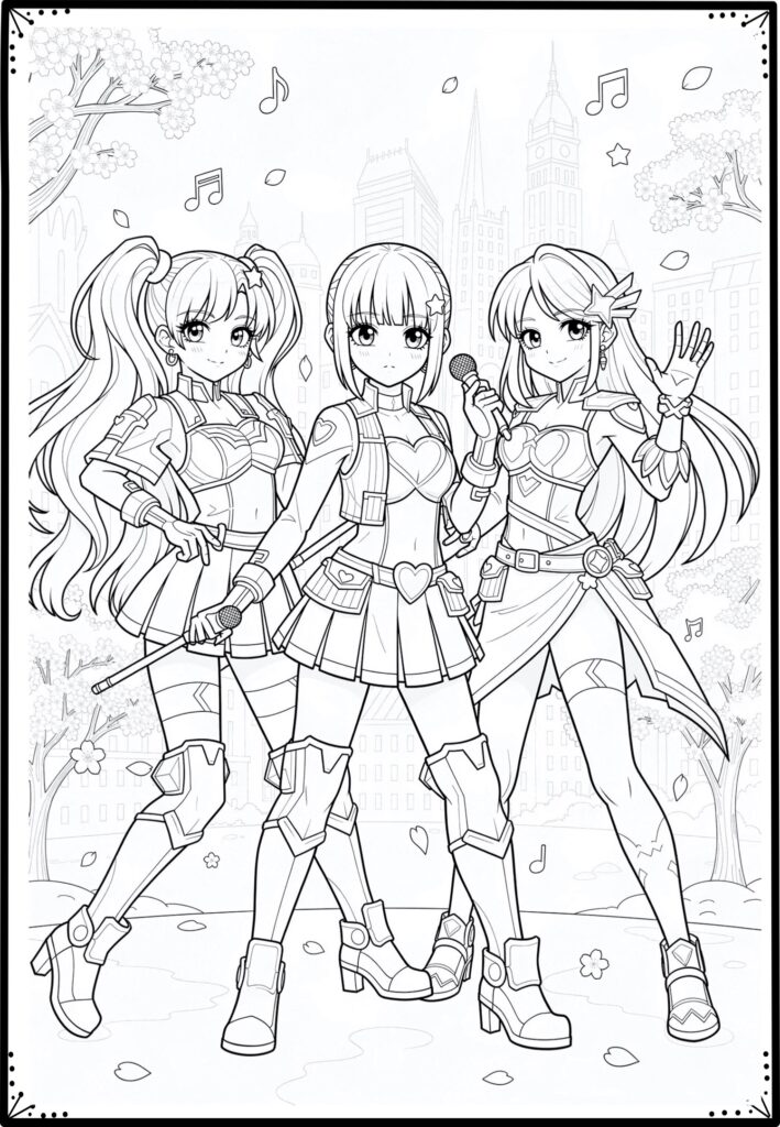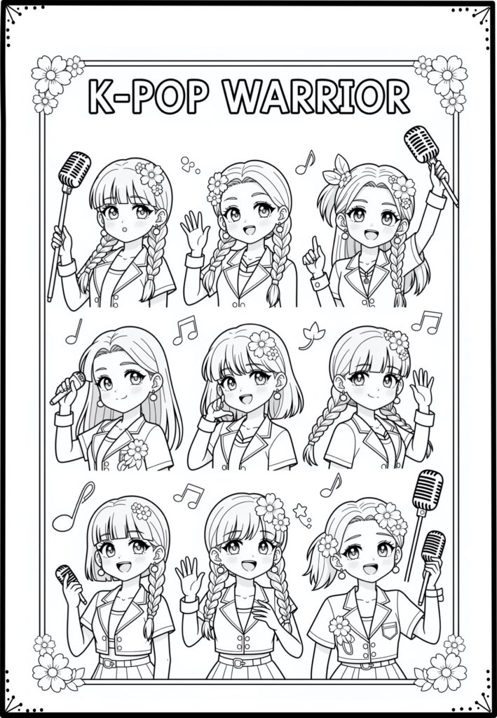 Las Guerreras K‑Pop para colorear son un recurso moderno, divertido y lleno de energía. Perfectas para imprimir, usar en el aula o disfrutar en casa, estas láminas invitan a crear, relajarse y dejar volar la imaginación con un toque de estilo coreano.