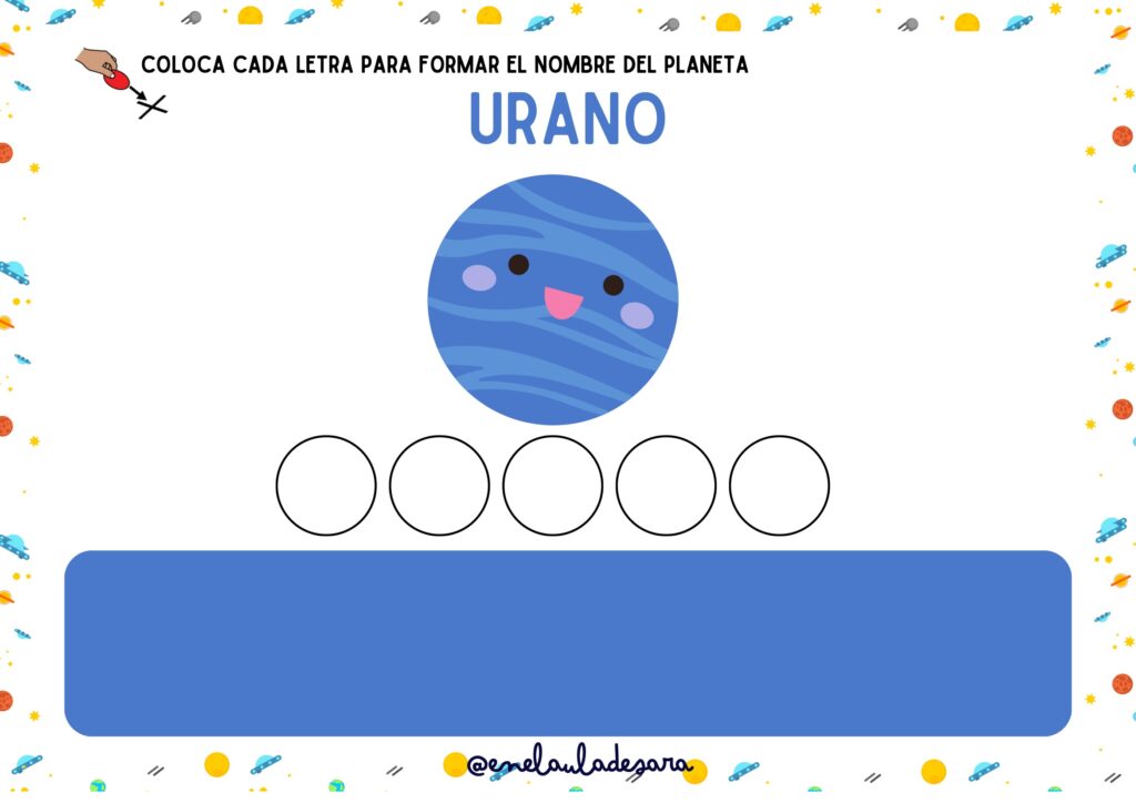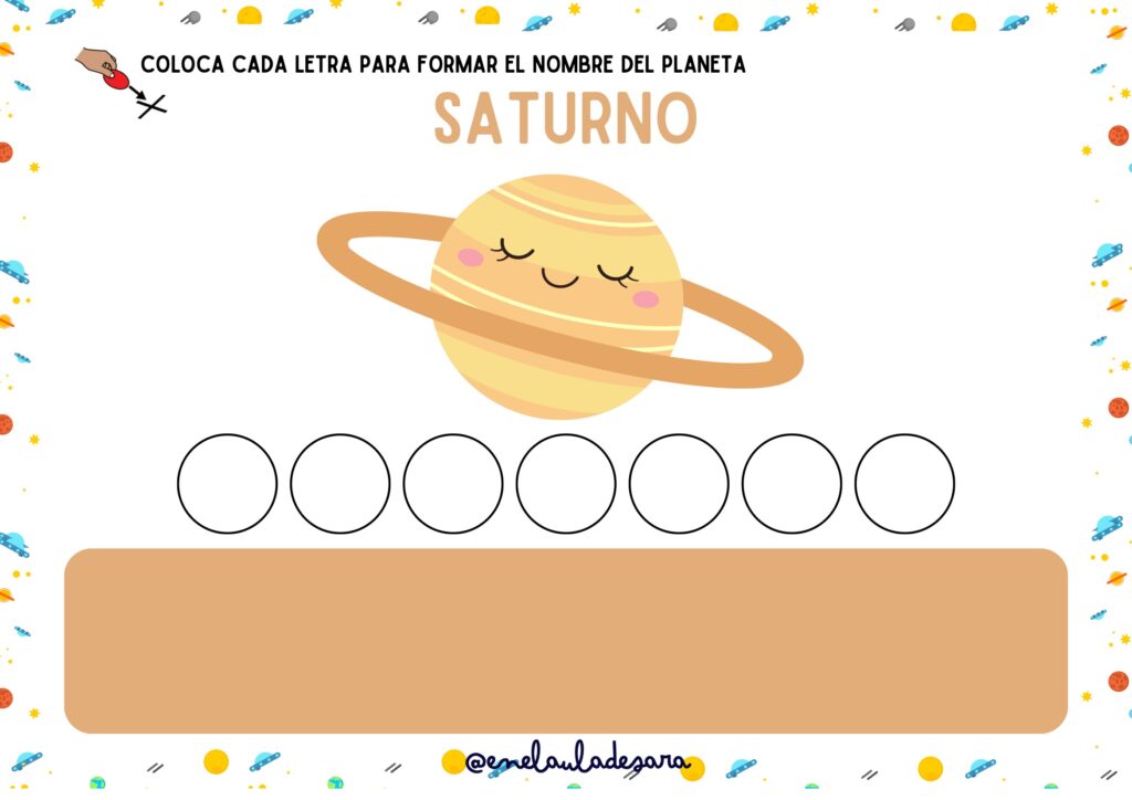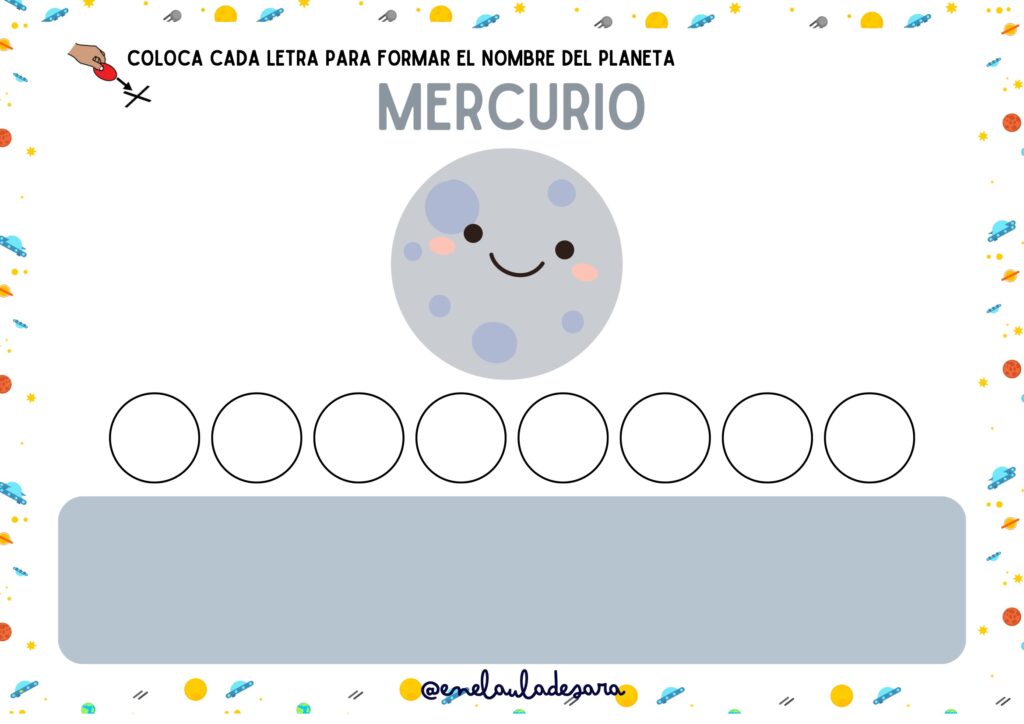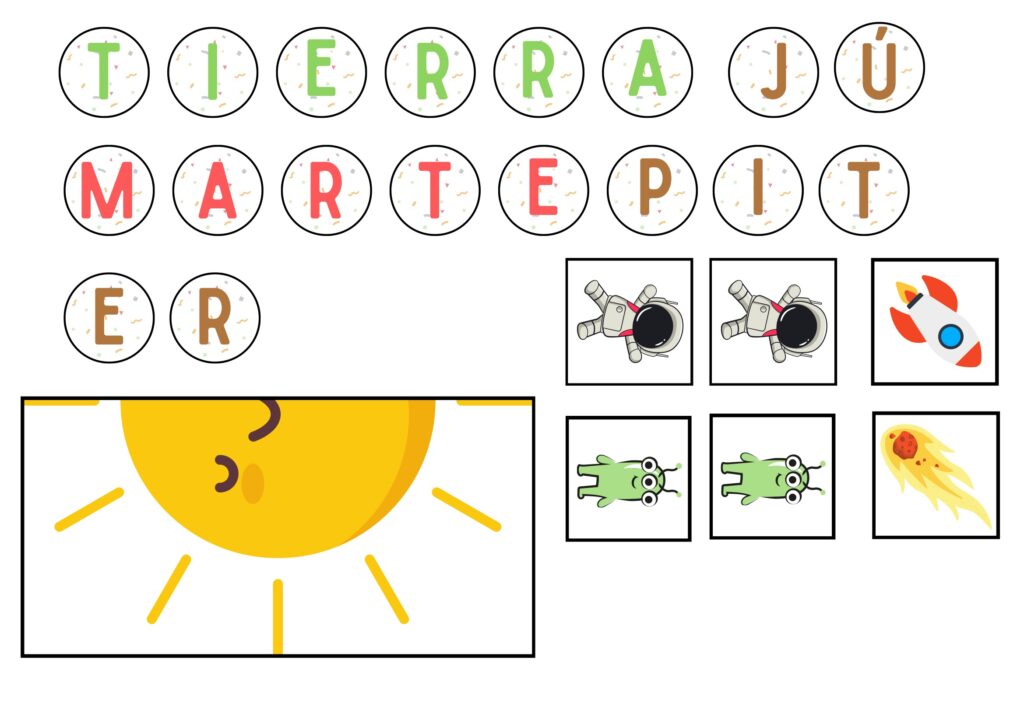 Todos los planetas: Podrán formar los nombres de Mercurio, Venus, Tierra, Marte, Júpiter, Saturno, Urano y Neptuno.