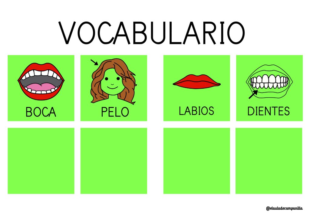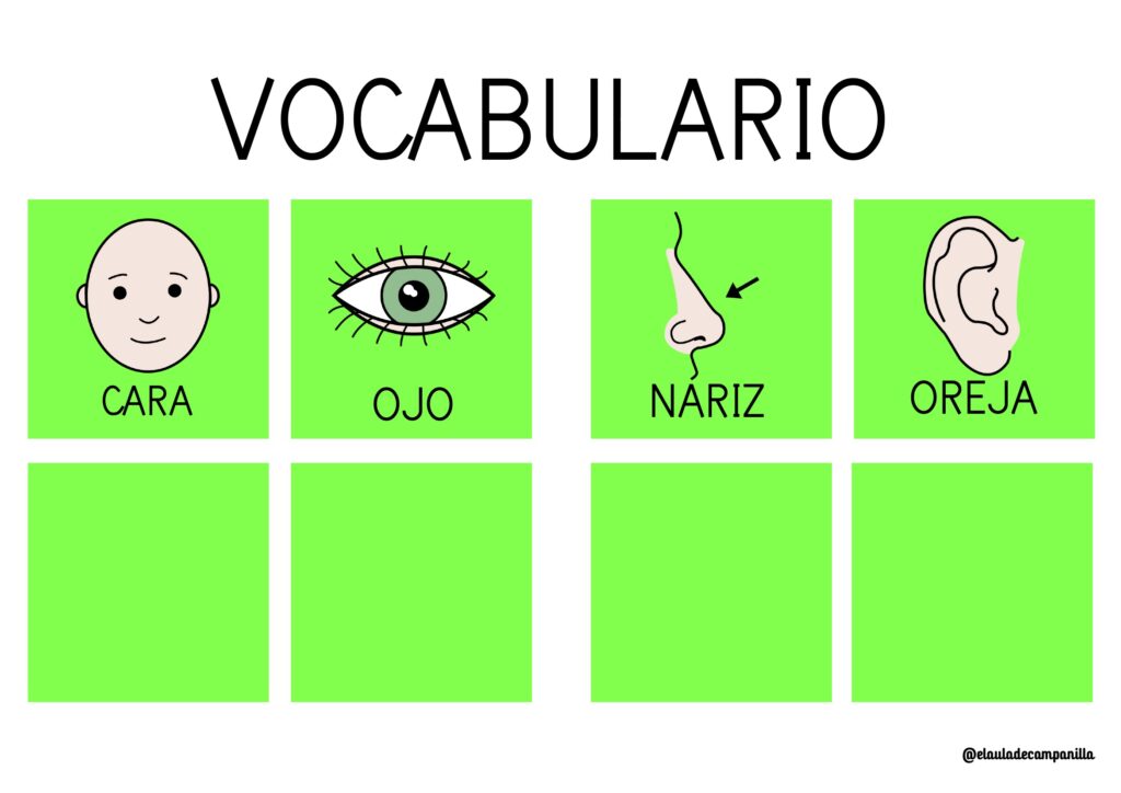Vocabulario de las partes de la cara