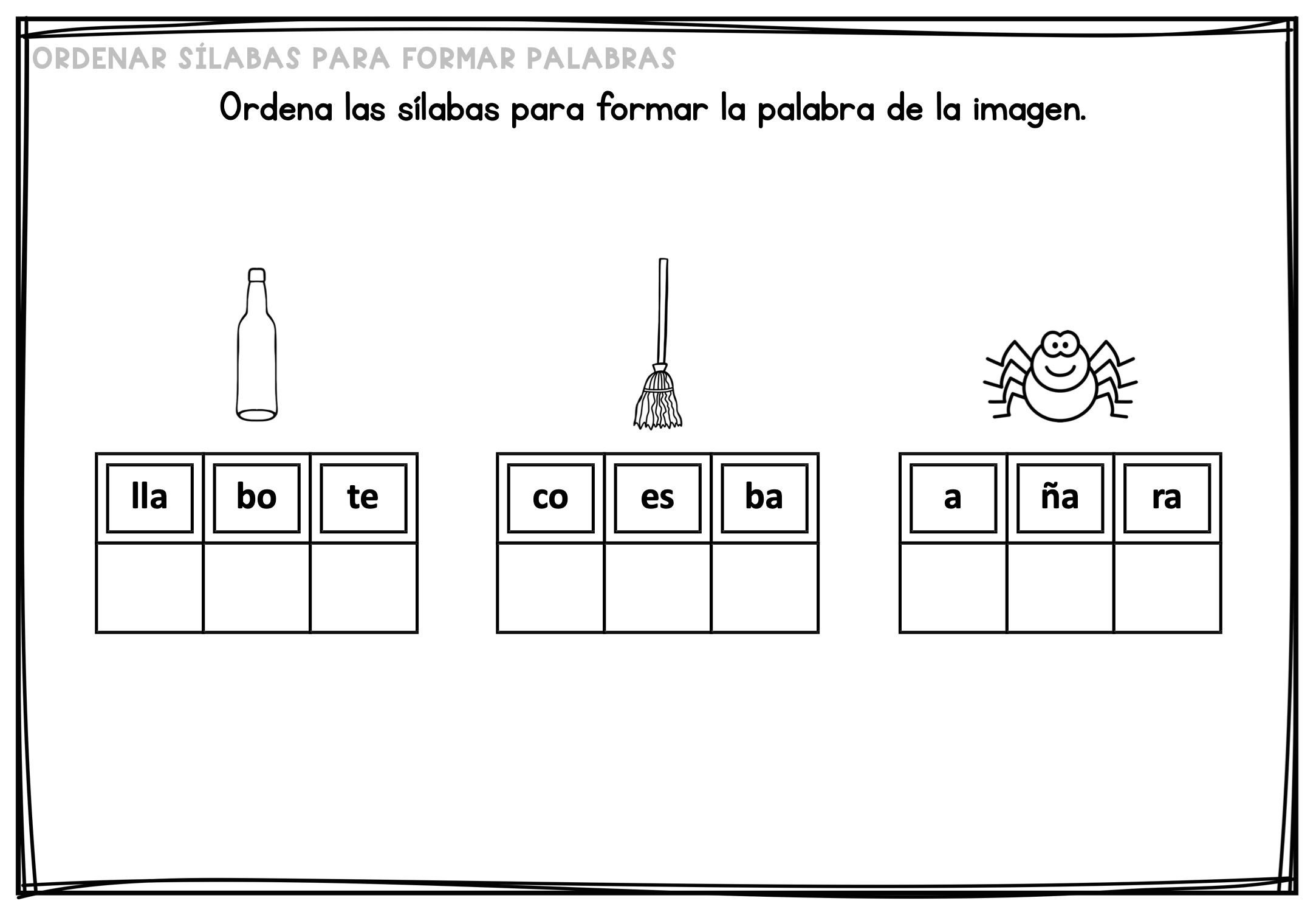 Ordena sílabas para formar palabras conciencia silábica 9 Publicado por orientacionandujar hace 3 semanas