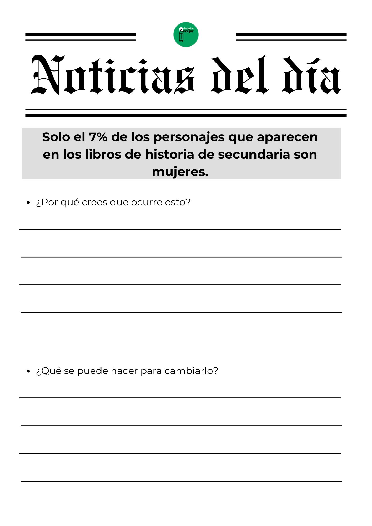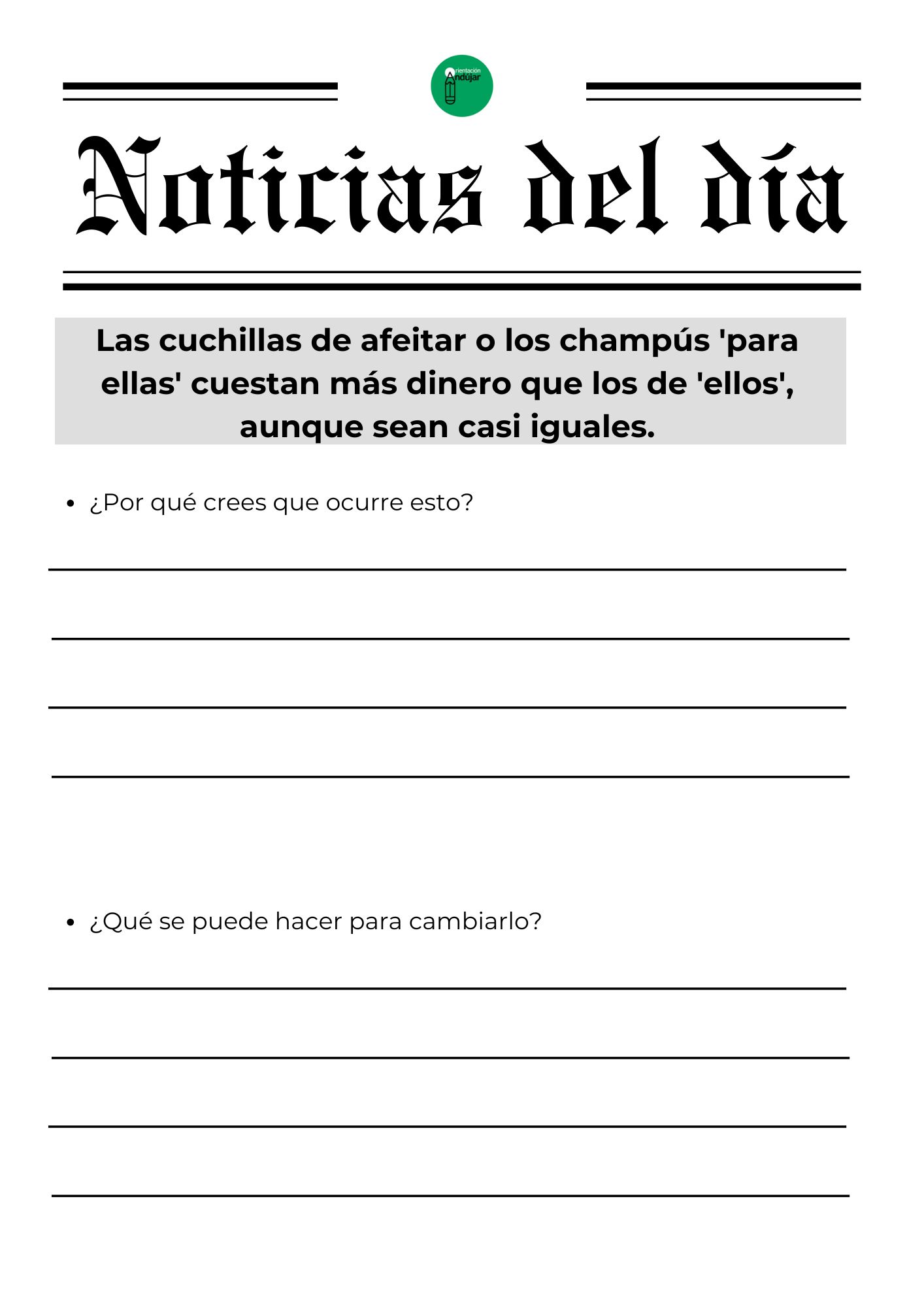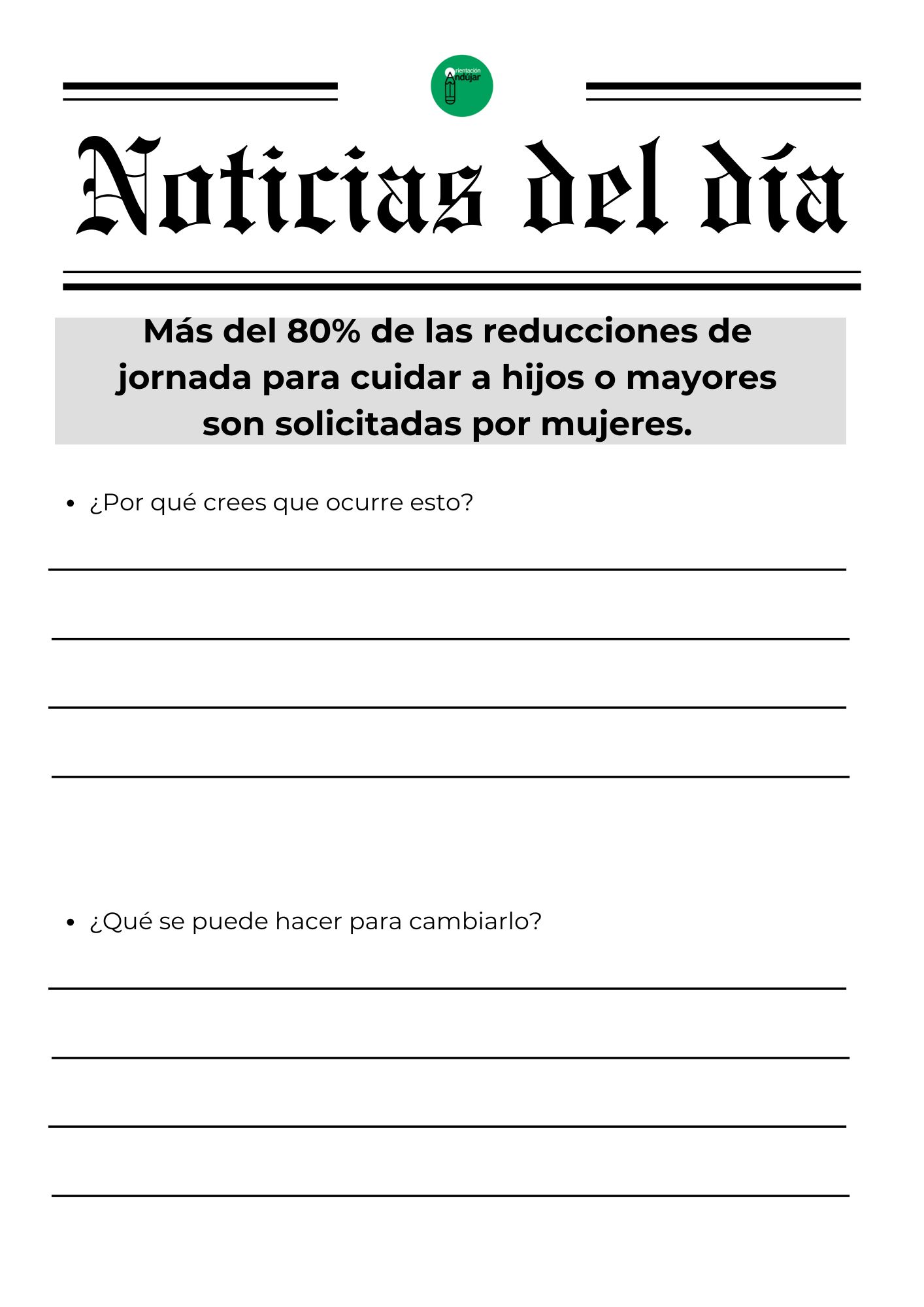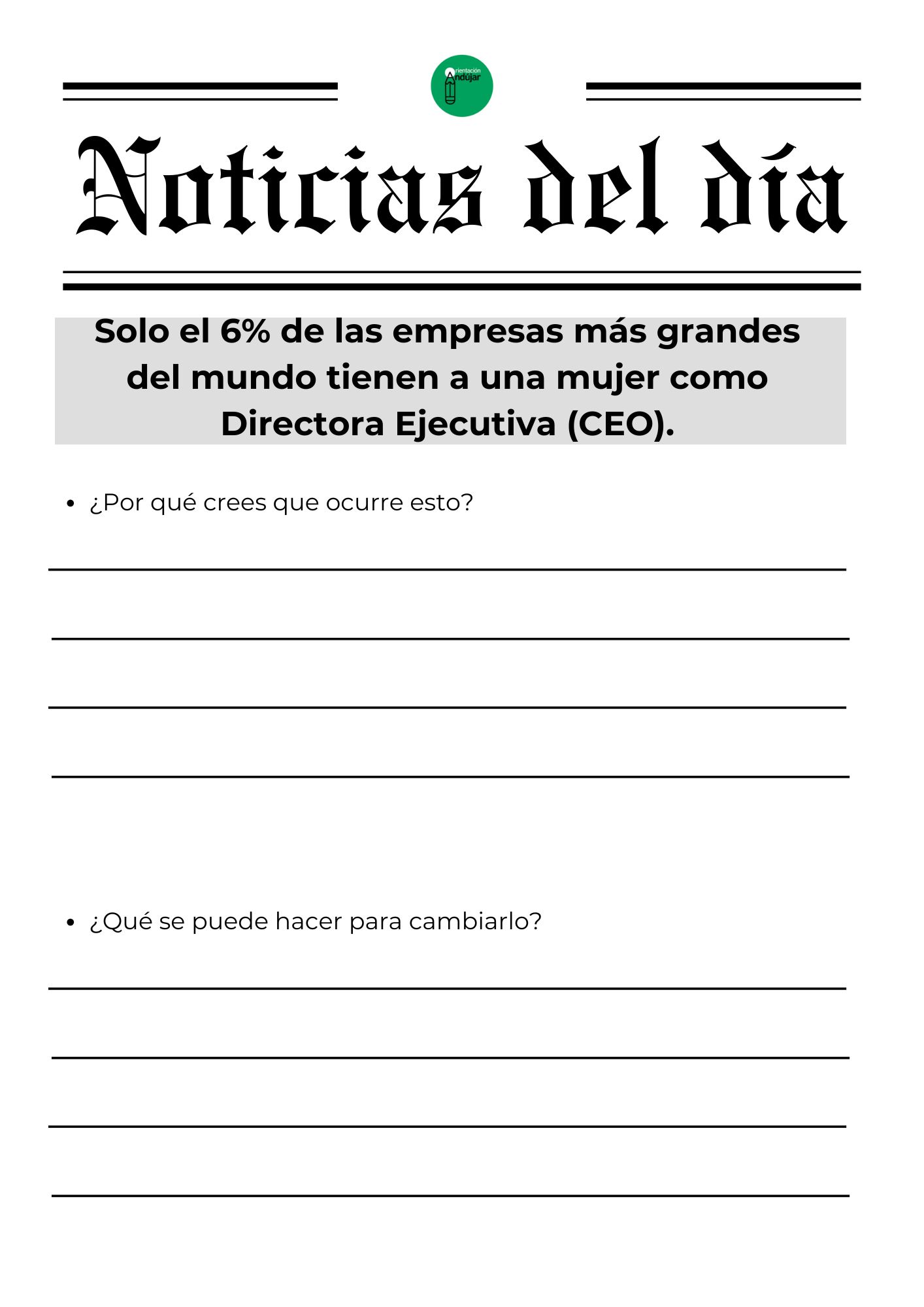 Para responder a este «porqué», hoy compartimos una dinámica basada en el análisis de realidades tangibles. No se trata de teoría, sino de hechos que siguen ocurriendo hoy mismo. La actividad consiste en enfrentar al alumnado a una selección de titulares reales e impactantes que visibilizan las brechas de género en ámbitos tan diversos como la economía, la seguridad vial, la salud y la violencia de control, obligándoles a realizar un ejercicio de «ingeniería inversa» para analizar por qué ocurren y qué acciones concretas podrían cambiarlos.
