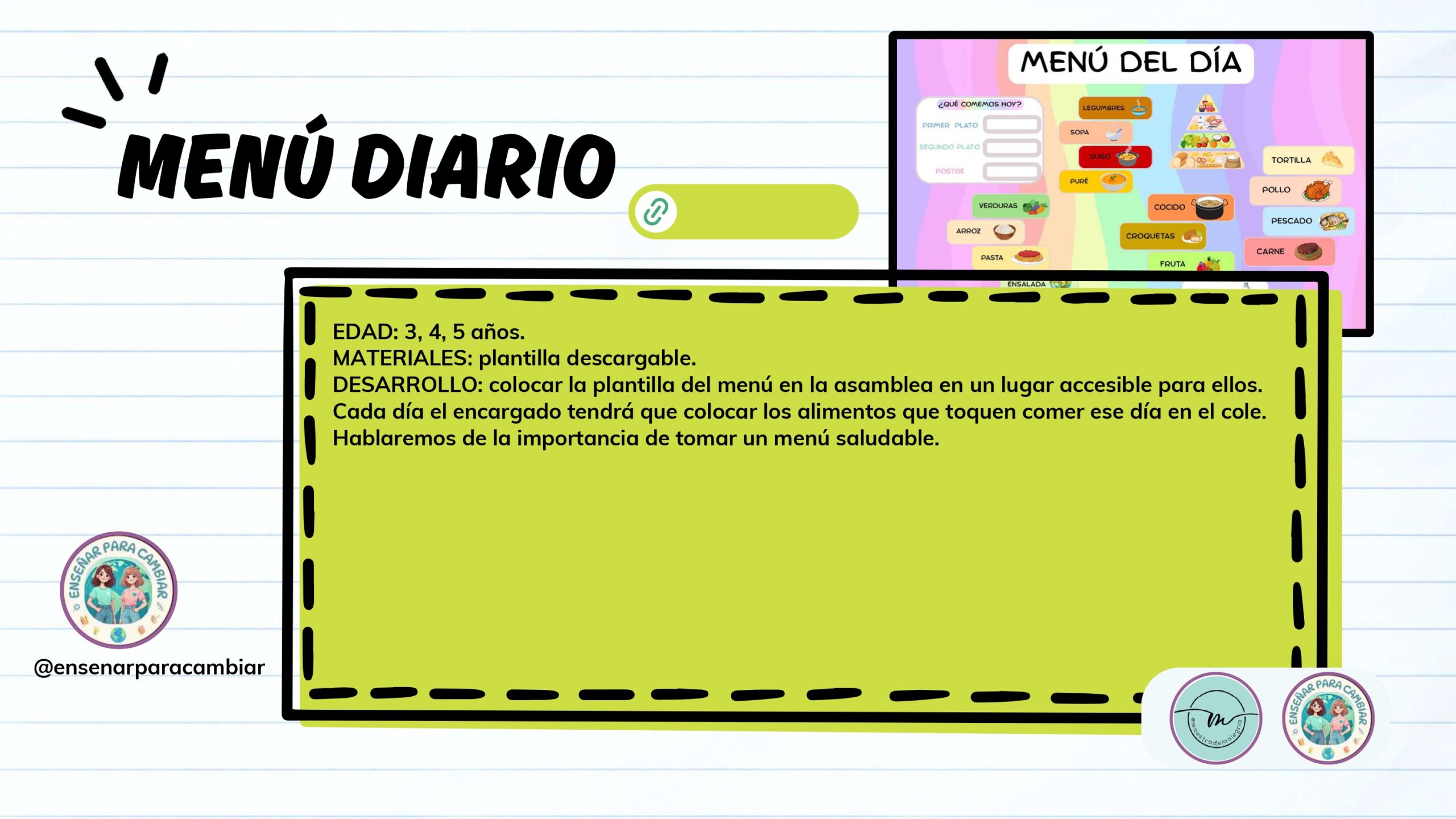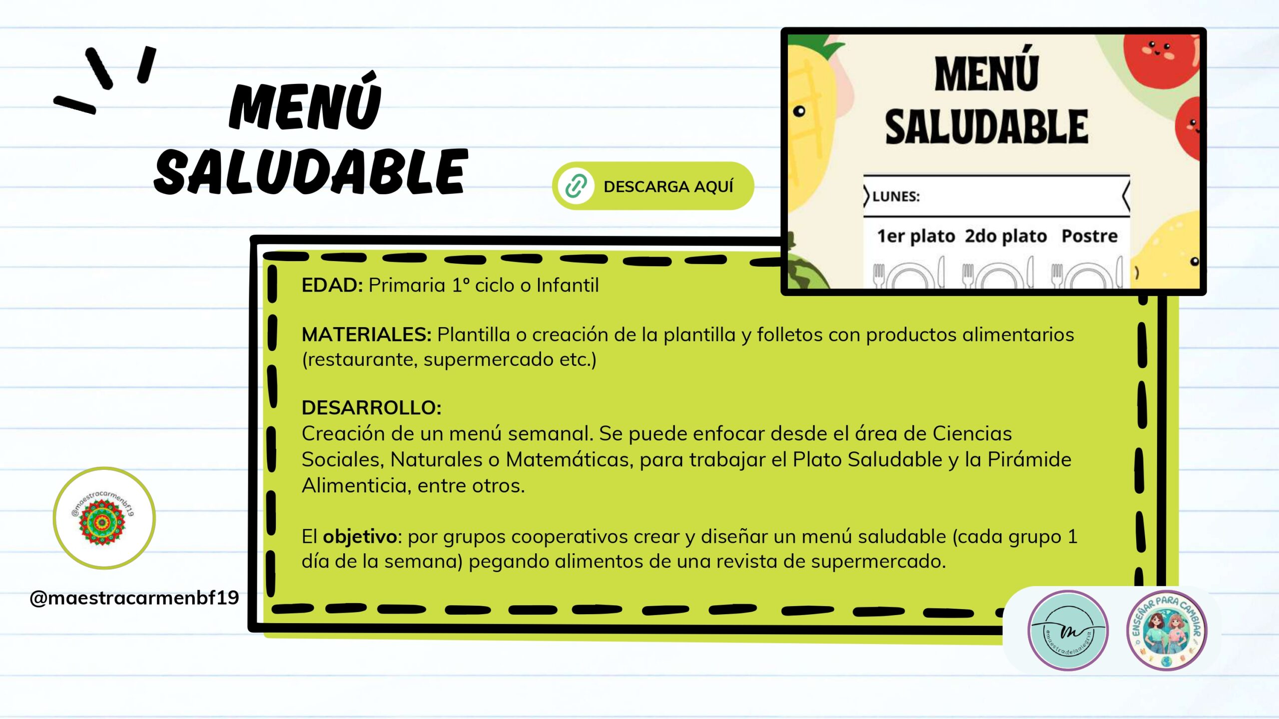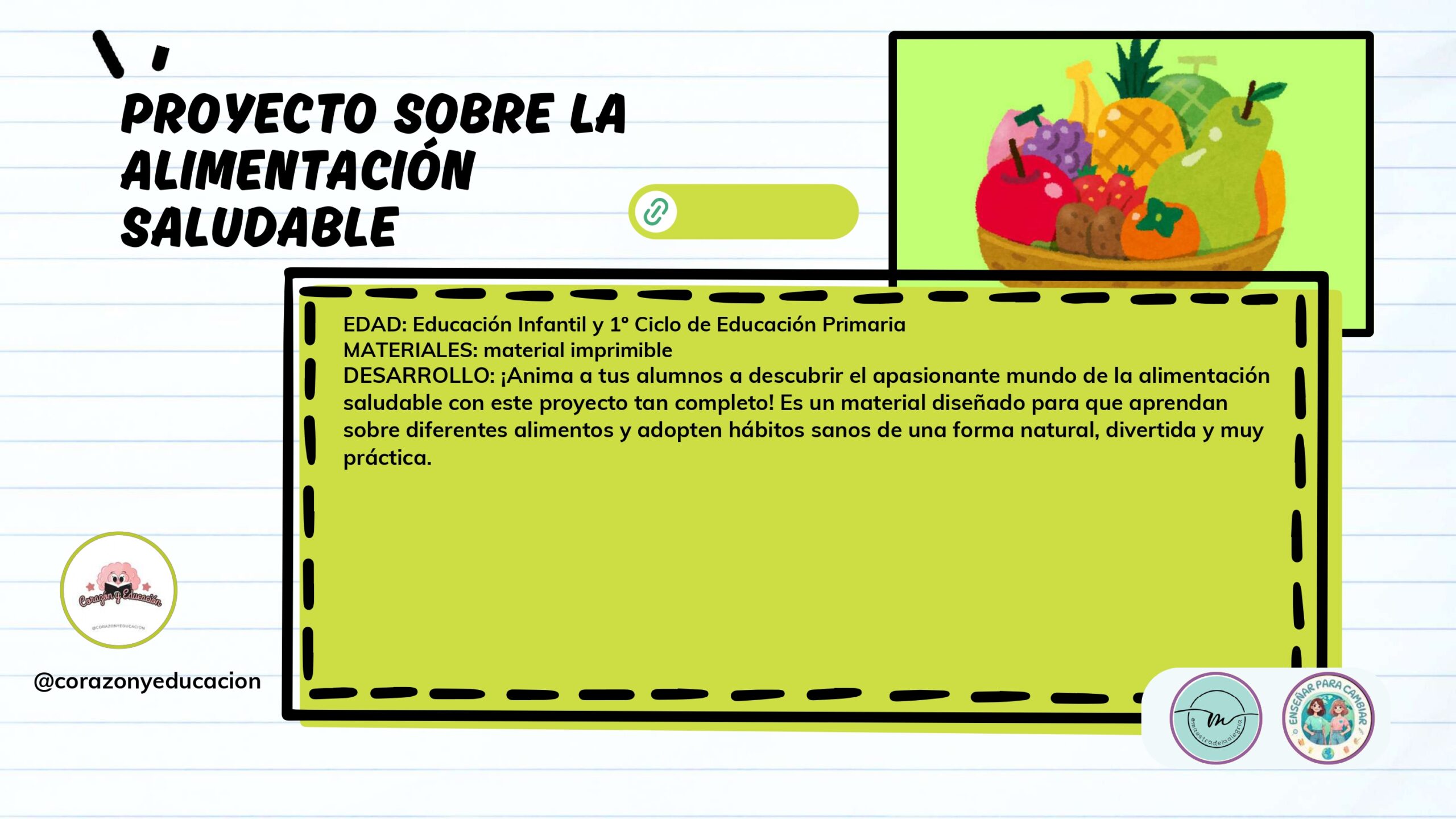 Con esta filosofía nace el Dossier de Alimentación Saludable, un recurso excepcional creado con mucho mimo por las autoras @ensenarparacambiar y @maestradelaalegria. Este material no es solo una recopilación de fichas; es una invitación a educar desde el cuidado, el respeto al propio cuerpo y el bienestar integral.