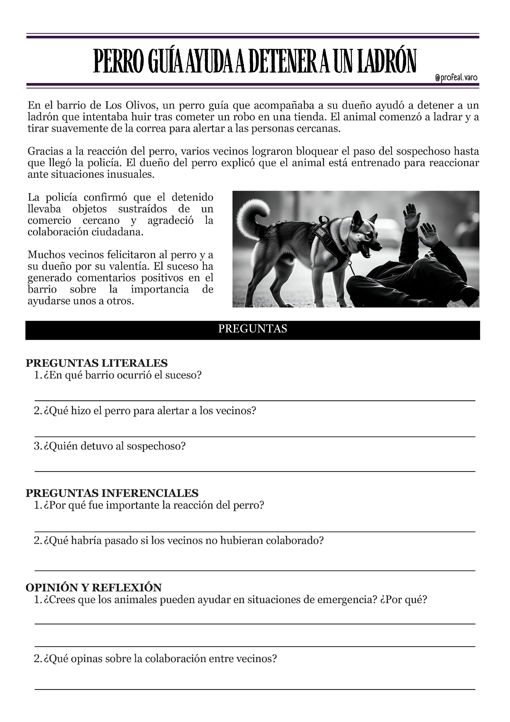Sucesos del barrio (un perro guía que ayuda, un robo frustrado).