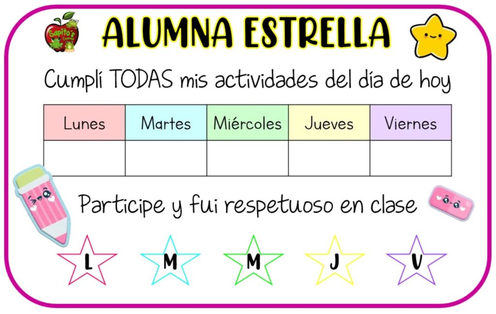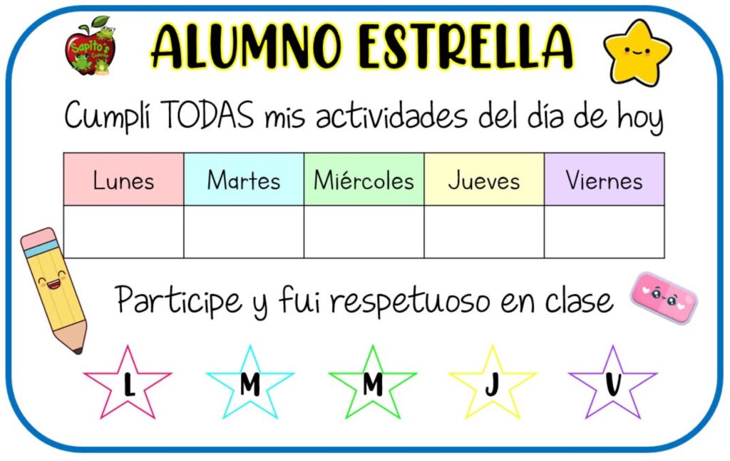 Además, recursos como el seguimiento del “alumno estrella” fomentan la autorregulación. Los estudiantes aprenden a observar su propio progreso día a día, lo que refuerza la responsabilidad y el compromiso con sus tareas. Este reconocimiento visible del esfuerzo también fortalece la relación entre escuela y familia, ya que permite compartir con claridad los avances y logros del alumnado.
