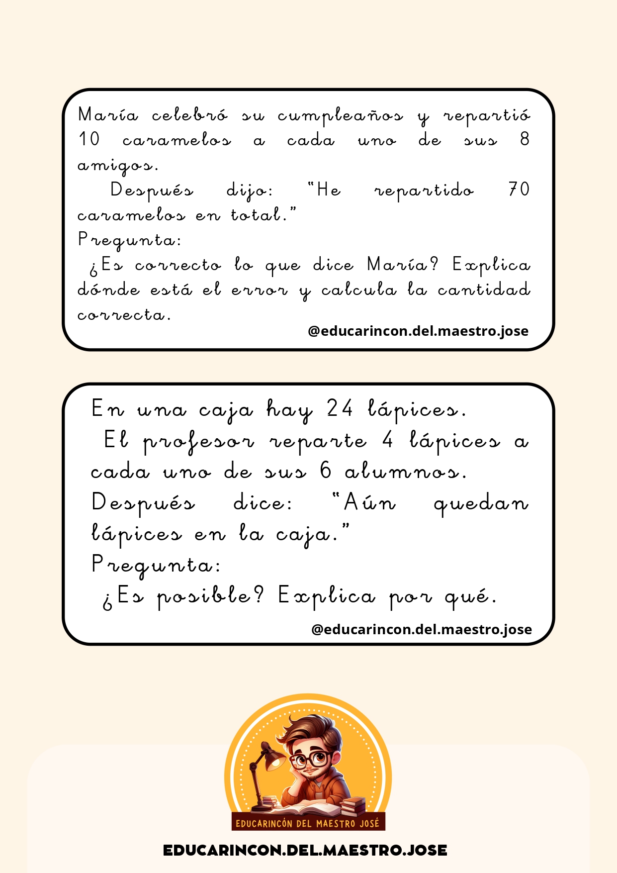 Pero eso no es todo… ¡también aprenderás a resolver problemas de la vida real! La verdadera potencia de este material es que enseña al alumno a aplicar las matemáticas en situaciones cotidianas, convirtiendo los números en herramientas útiles. A través de sus retos, los estudiantes trabajarán aspectos tan esenciales como: