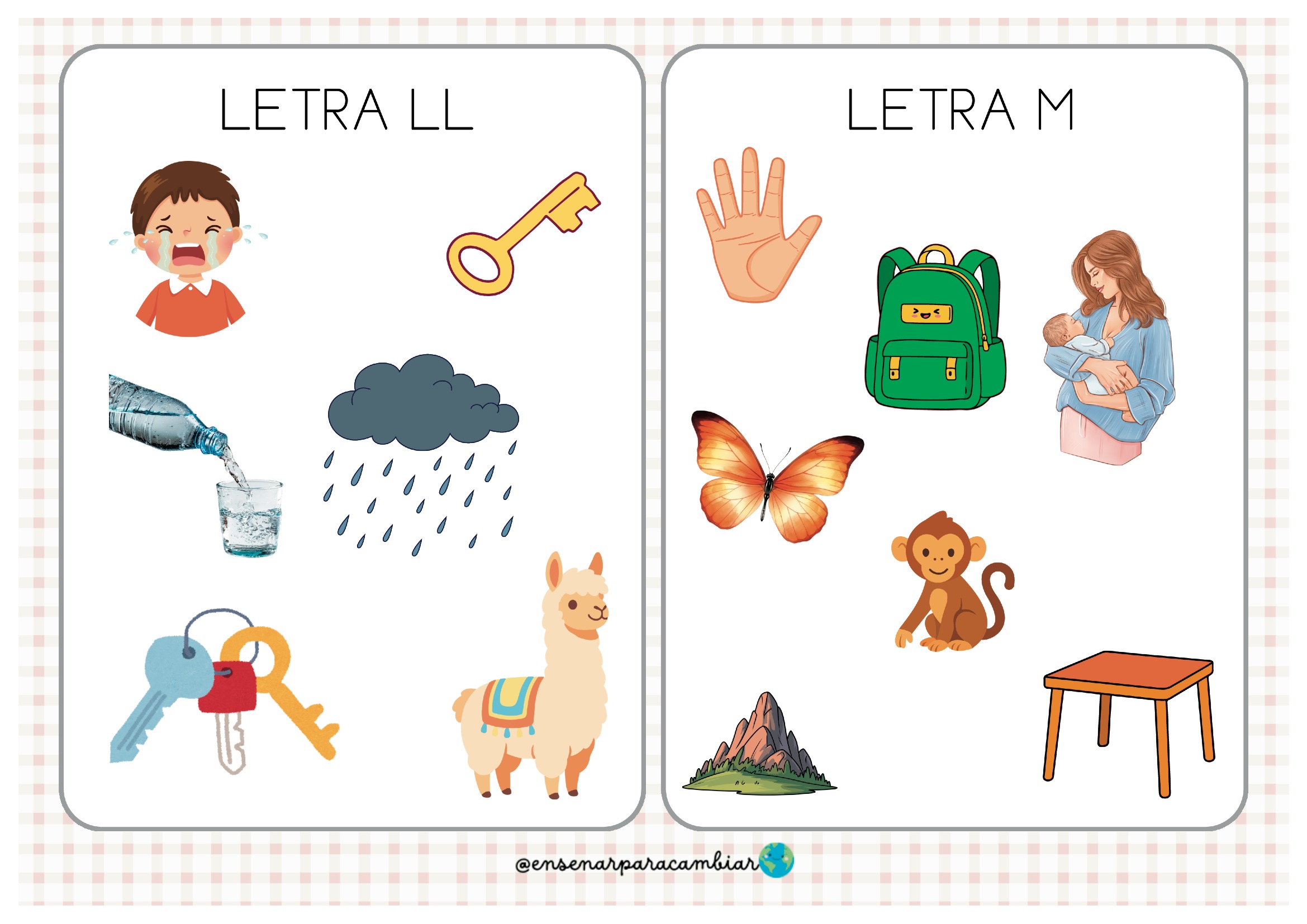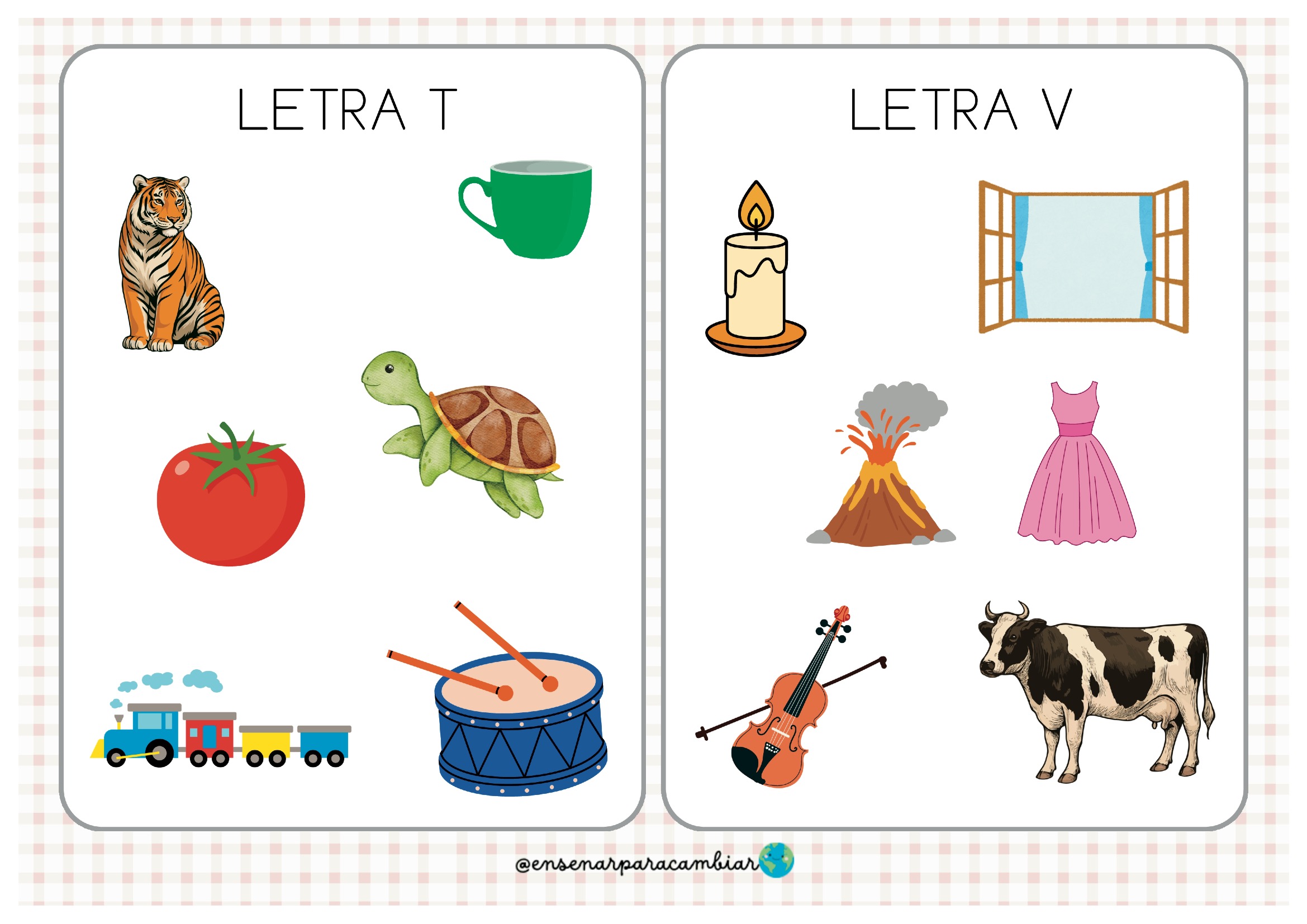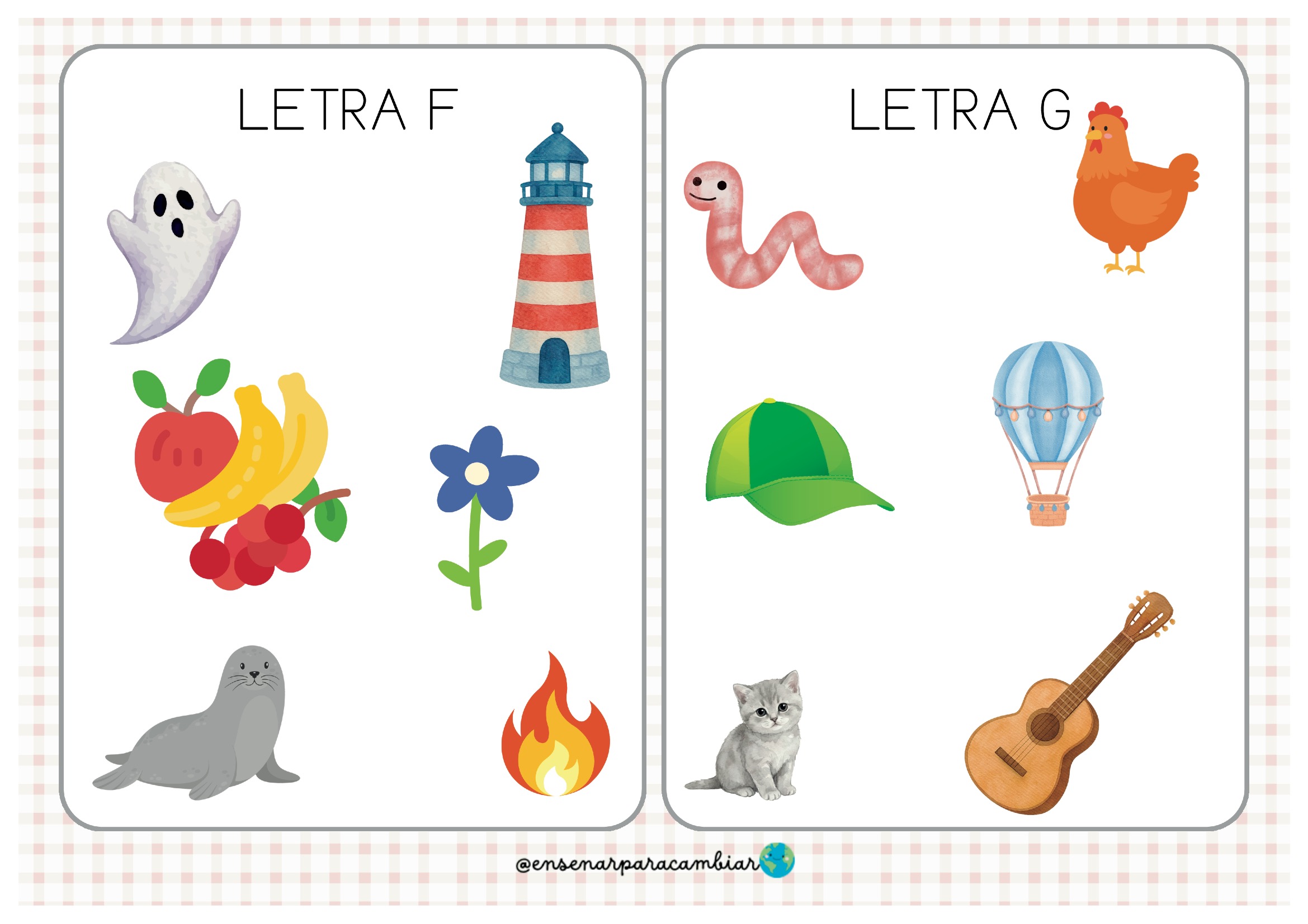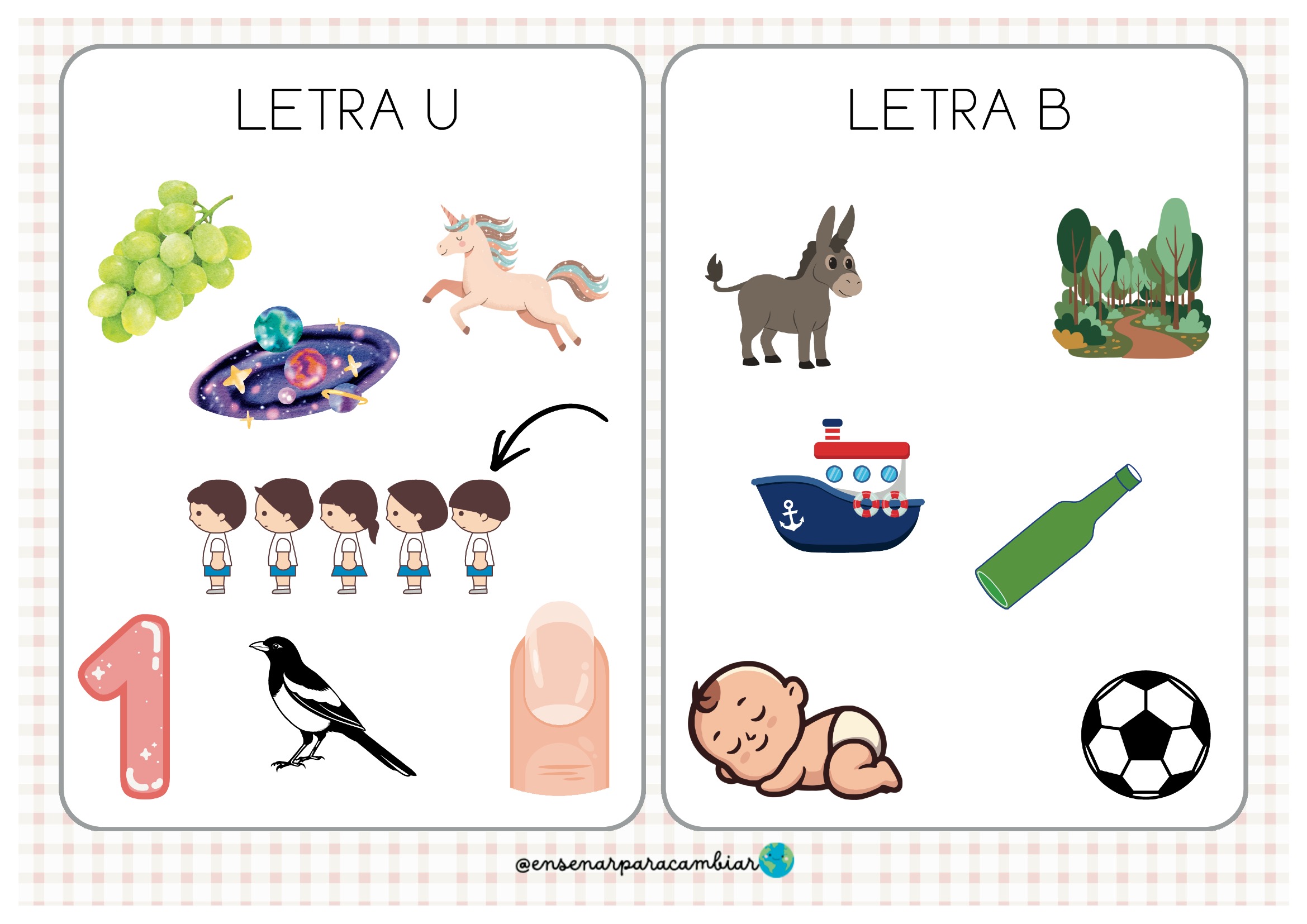 Este material permite trabajar cada letra del abecedario a través de imágenes que representan palabras que comienzan con ese sonido. Una forma sencilla, clara y divertida de reforzar la relación entre sonido inicial y letra.