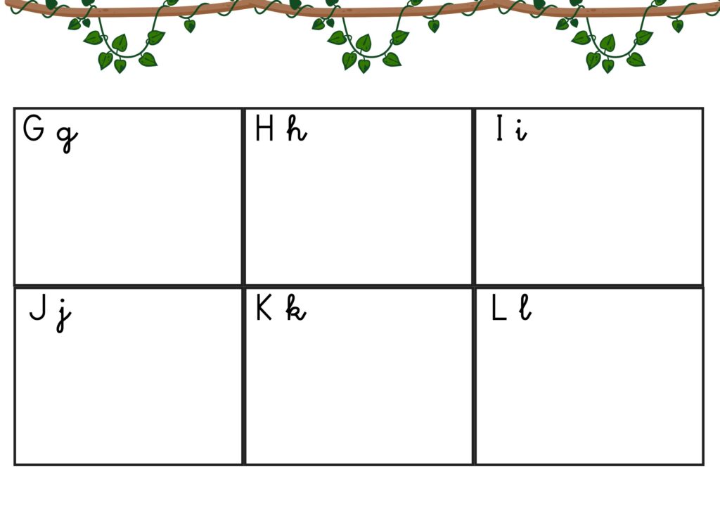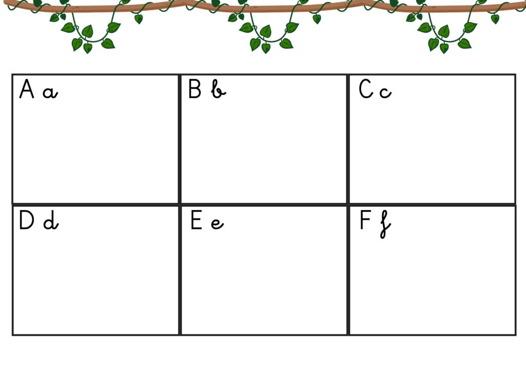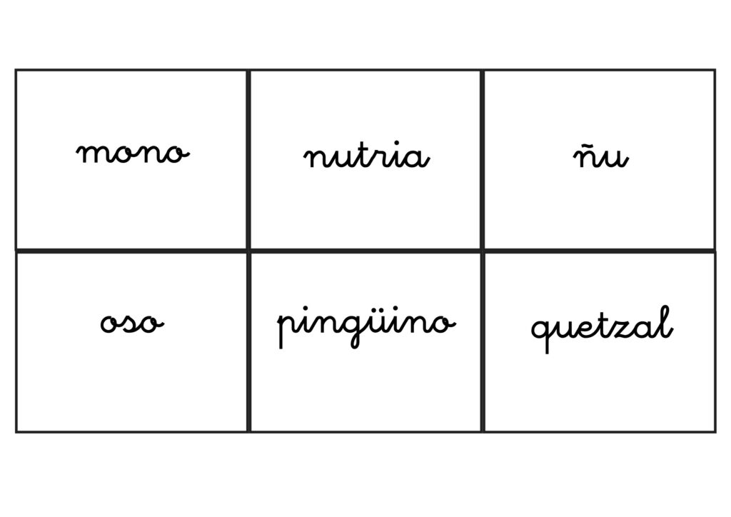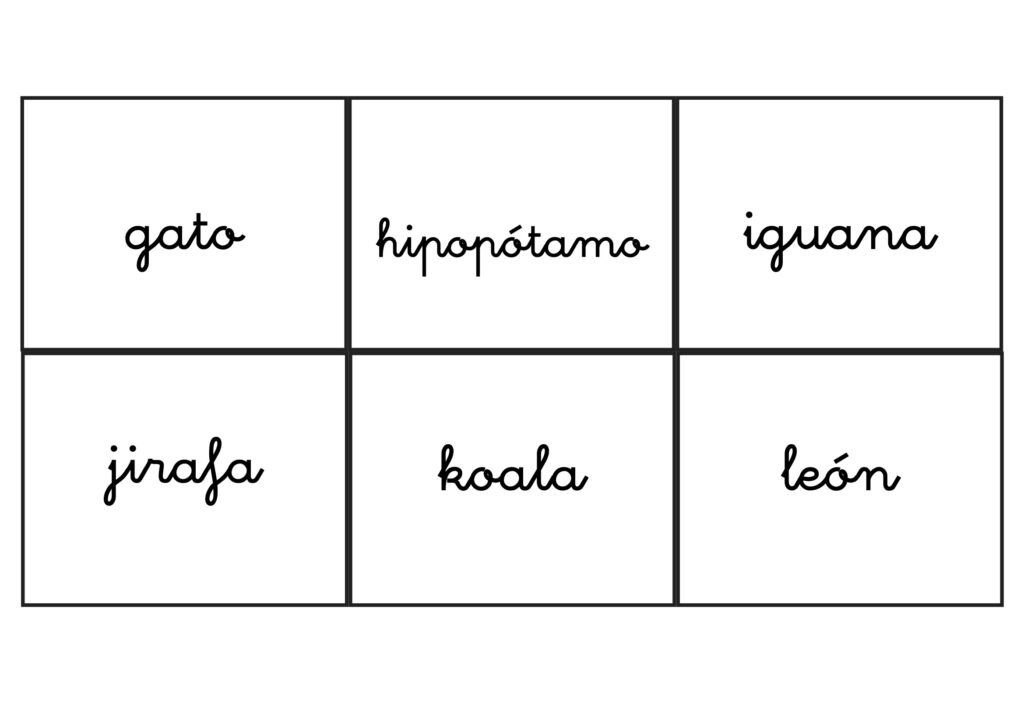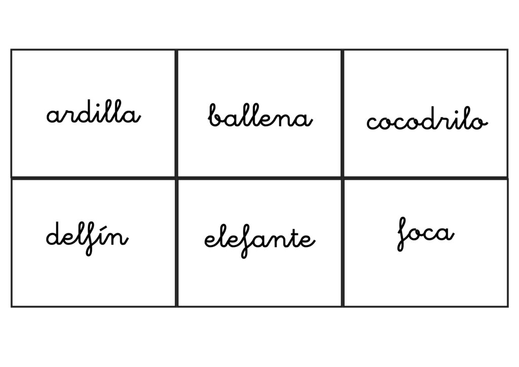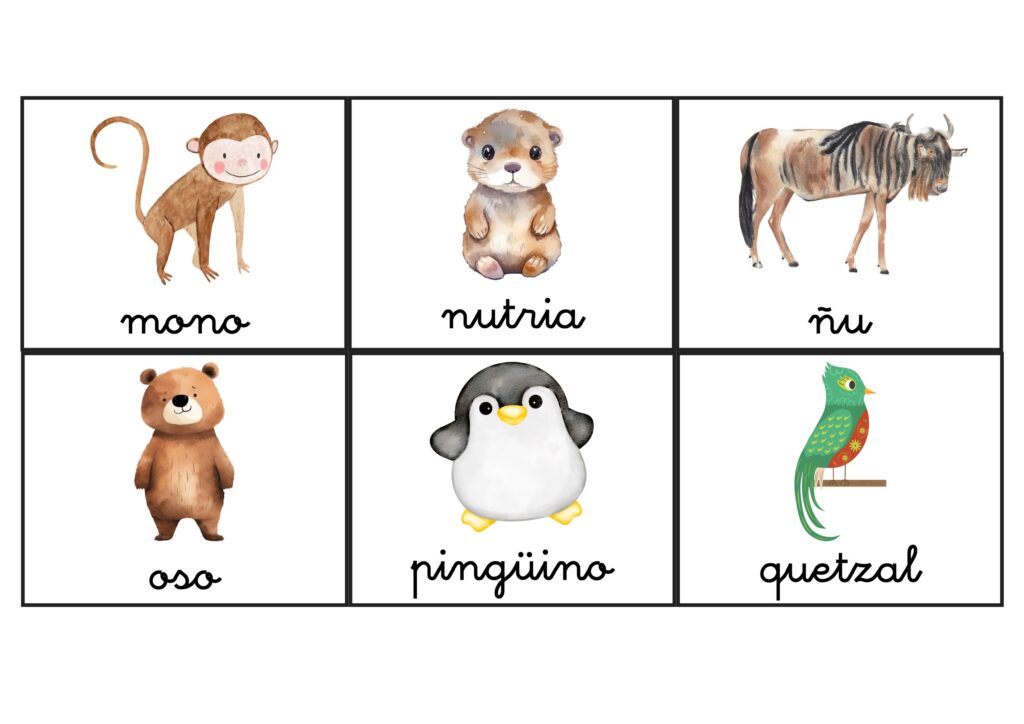 Un animal por cada letra, tanto en versión ilustrada como escrita.