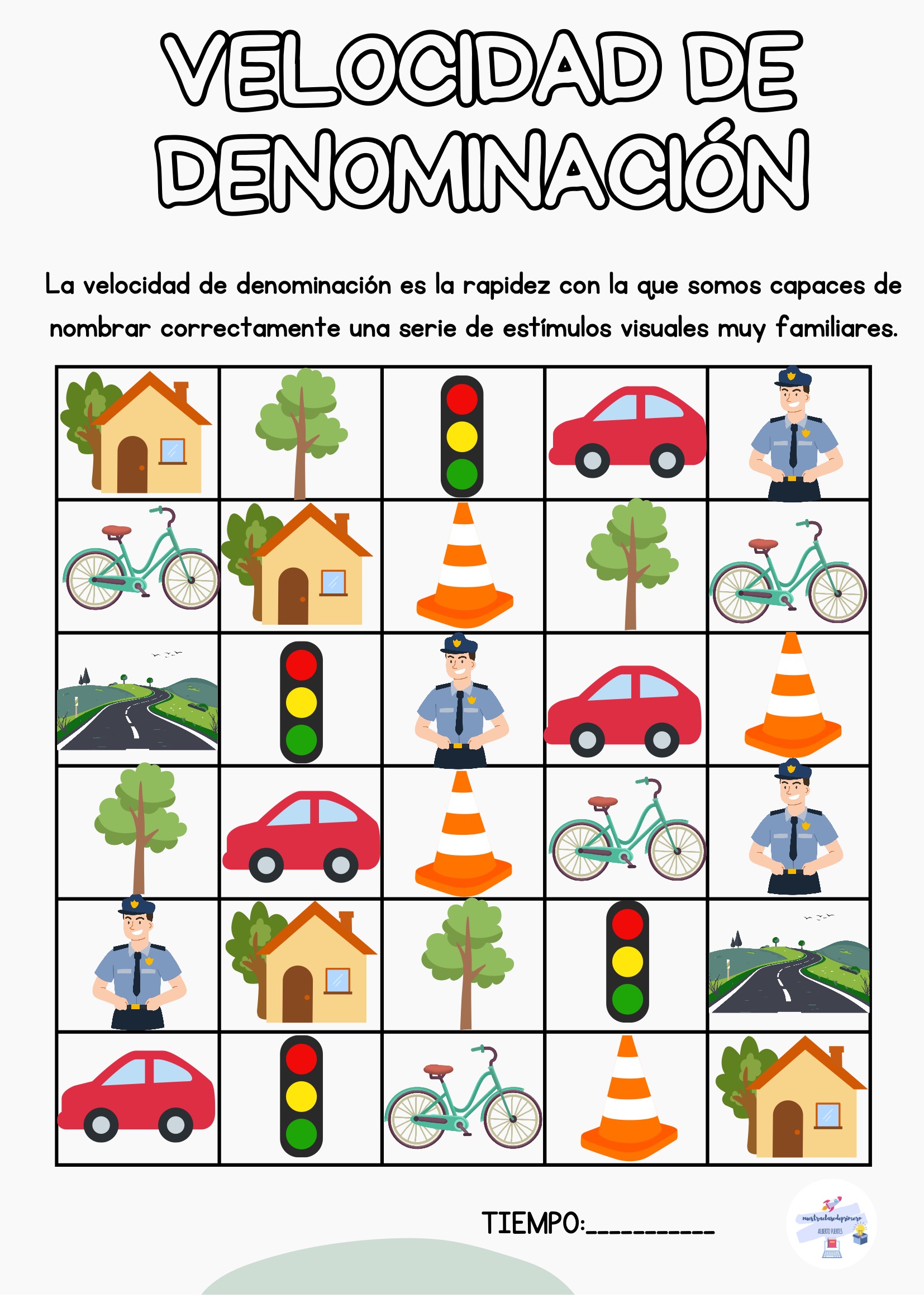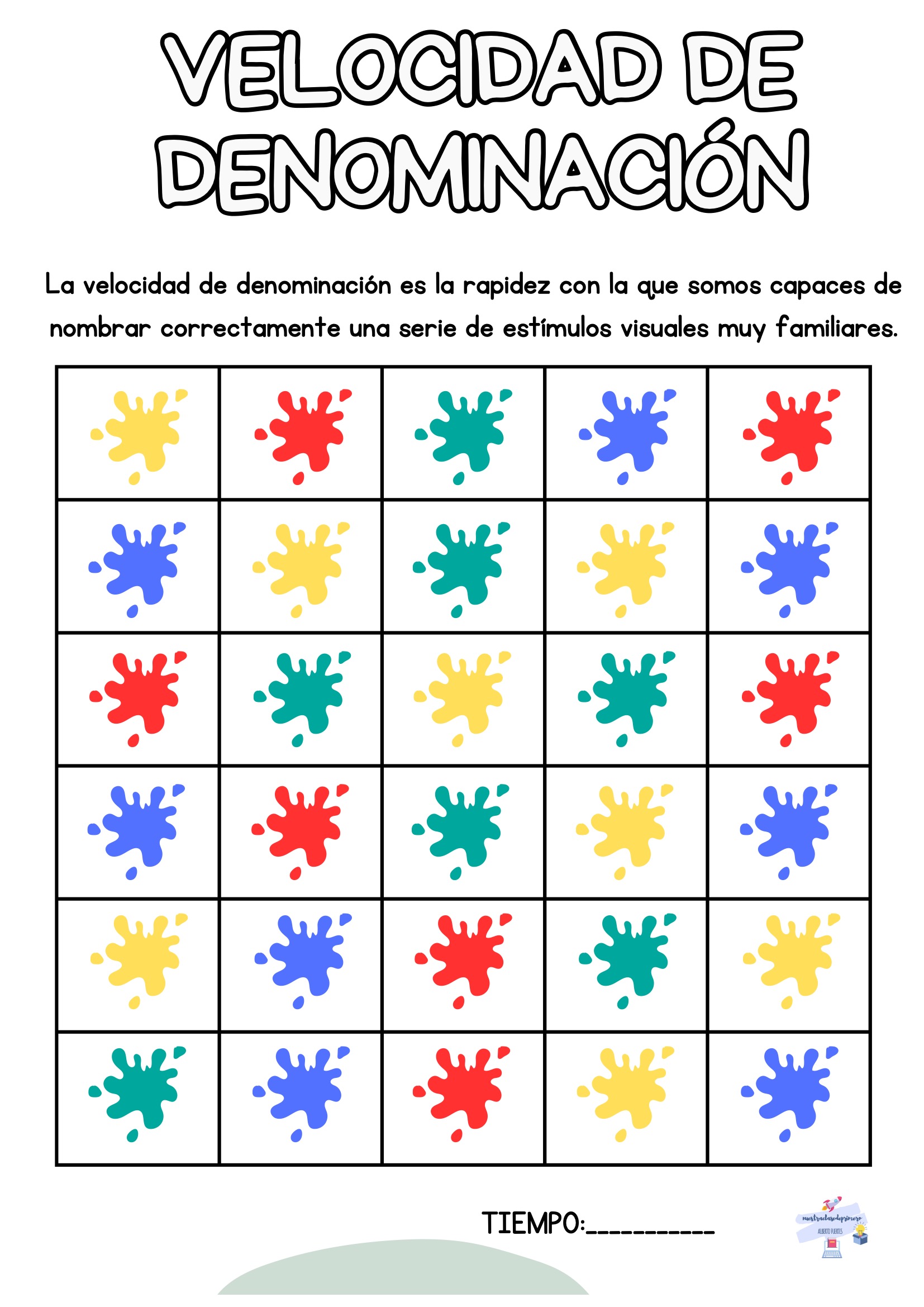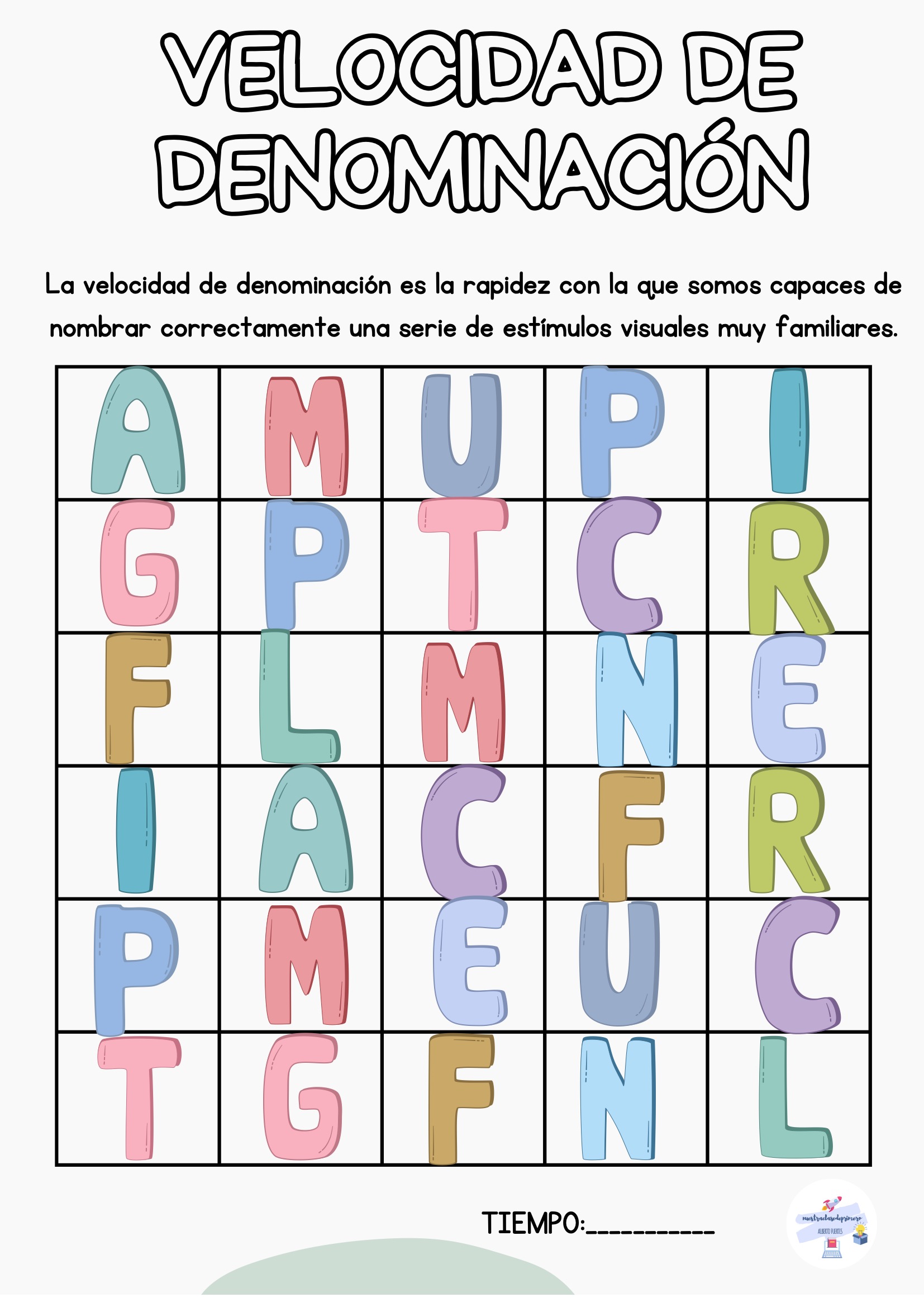 El alumno nombra todos los estímulos de la tabla mientras tú registras el tiempo. Puedes repetir la actividad varias veces a lo largo de la semana para observar mejoras.