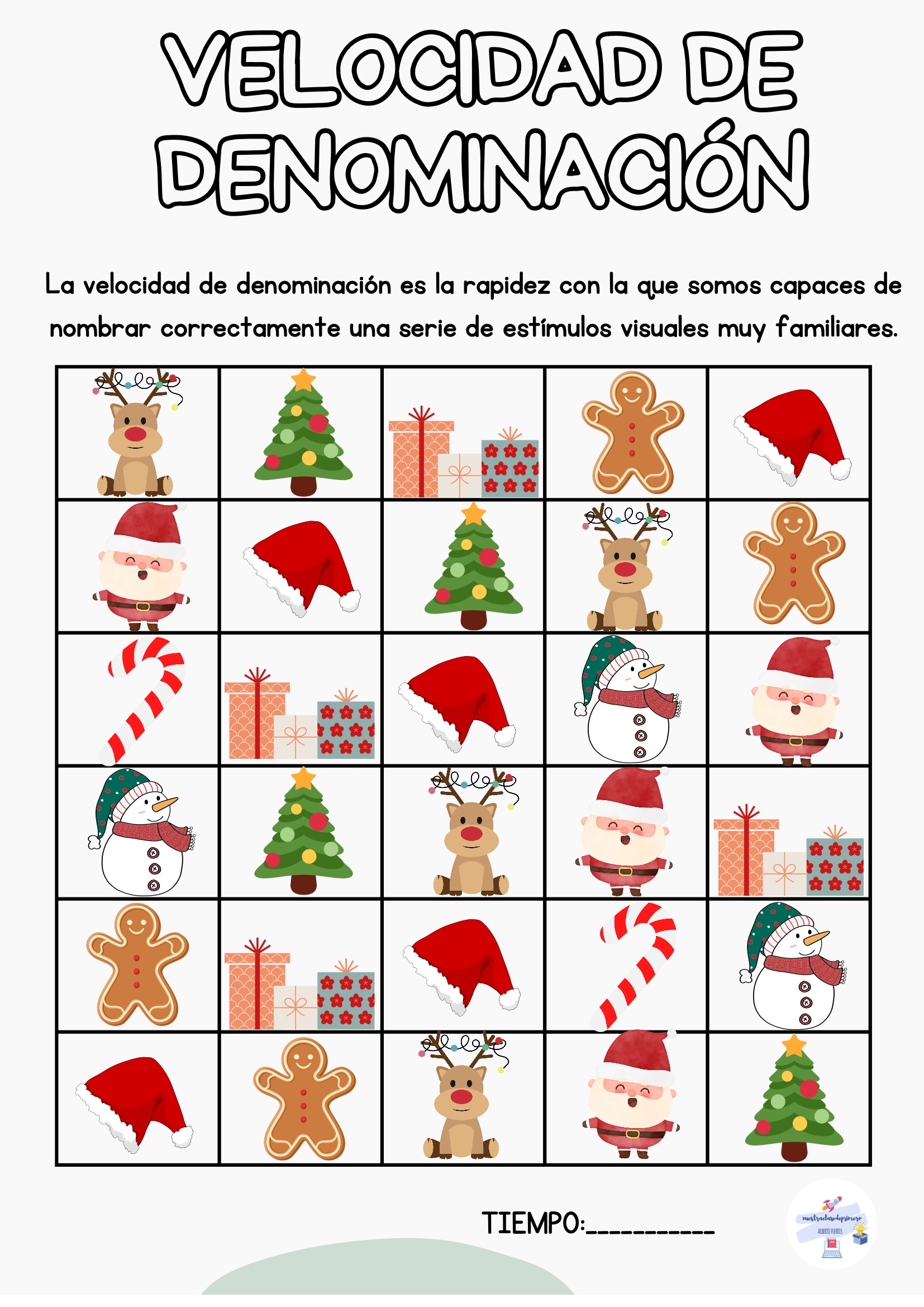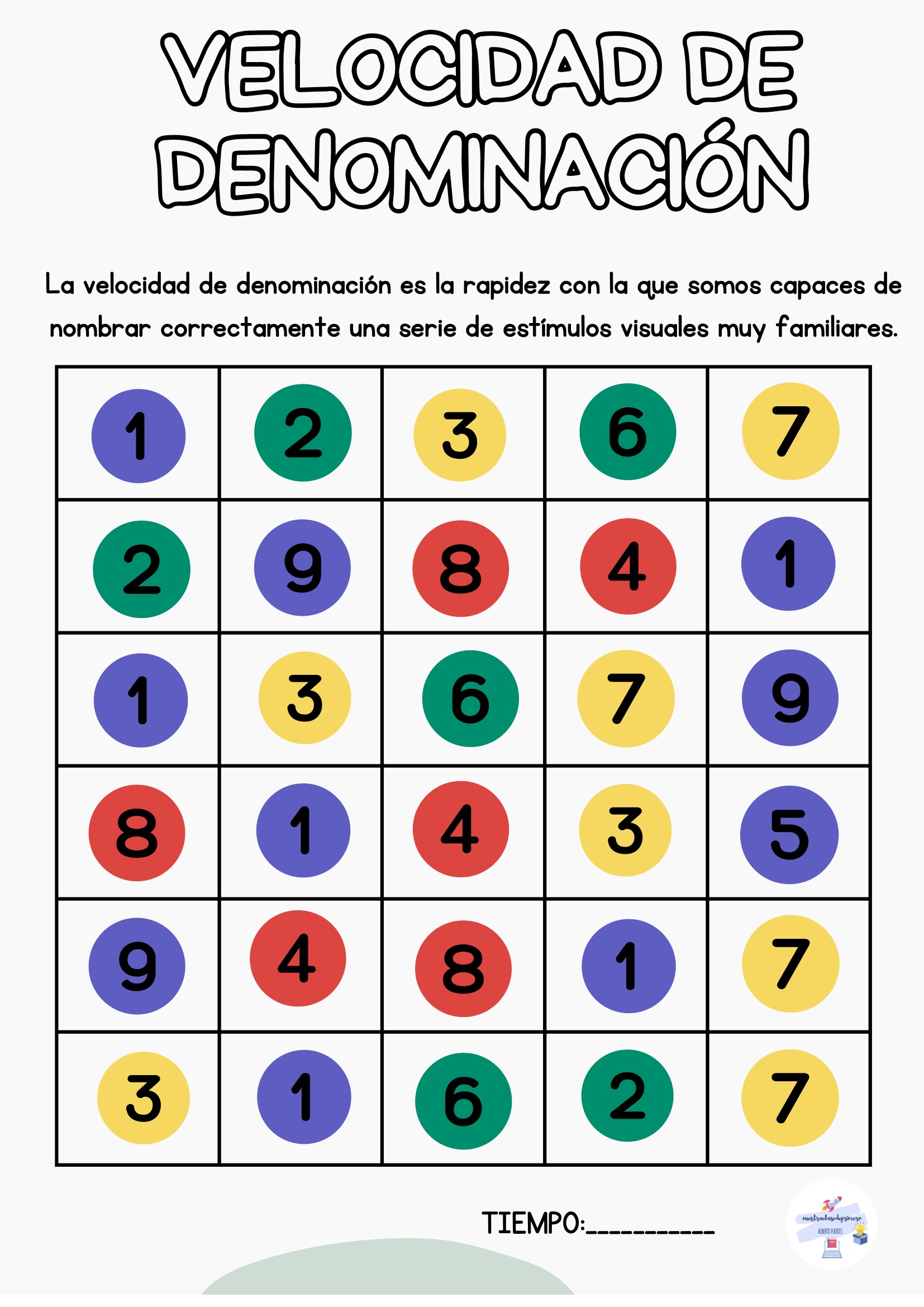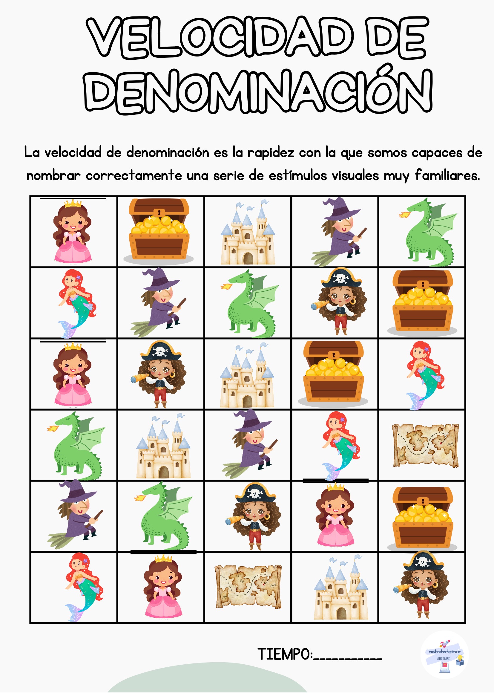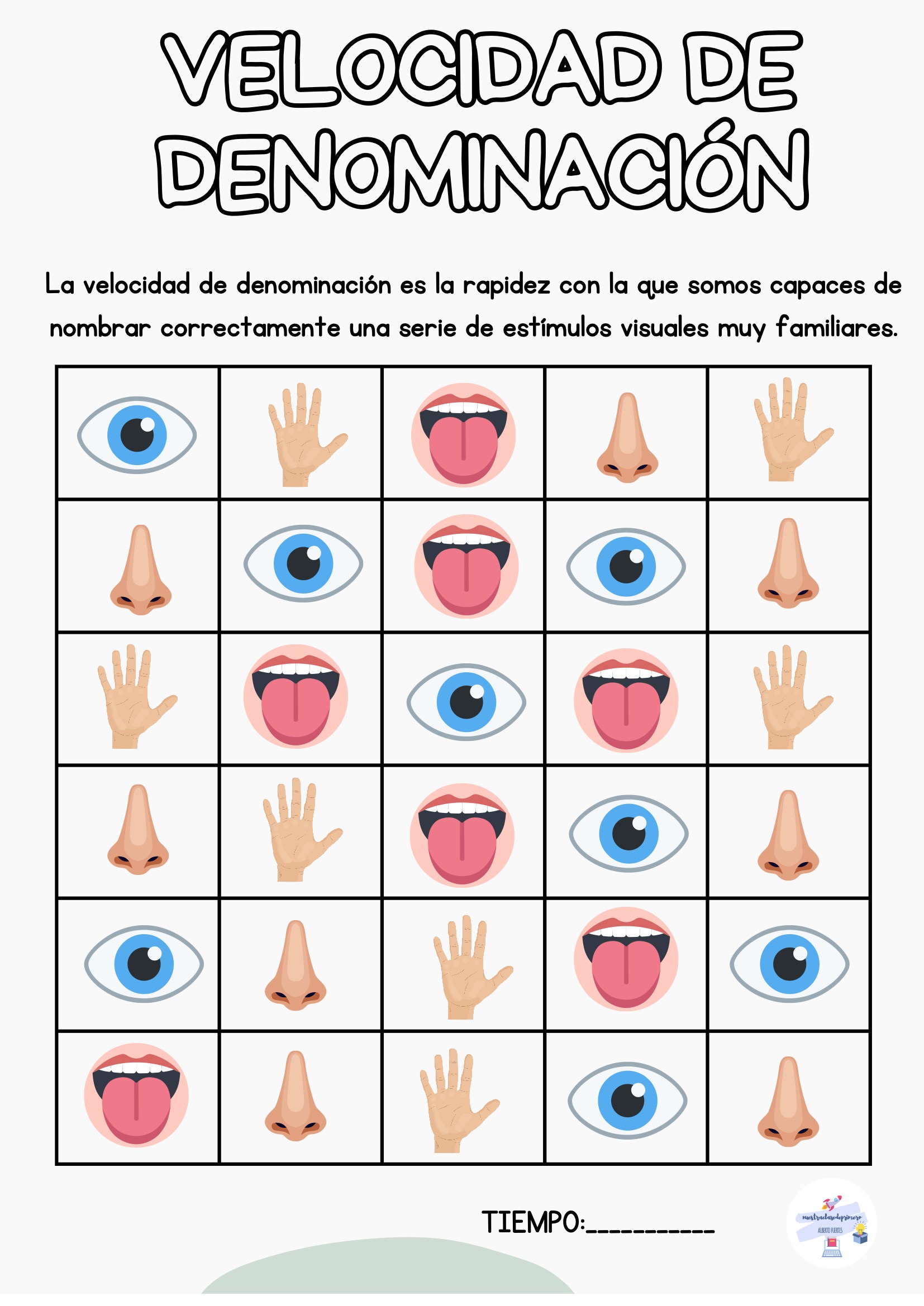 El alumno nombra todos los estímulos de la tabla mientras tú registras el tiempo. Puedes repetir la actividad varias veces a lo largo de la semana para observar mejoras.