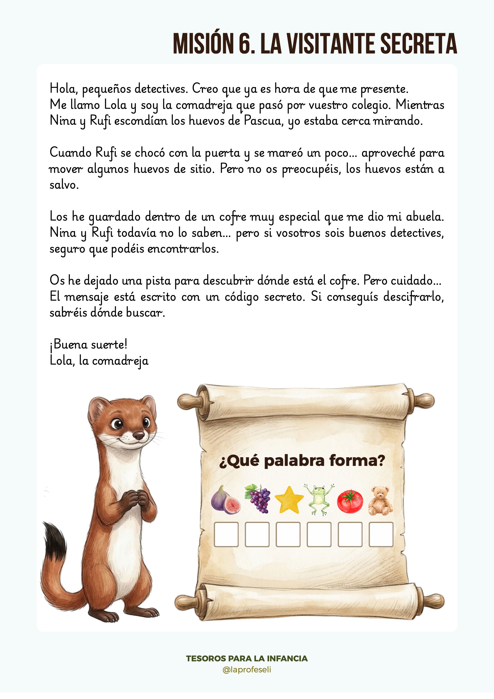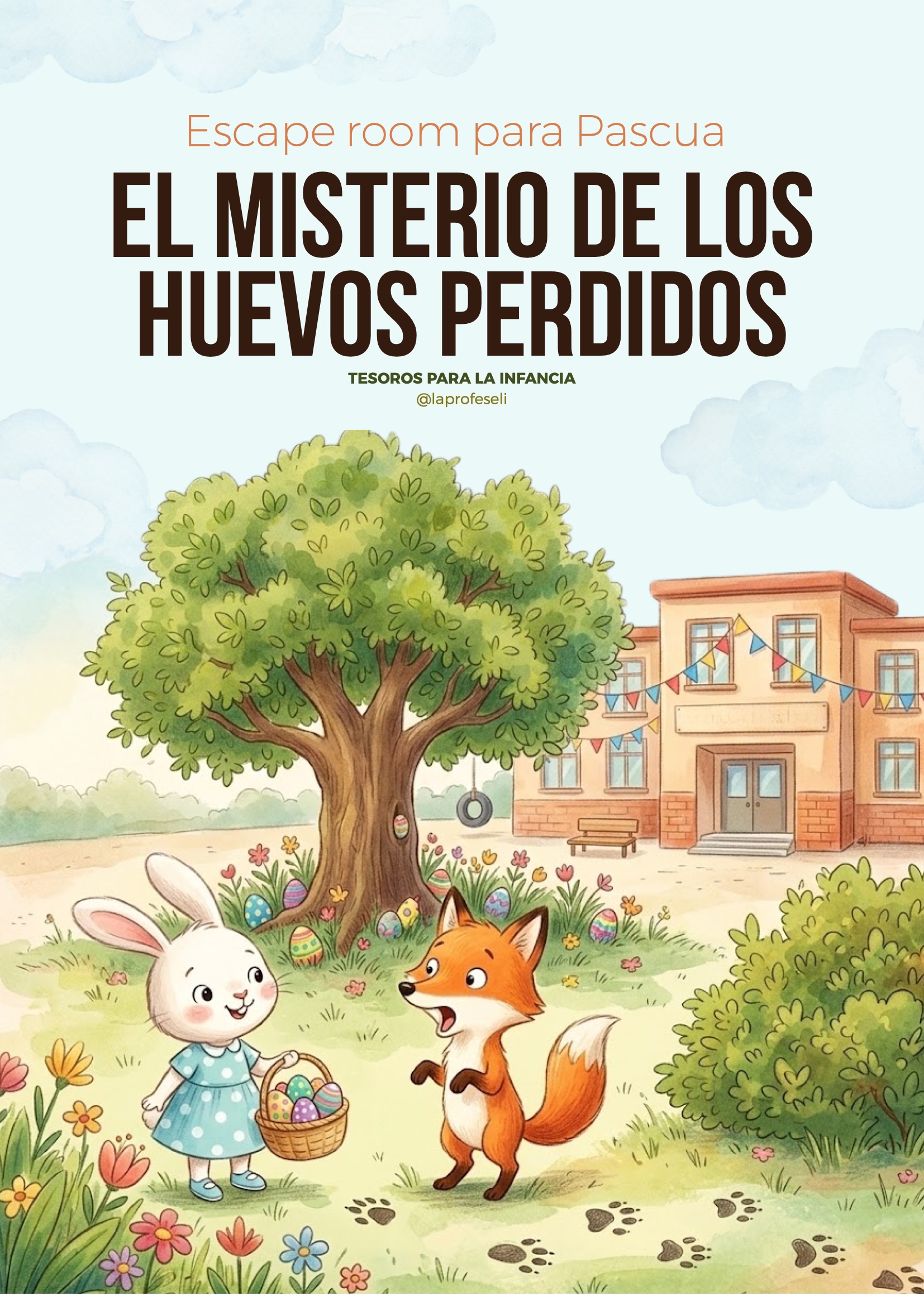 Si buscas una actividad diferente, emocionante y llena de magia para celebrar la Pascua en tu aula, este Escape Room educativo es justo lo que necesitas. El misterio de los huevos perdidos convierte a tus alumnos en auténticos detectives, acompañando a Nina la conejita y a Rufi el zorro en una aventura llena de pistas, códigos secretos y misiones cooperativas.