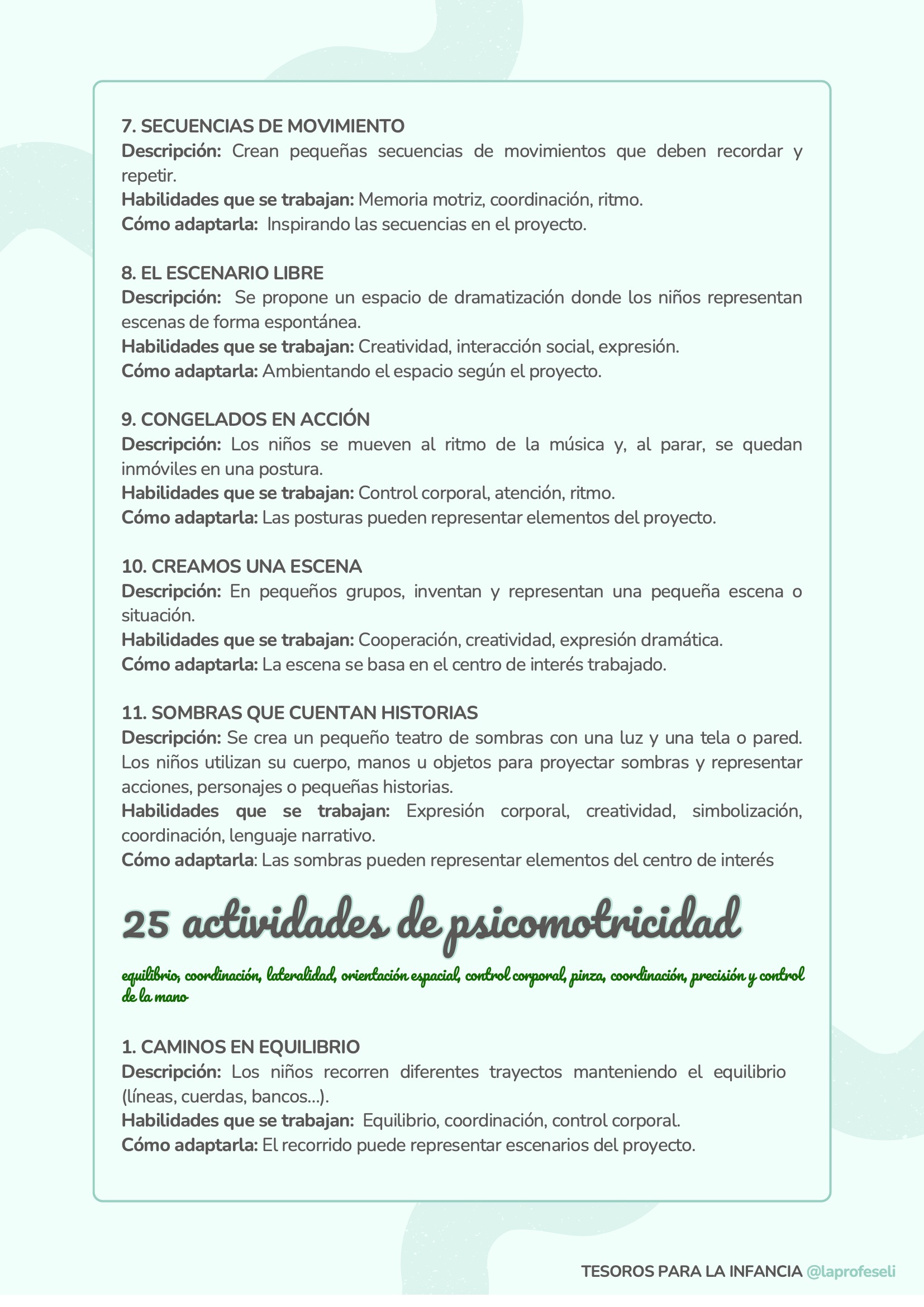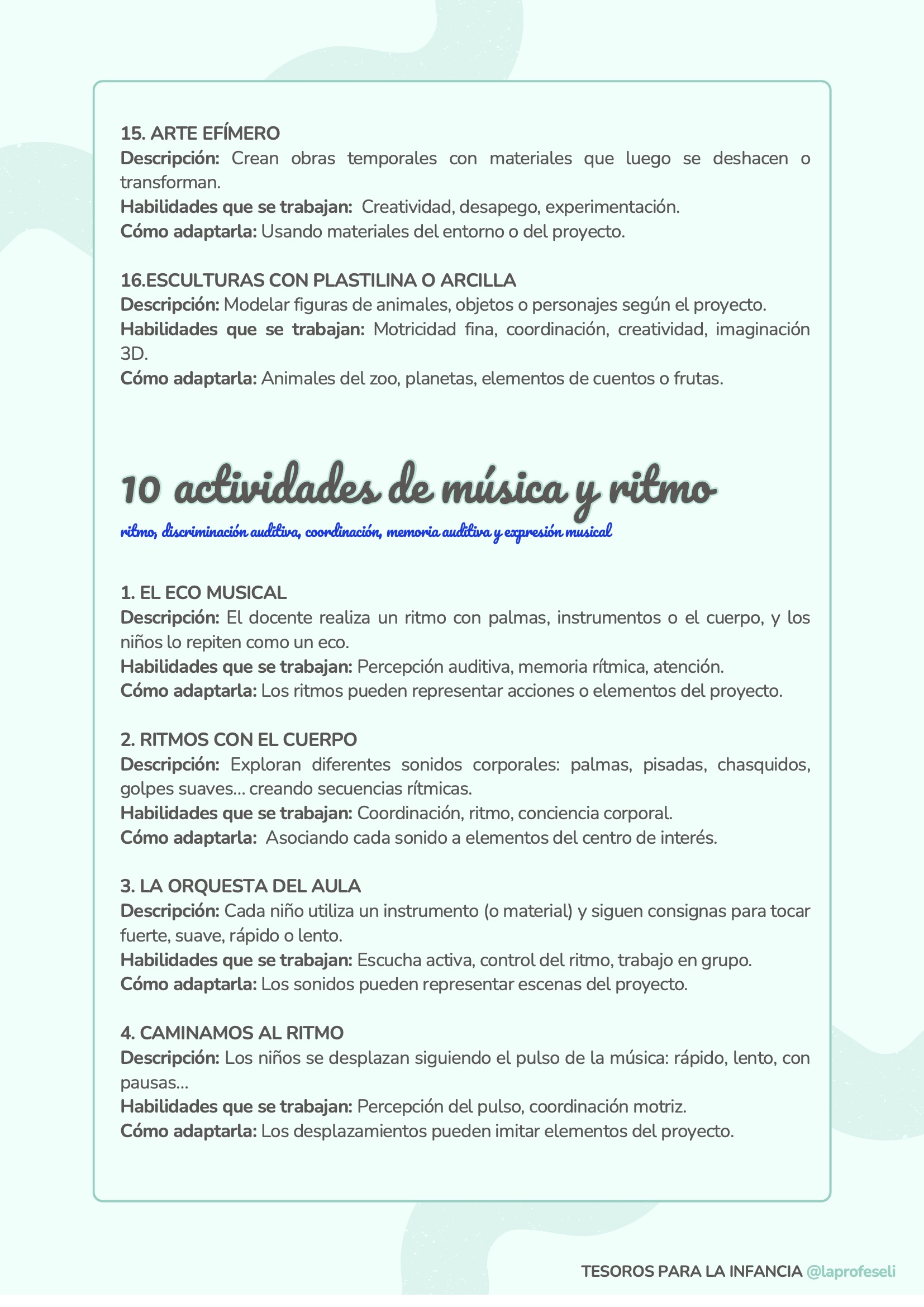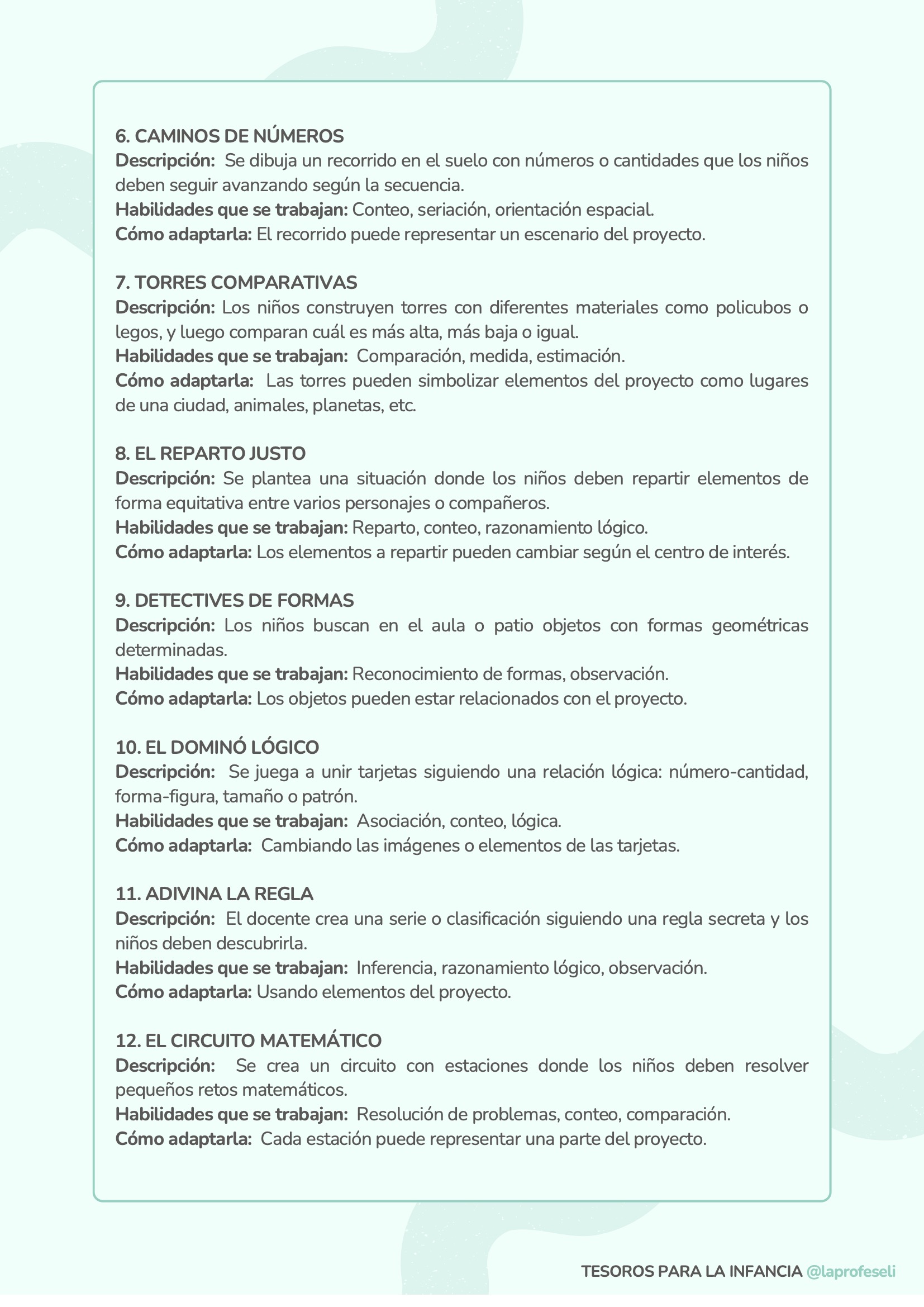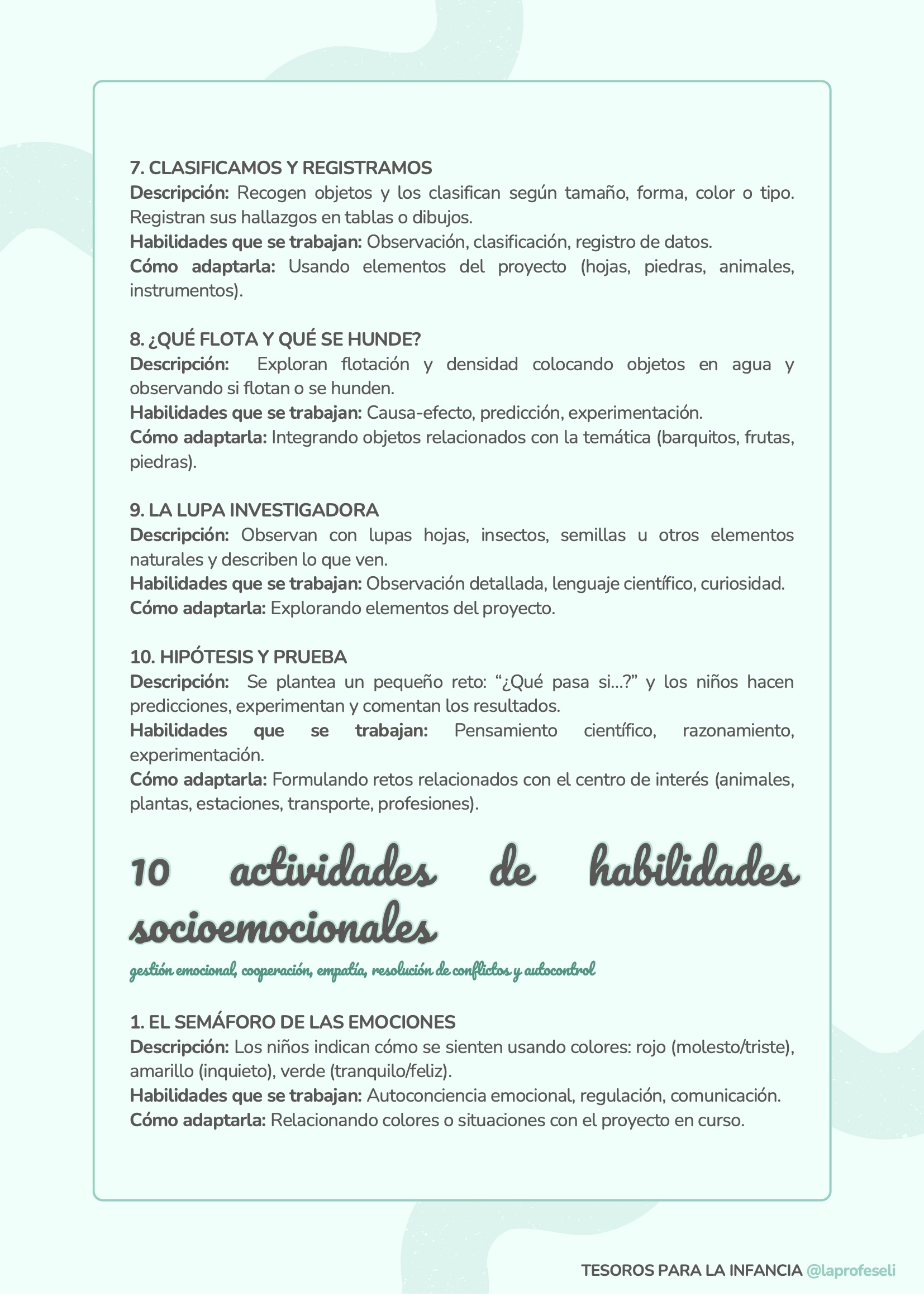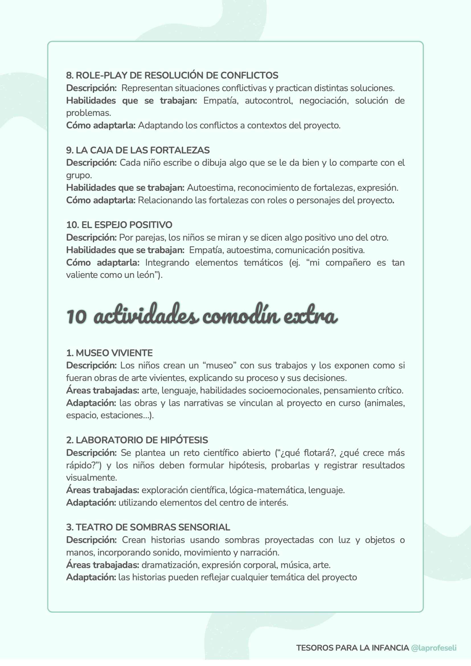 Un banco de actividades diseñado para acompañarte en cualquier situación de aprendizaje, independientemente de la temática o del momento del aula. Esta recopilación incluye 120 propuestas organizadas por habilidades clave como son: lectoescritura, lógica-matemática, arte, música y ritmo, expresión corporal, dramatización, psicomotricidad, exploración y pensamiento científico y habilidades socioemocionales.