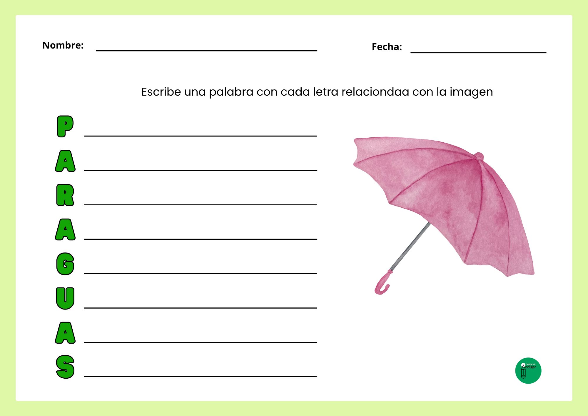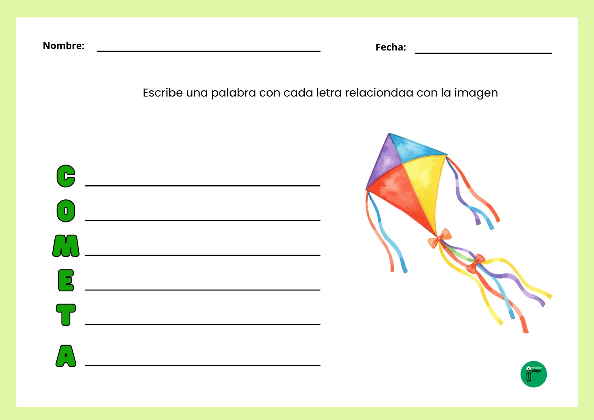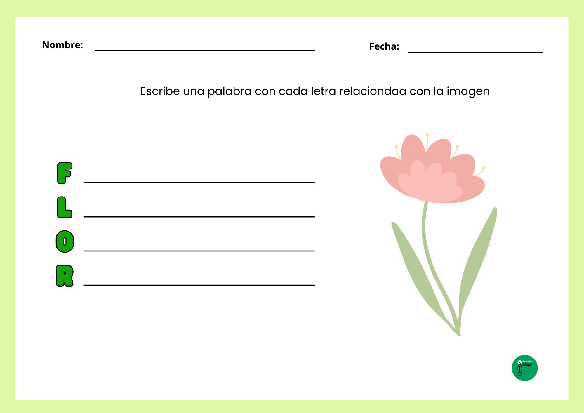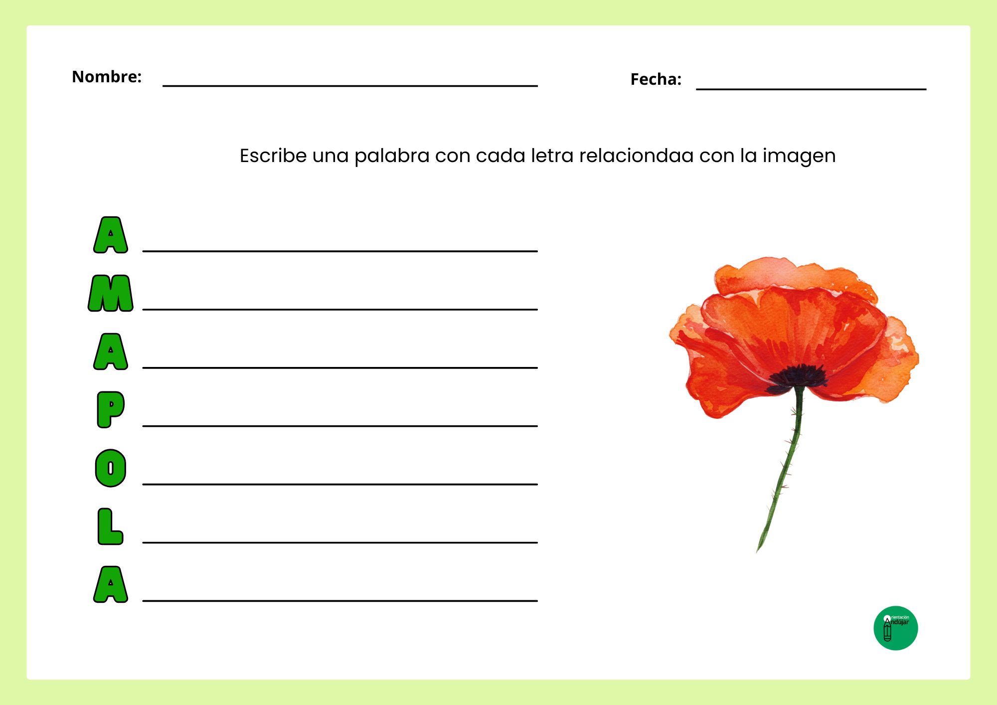 Conciencia fonológica y ortográfica: Para realizar un acróstico, el niño debe segmentar la palabra fuente y reconocer perfectamente el sonido y la grafía inicial de cada línea, reforzando la precisión al escribir.