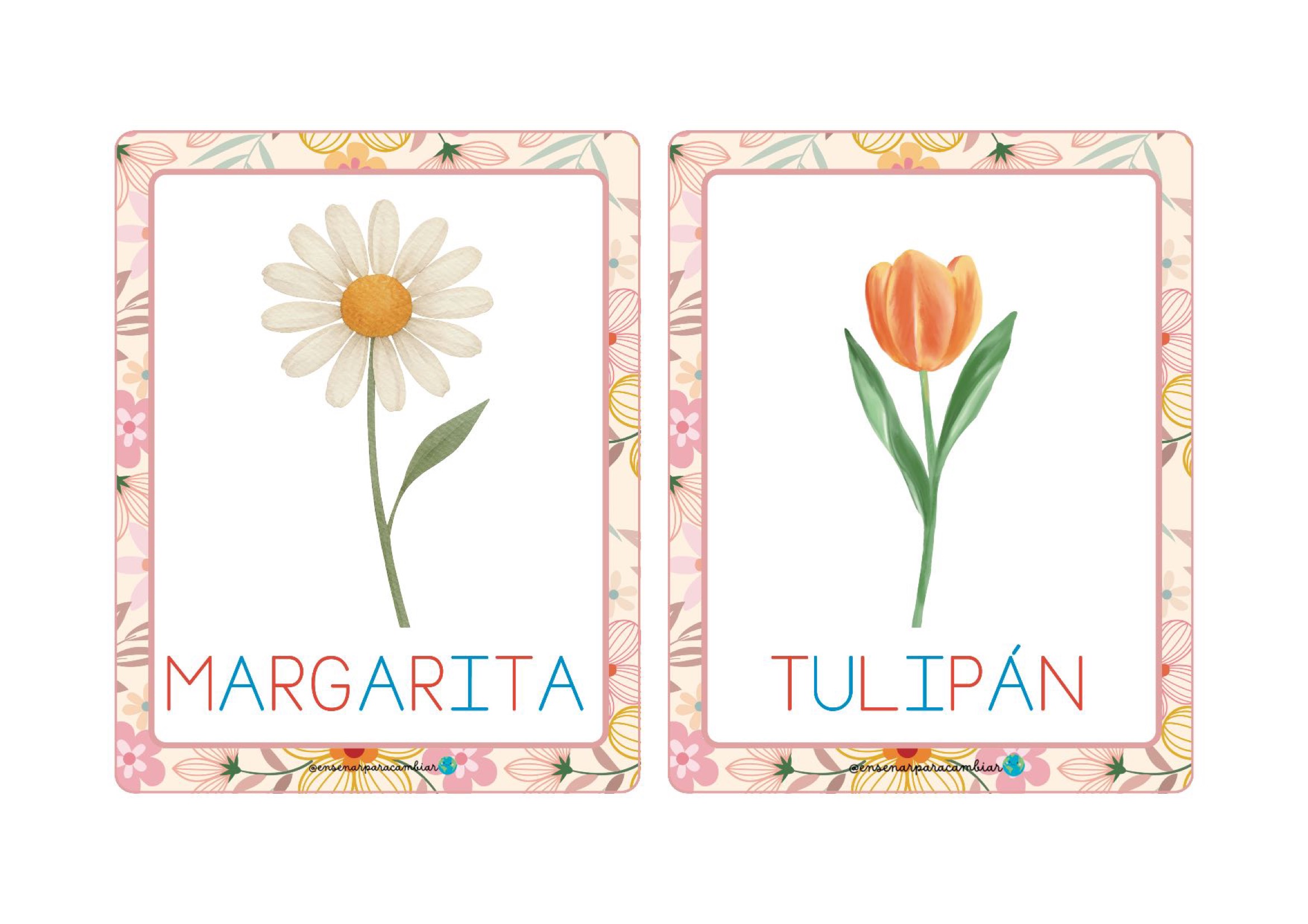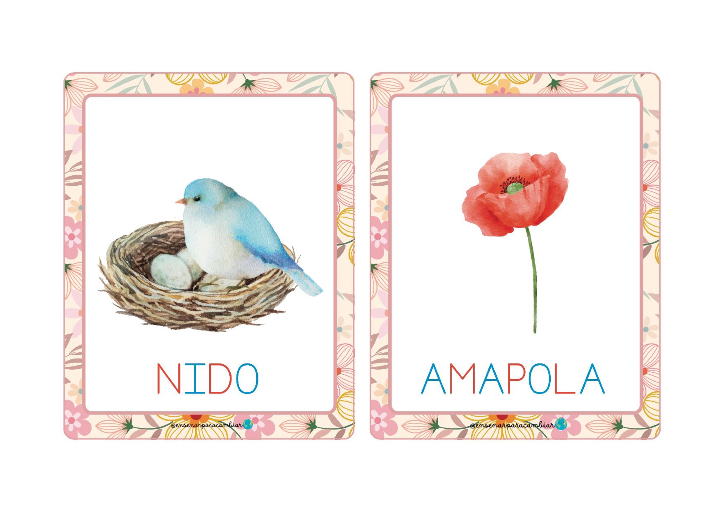 Estas tarjetas son ideales para: ✔ juegos de vocabulario ✔ lectoescritura inicial ✔ rincones temáticos ✔ murales de primavera ✔ actividades de clasificación