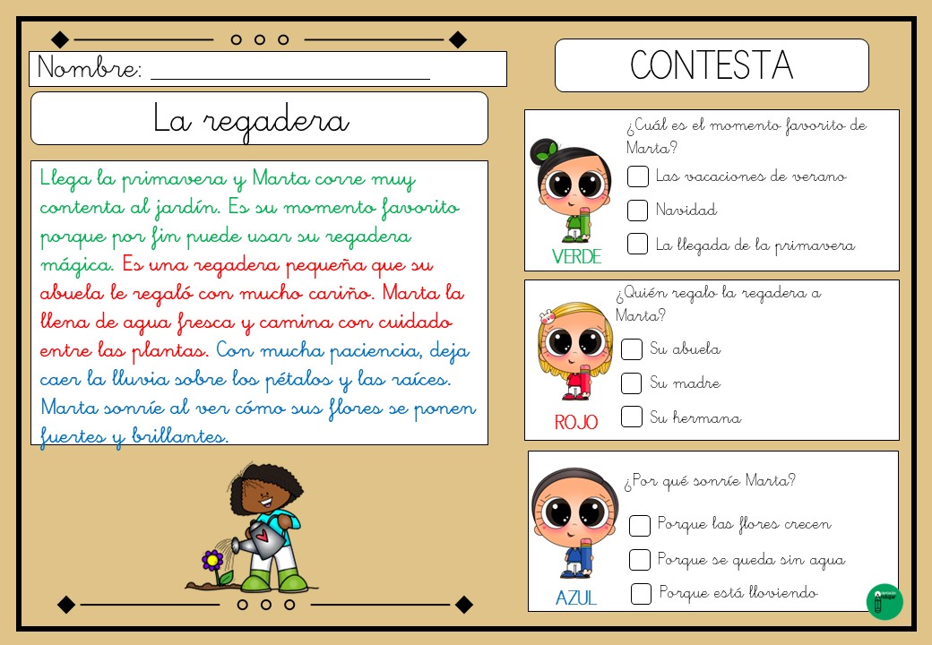 Cada lectura está diseñada con fragmentos de texto resaltados en diferentes colores. Estos colores no son meros adornos visuales, sino pistas clave que guían a los estudiantes en la identificación de información relevante. Al momento de responder preguntas de comprensión, los alumnos pueden utilizar los colores como referencia para localizar rápidamente las respuestas en el texto.