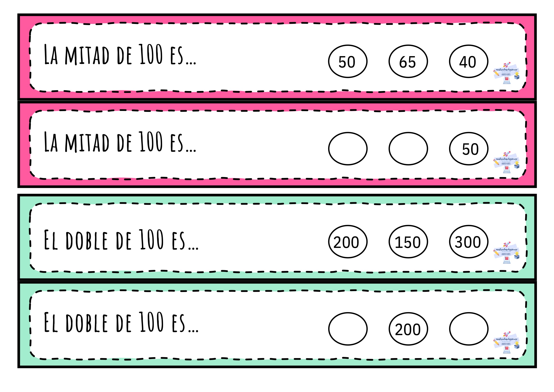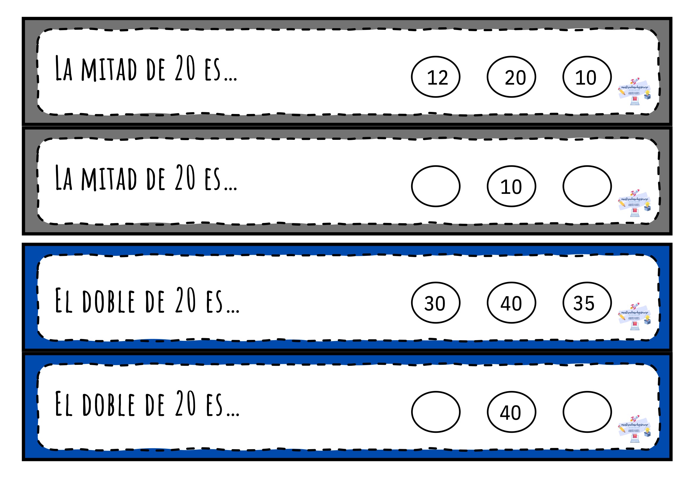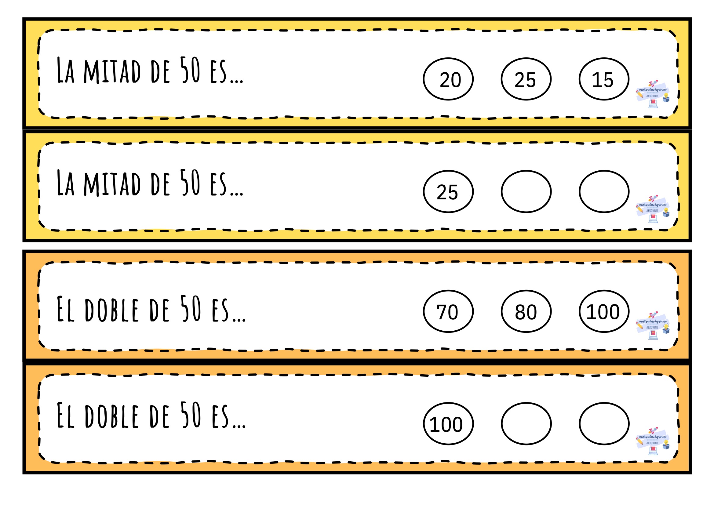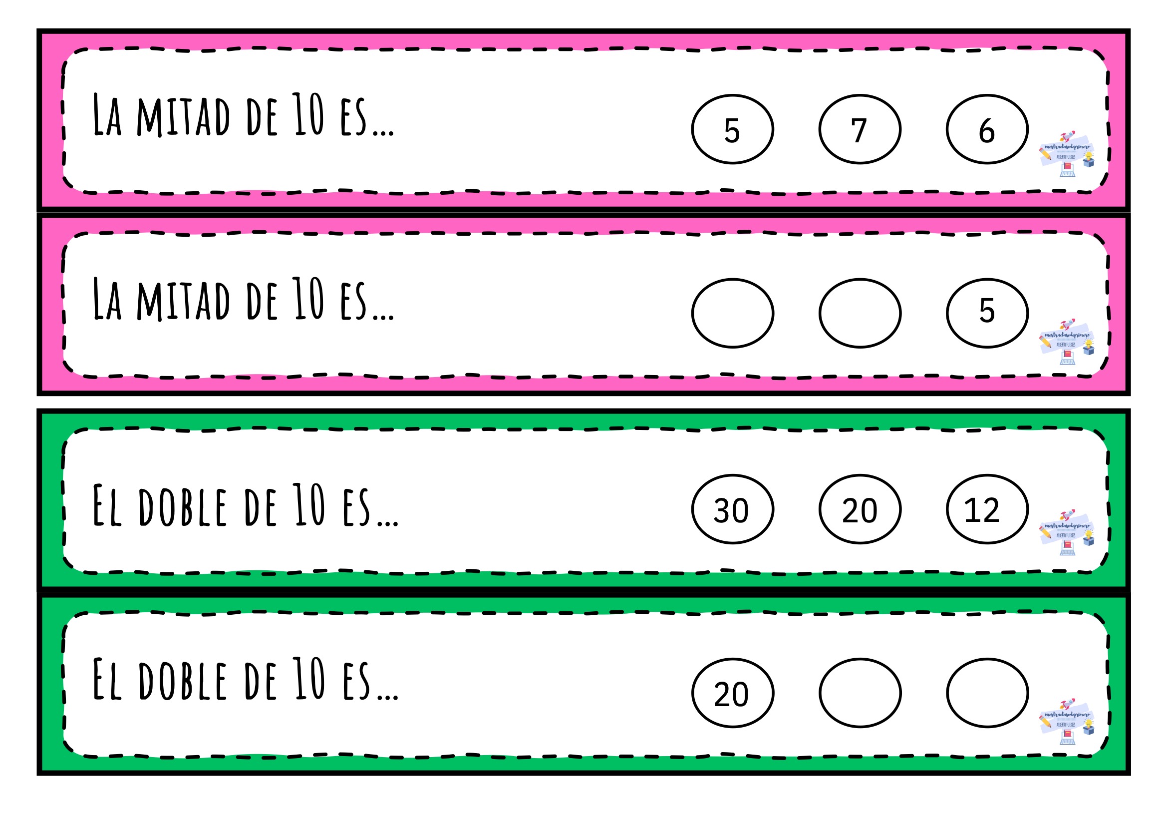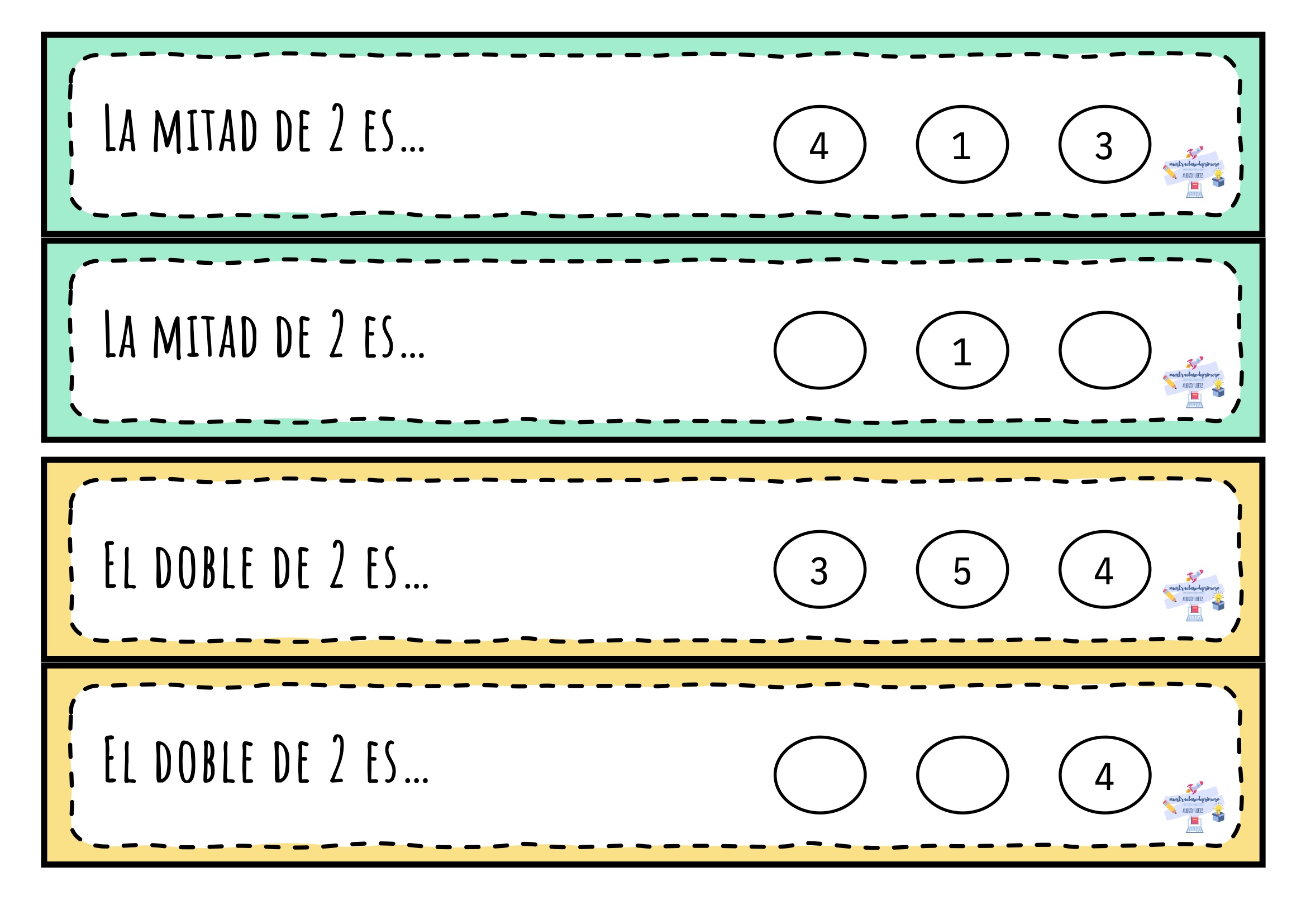 El doble y la mitad son dos conceptos esenciales dentro del cálculo mental en Primaria. Comprenderlos no solo facilita la resolución de operaciones más complejas, sino que también mejora la agilidad numérica y la capacidad de razonamiento. Este material está pensado para que los niños y niñas practiquen de forma sencilla, visual y muy intuitiva.