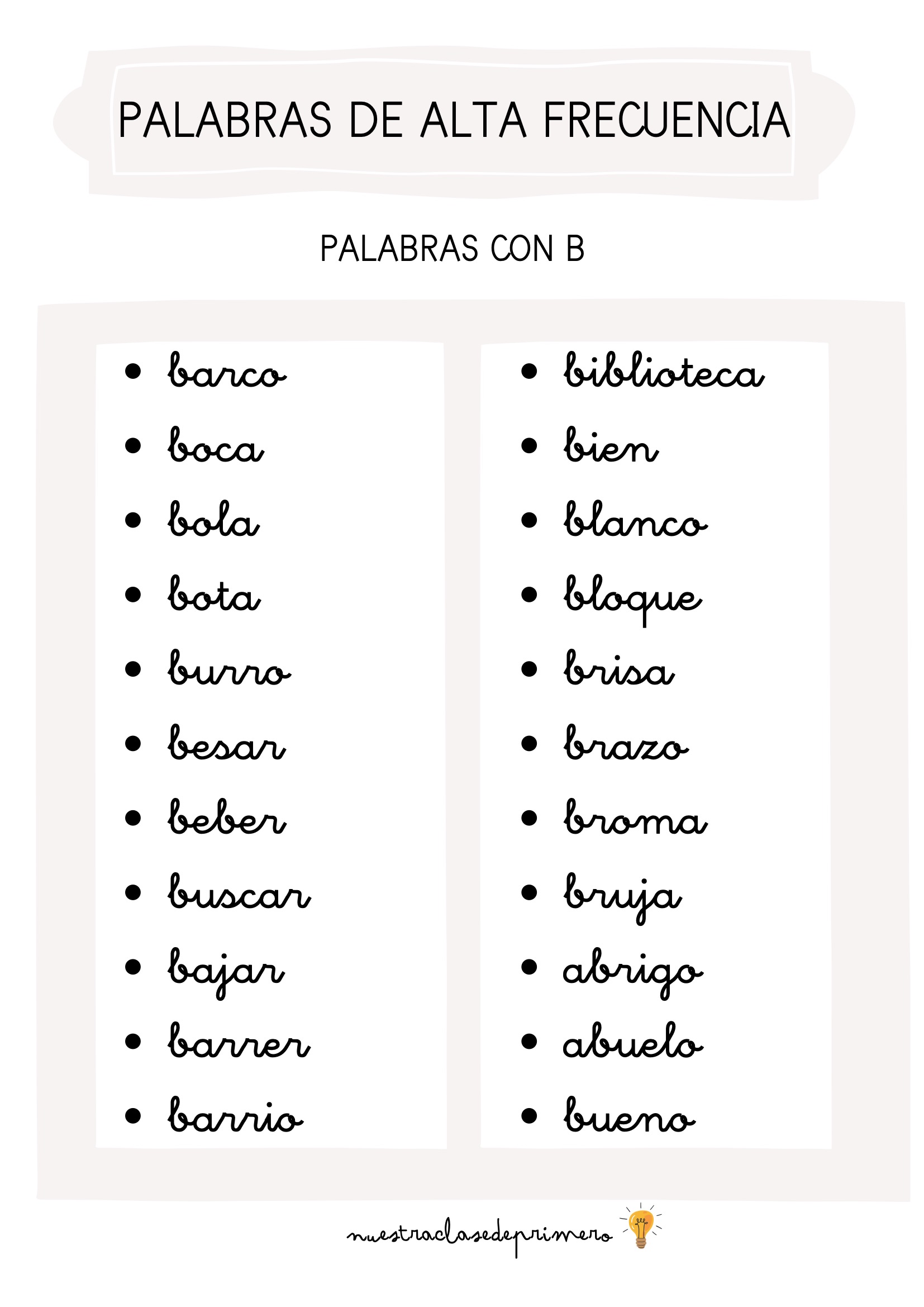PALABRAS ALTA FRECUENCIA EN PRIMARIA 4