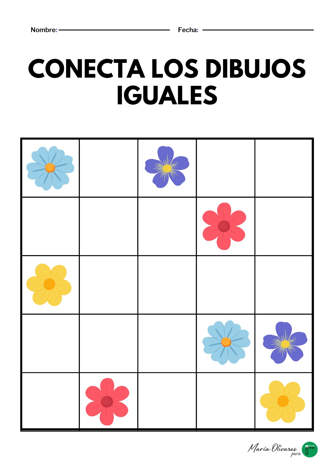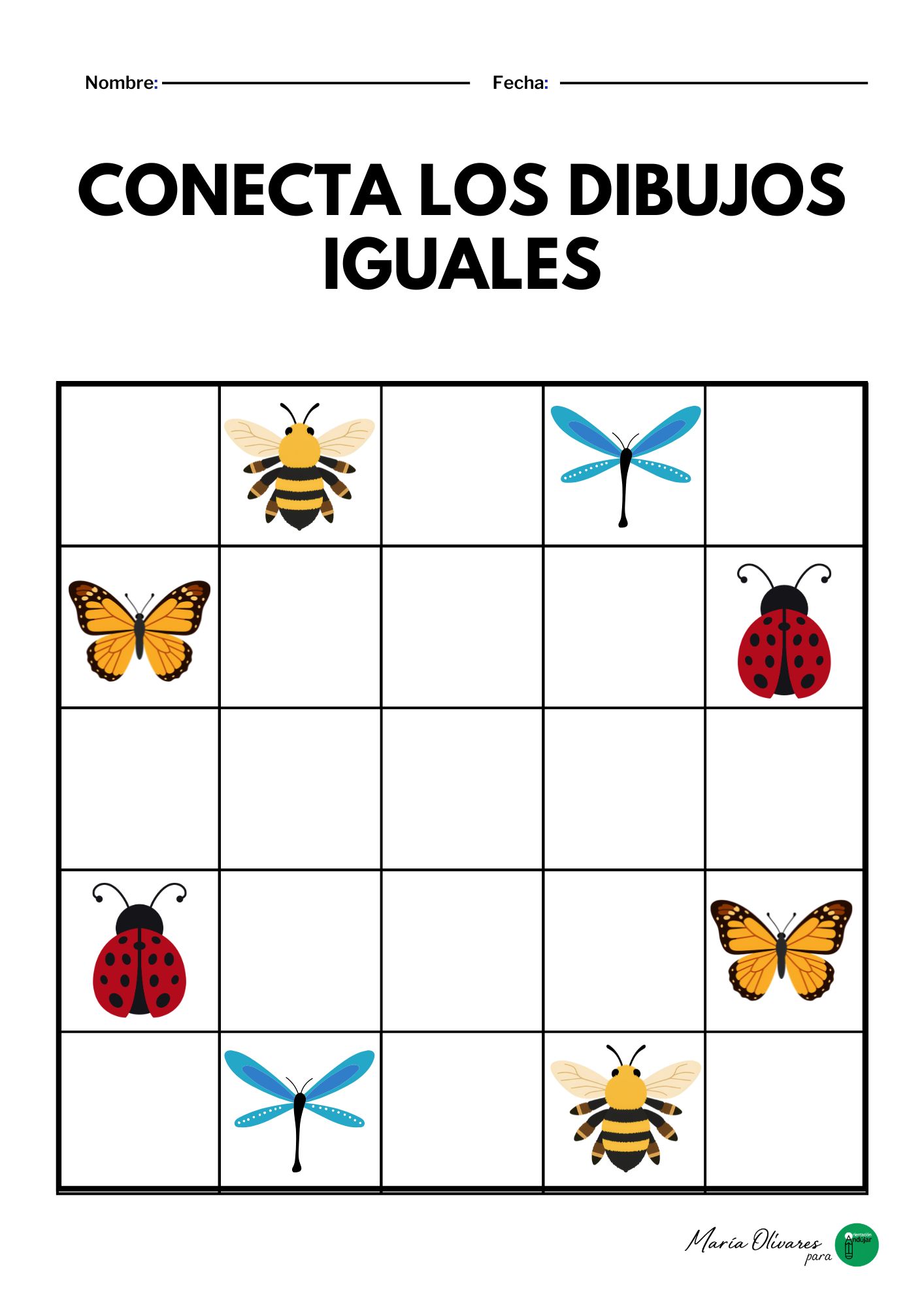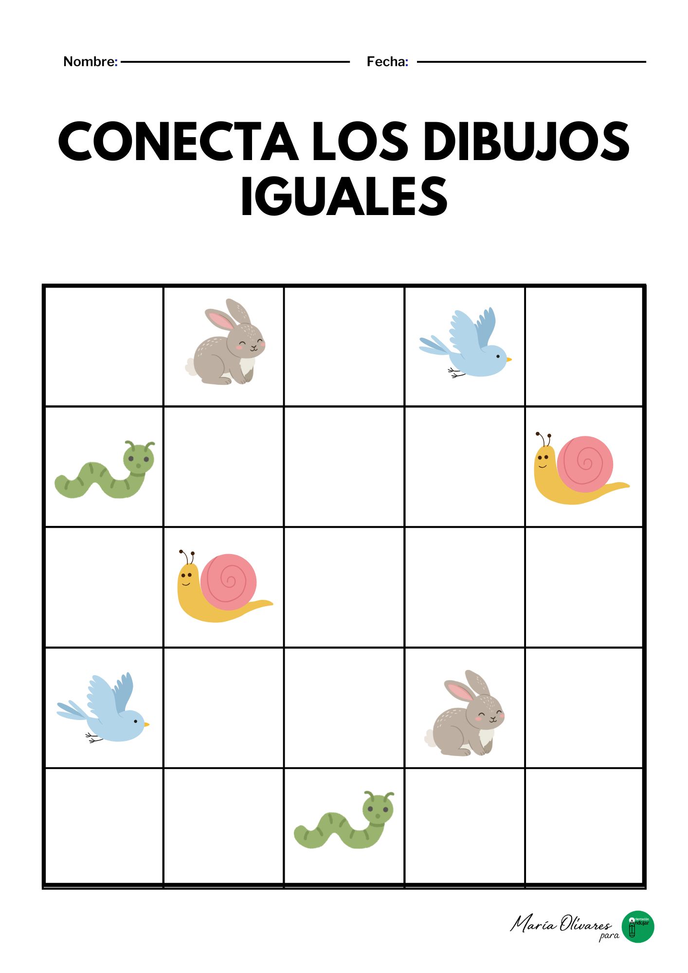 El alumno debe unir con una línea las parejas de dibujos que son exactamente iguales.