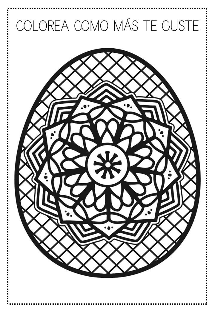 El documento incluye una colección de huevos mandala listos para colorear, cada uno con diseños únicos y detallados que invitan a experimentar con colores, patrones y combinaciones personales.