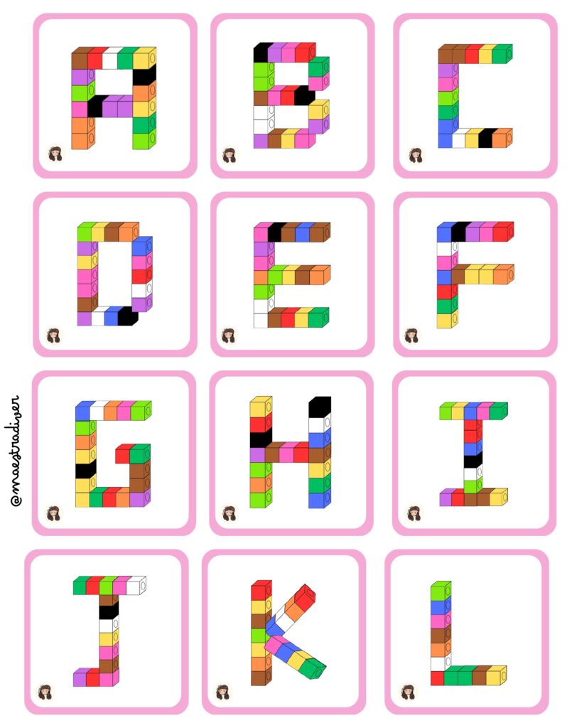 El abecedario en tarjetas de policubos es un material ideal para acompañar el aprendizaje de las letras desde un enfoque manipulativo, multisensorial y muy visual. Cada tarjeta presenta una letra en mayúscula y minúscula, acompañada de su representación con policubos, lo que facilita la discriminación visual, el reconocimiento gráfico y la asociación entre sonido y grafía.