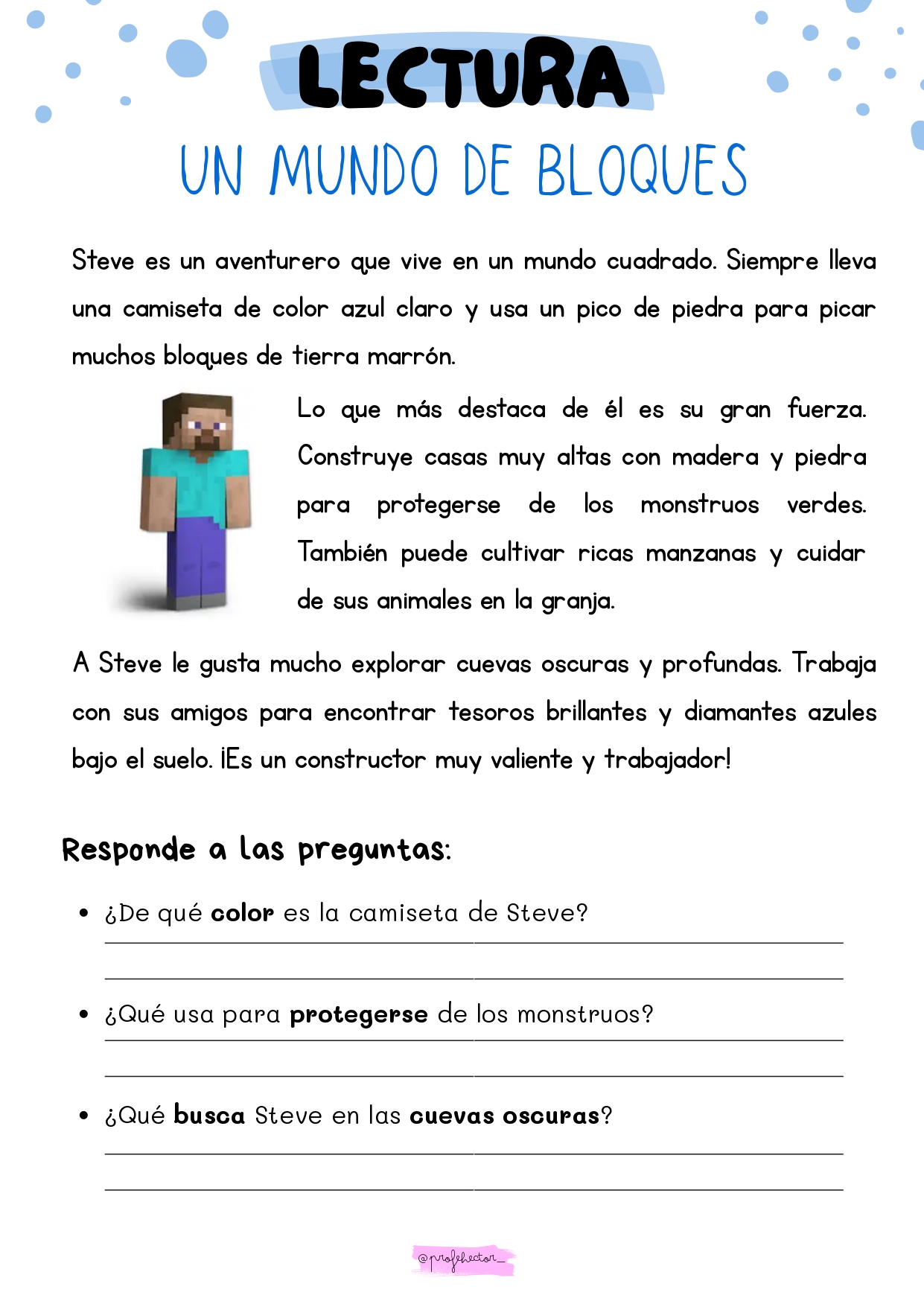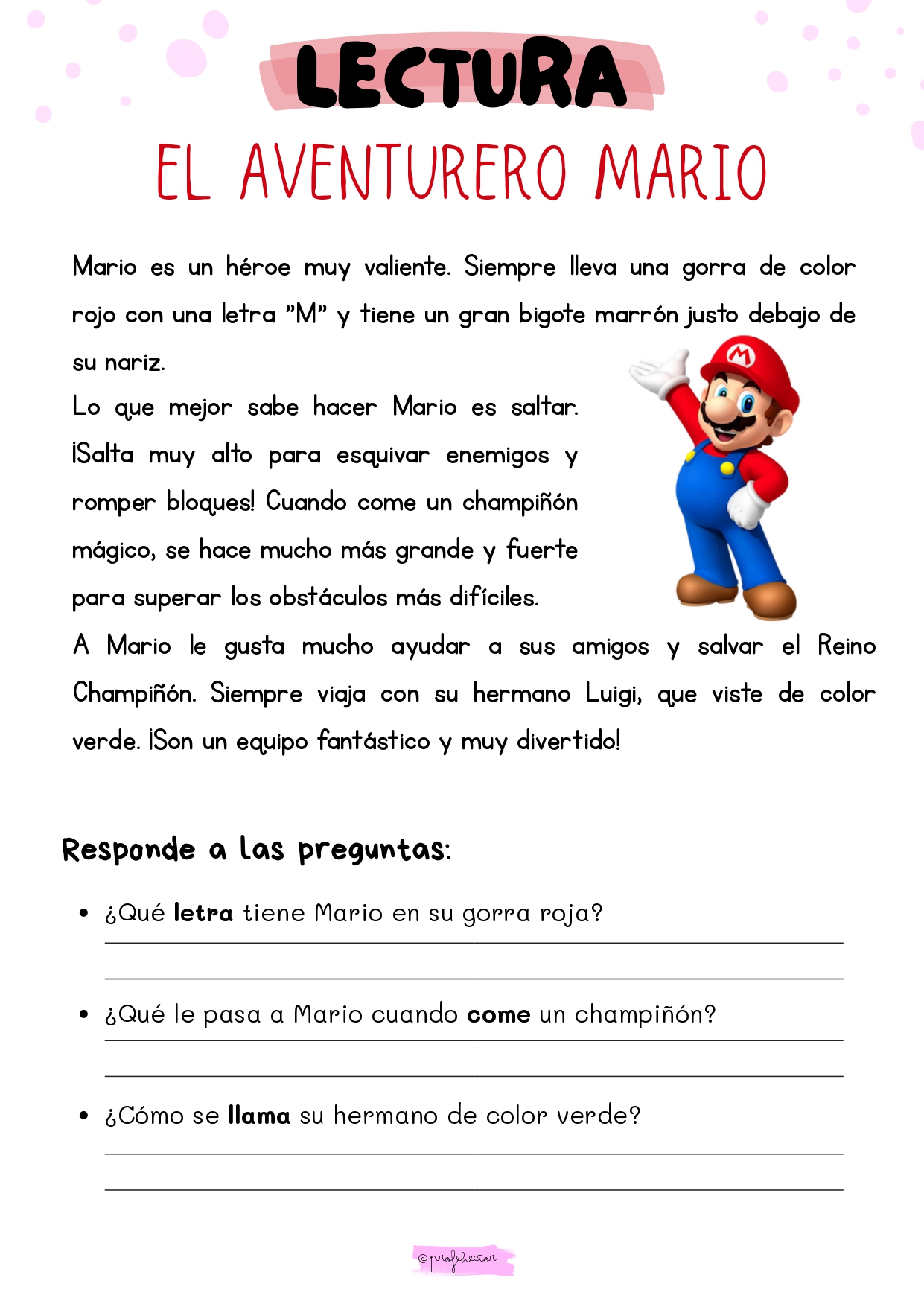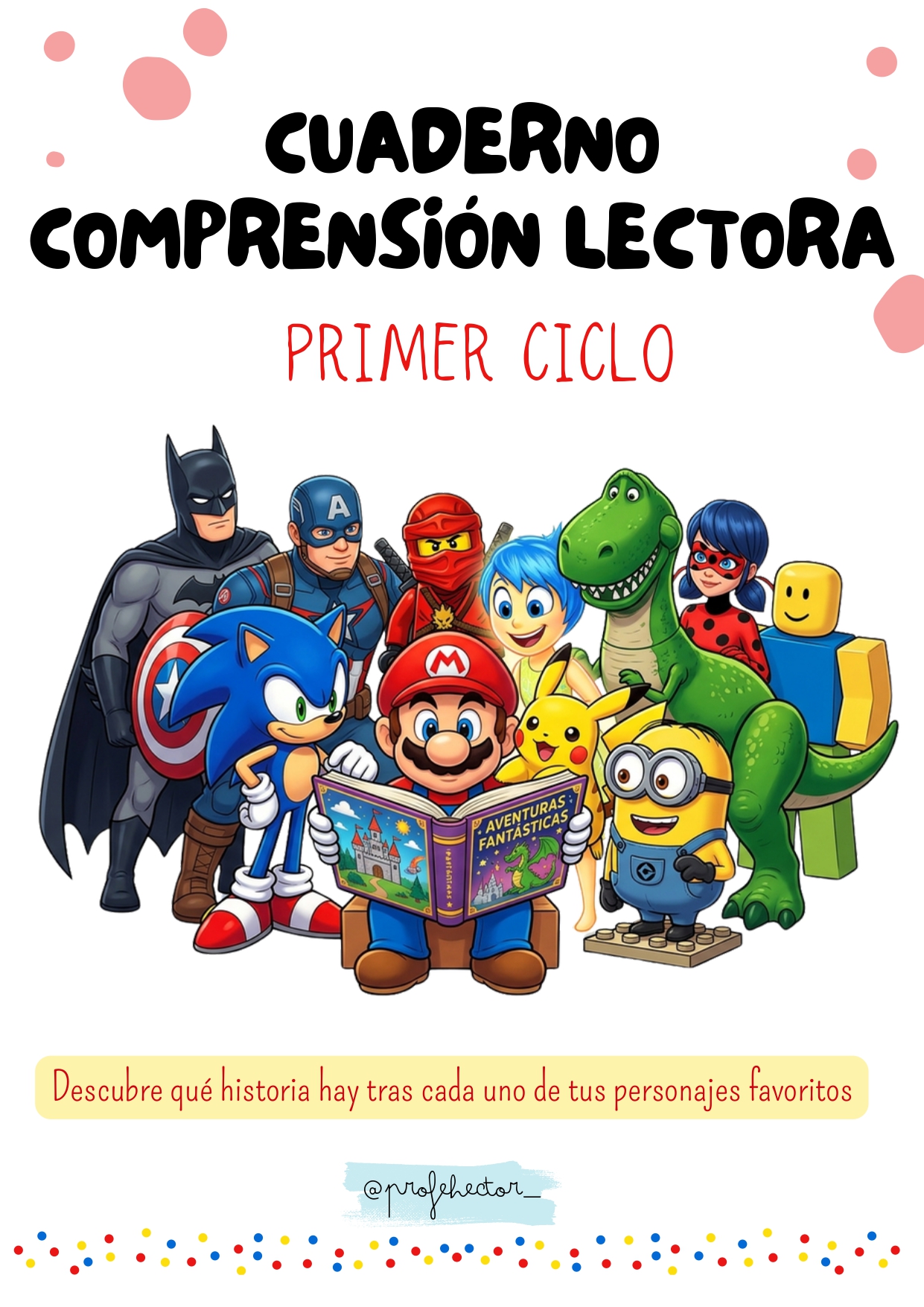 La comprensión lectora se fortalece cuando el alumnado conecta con lo que lee. Por eso, este cuaderno está diseñado para que los niños y niñas de 1º y 2º de Primaria practiquen la lectura a través de historias cortas protagonizadas por sus personajes favoritos: héroes, princesas, criaturas mágicas, dibujos animados y protagonistas de videojuegos.
