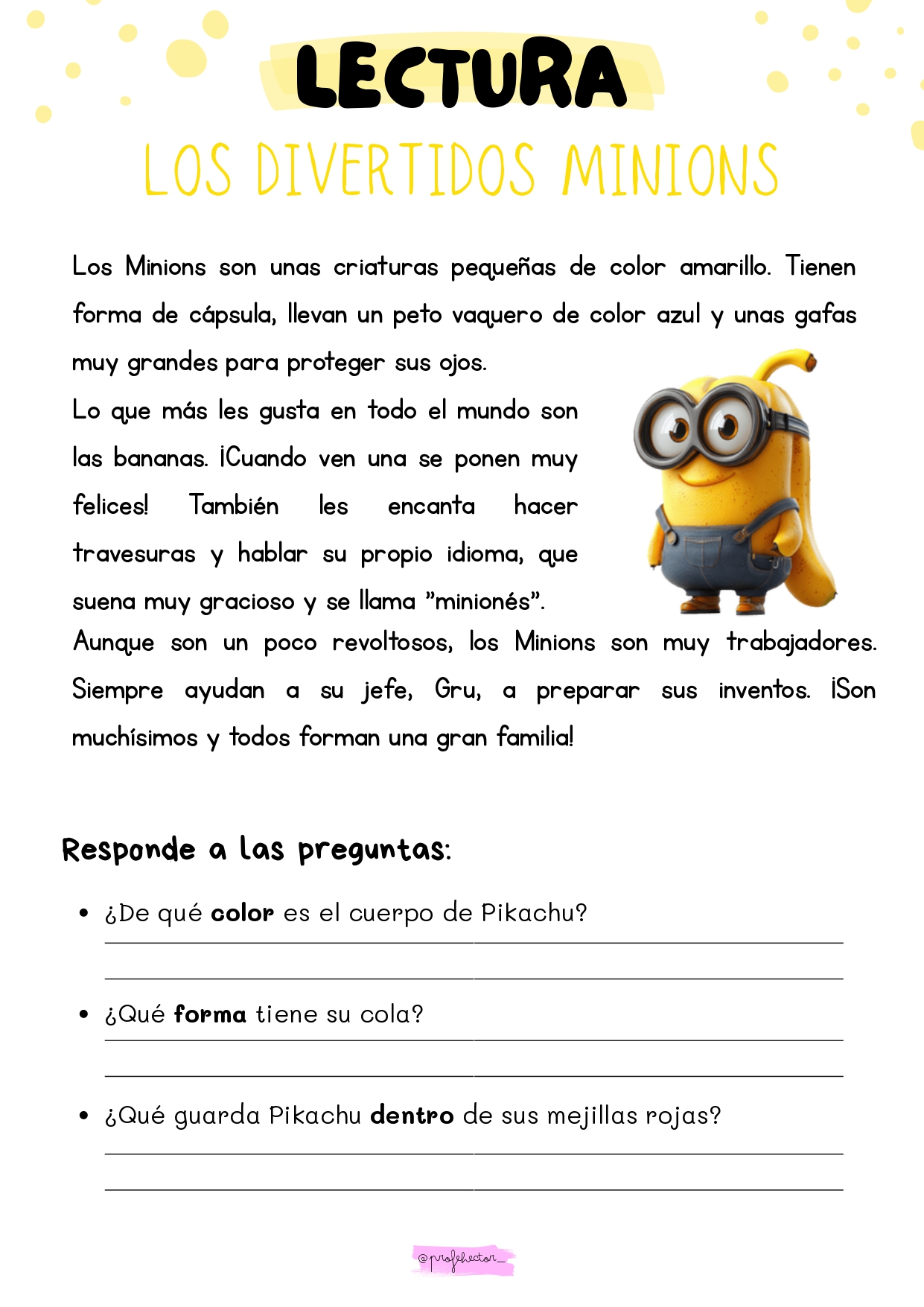 Comprension lectora 1º y 2º con sus personajes favoritos