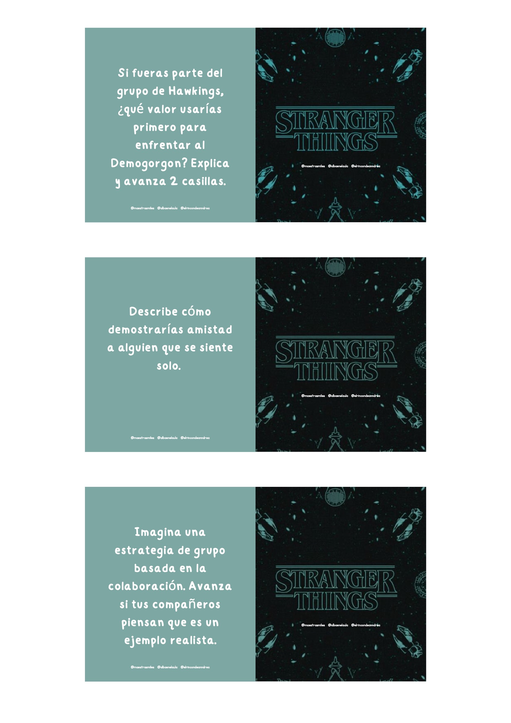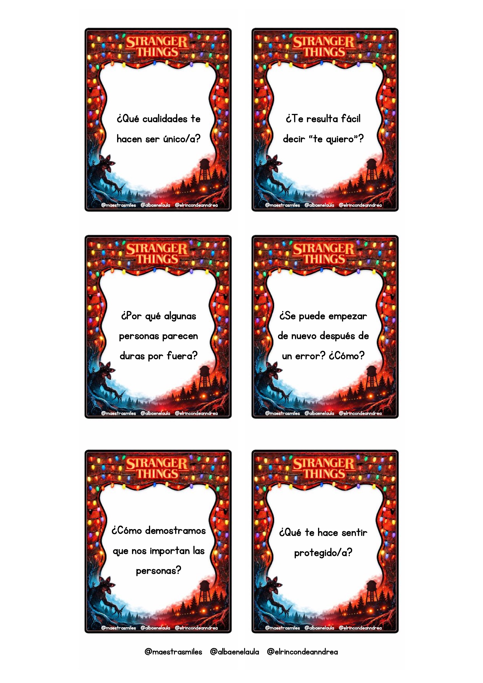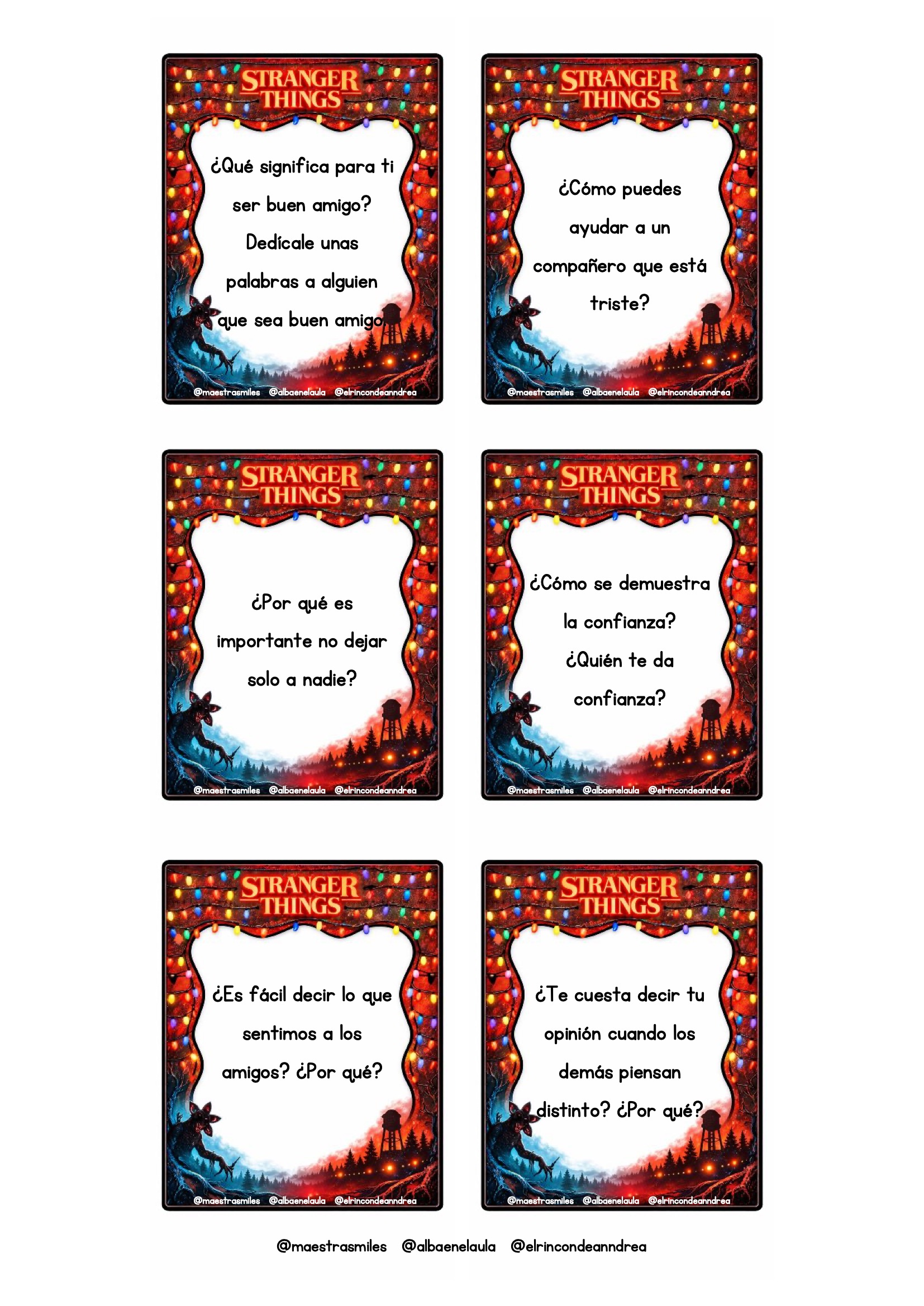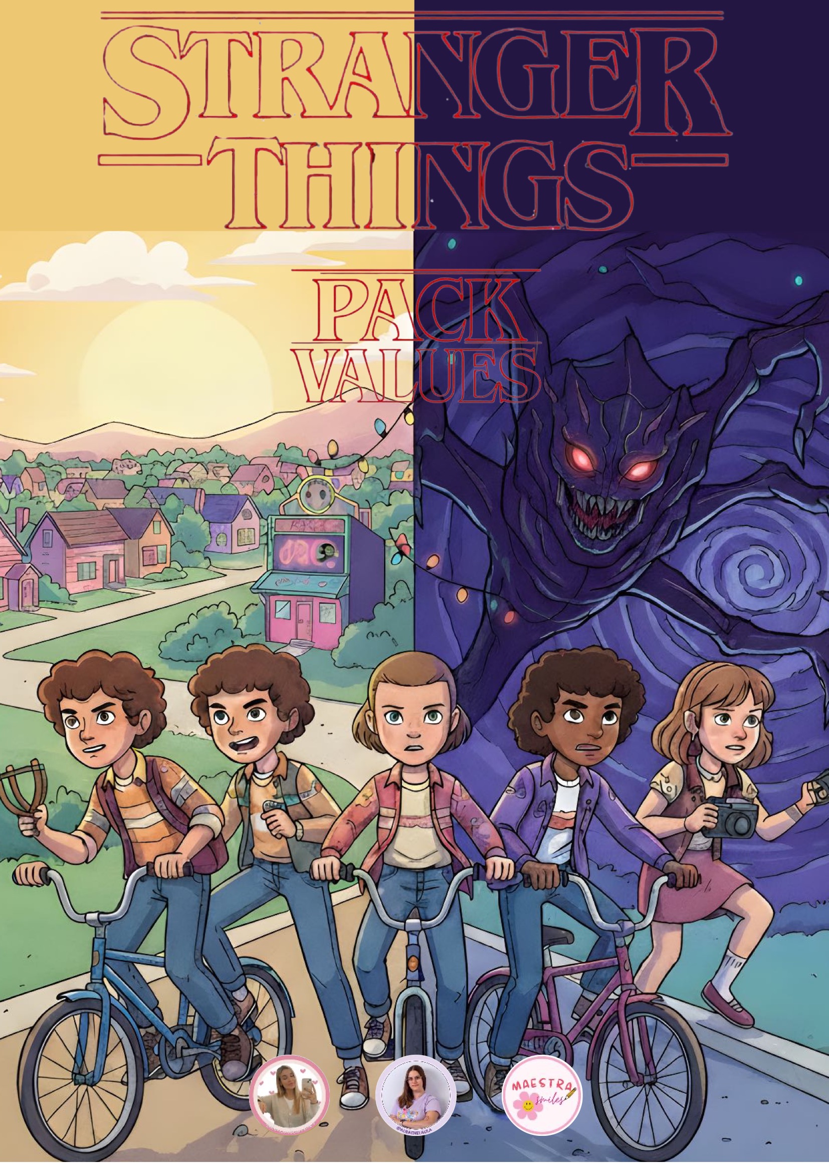 El universo de Stranger Things fascina por su mezcla de misterio, amistad, aventura y trabajo en equipo. Aprovechar ese interés para trabajar valores es una oportunidad fantástica para cualquier aula. Este nuevo pack está diseñado para que el alumnado reflexione sobre emociones, decisiones, vínculos y actitudes positivas a través de escenas y personajes inspirados en la serie, siempre adaptados al contexto escolar.