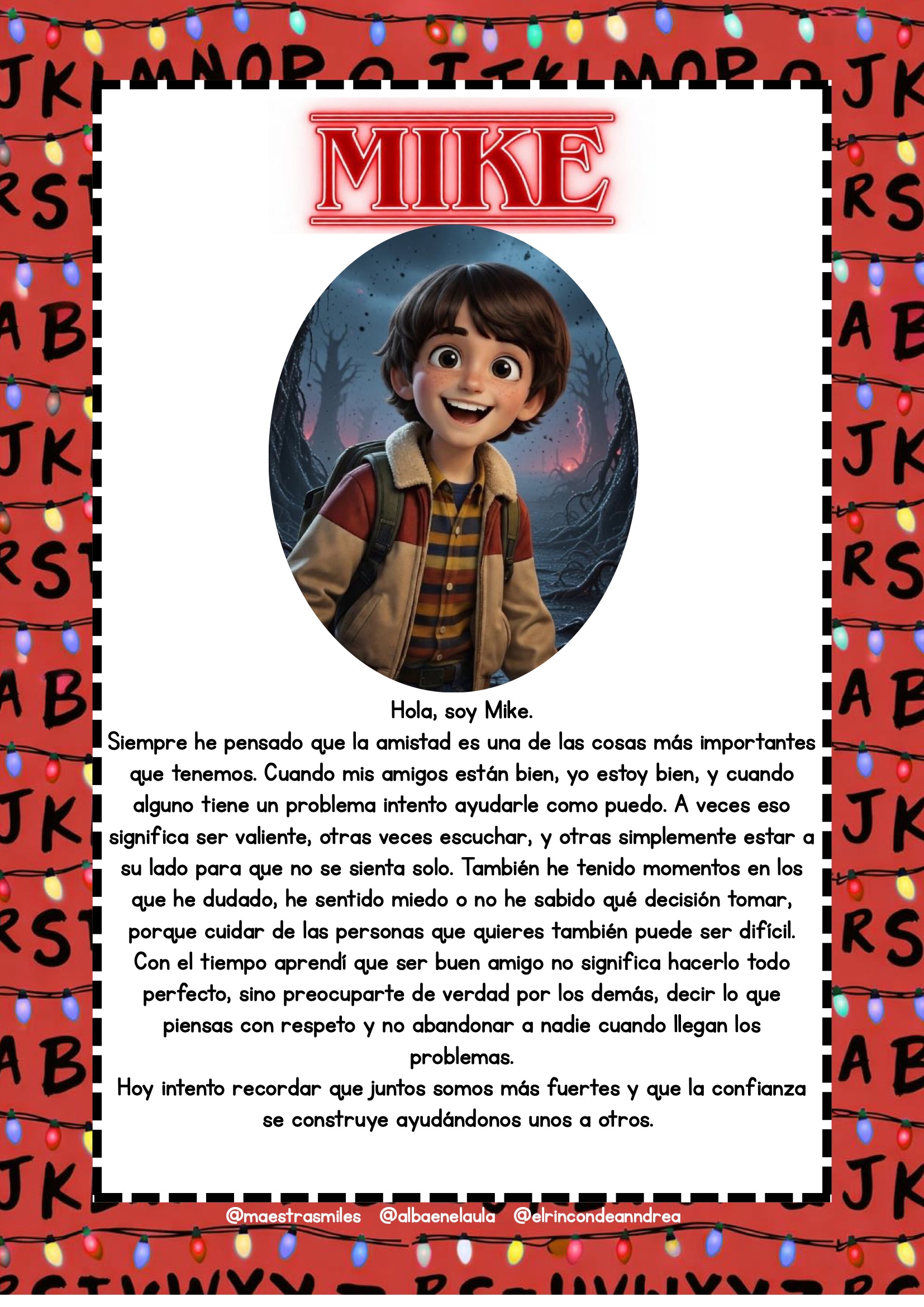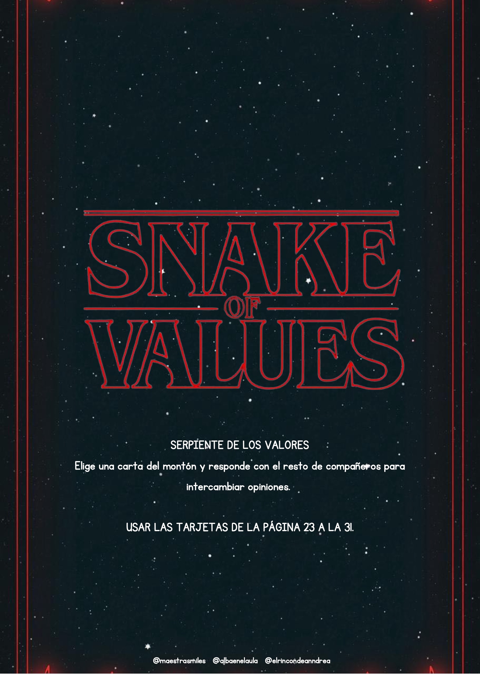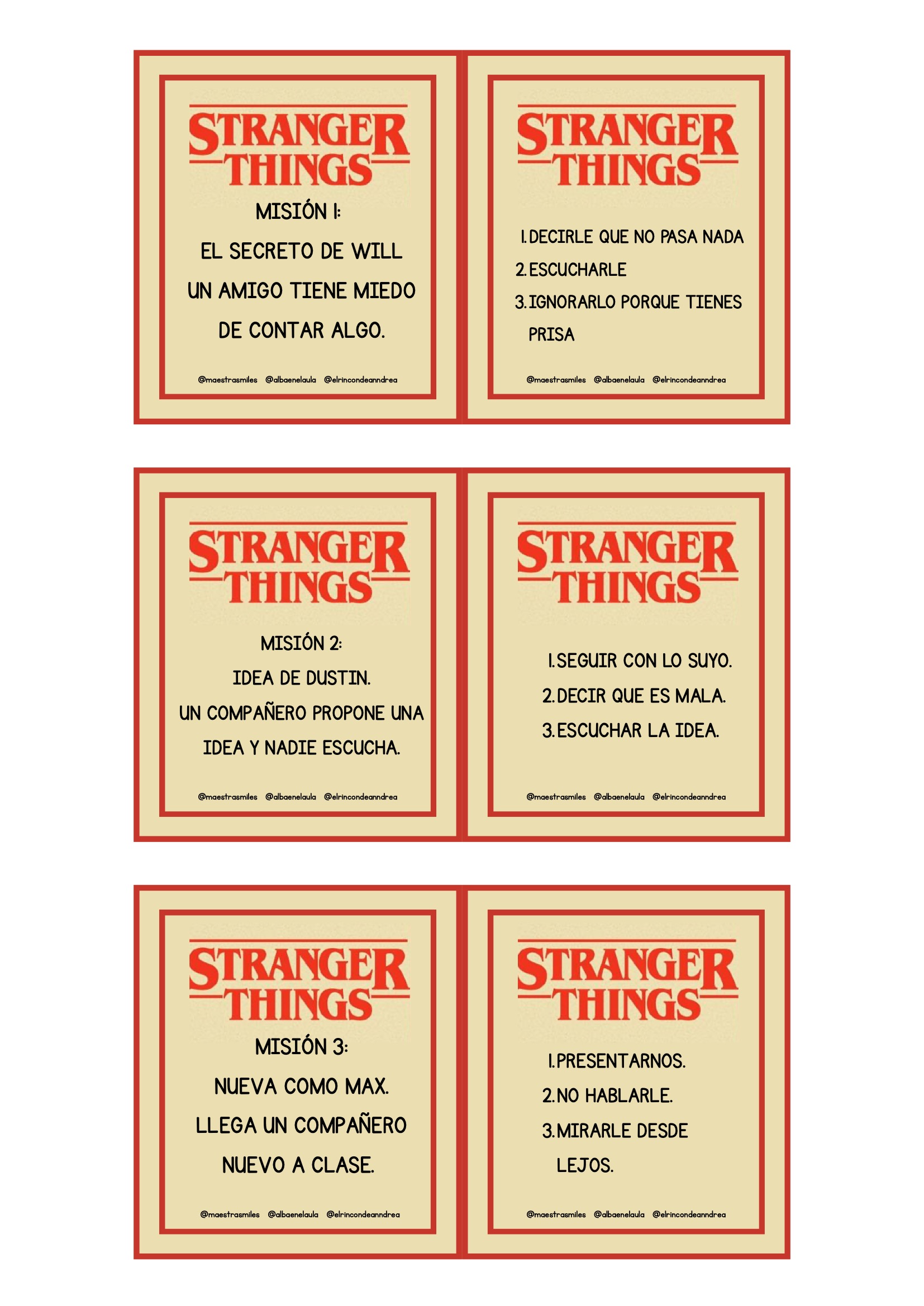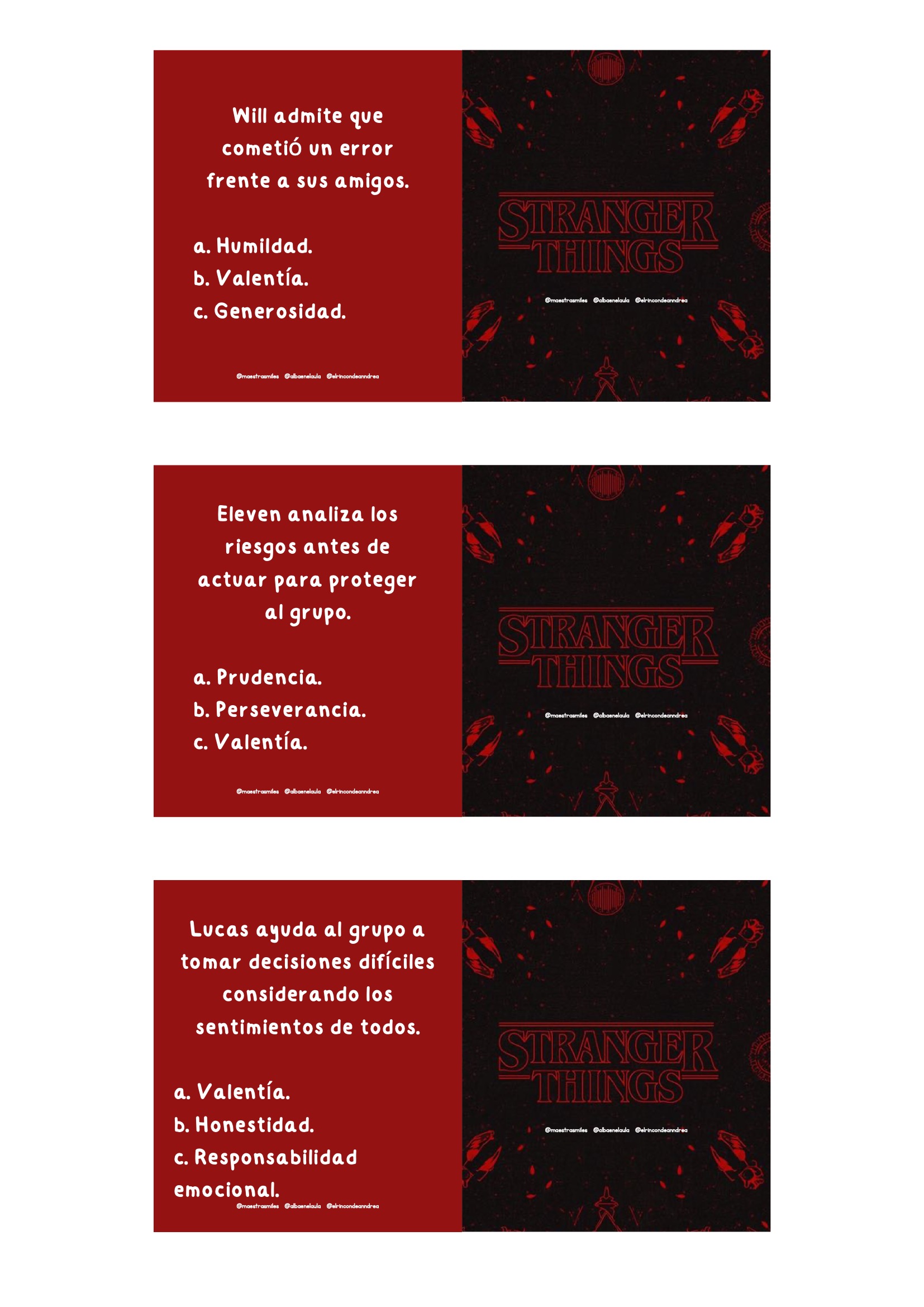 El universo de Stranger Things fascina por su mezcla de misterio, amistad, aventura y trabajo en equipo. Aprovechar ese interés para trabajar valores es una oportunidad fantástica para cualquier aula. Este nuevo pack está diseñado para que el alumnado reflexione sobre emociones, decisiones, vínculos y actitudes positivas a través de escenas y personajes inspirados en la serie, siempre adaptados al contexto escolar.