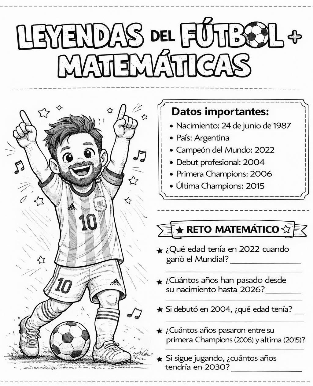 Cuando combinamos matemáticas con algo que apasiona al alumnado, el aprendizaje se vuelve mucho más significativo. Este recurso une datos reales de grandes leyendas del fútbol con retos matemáticos que invitan a pensar, calcular y razonar de forma divertida.