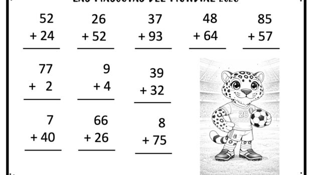 LAS MASCOTAS DEL MUNDIAL SUMAS Y COLOREA CON DE UNA Y DOS CRIFRAS12 Publicado por orientacionandujar hace 8 horas