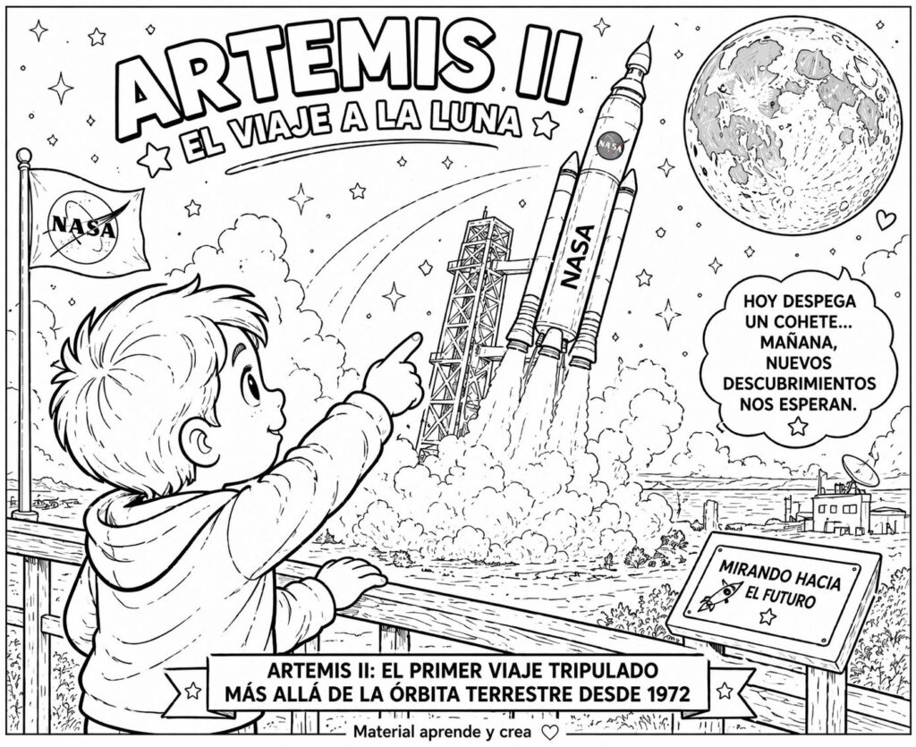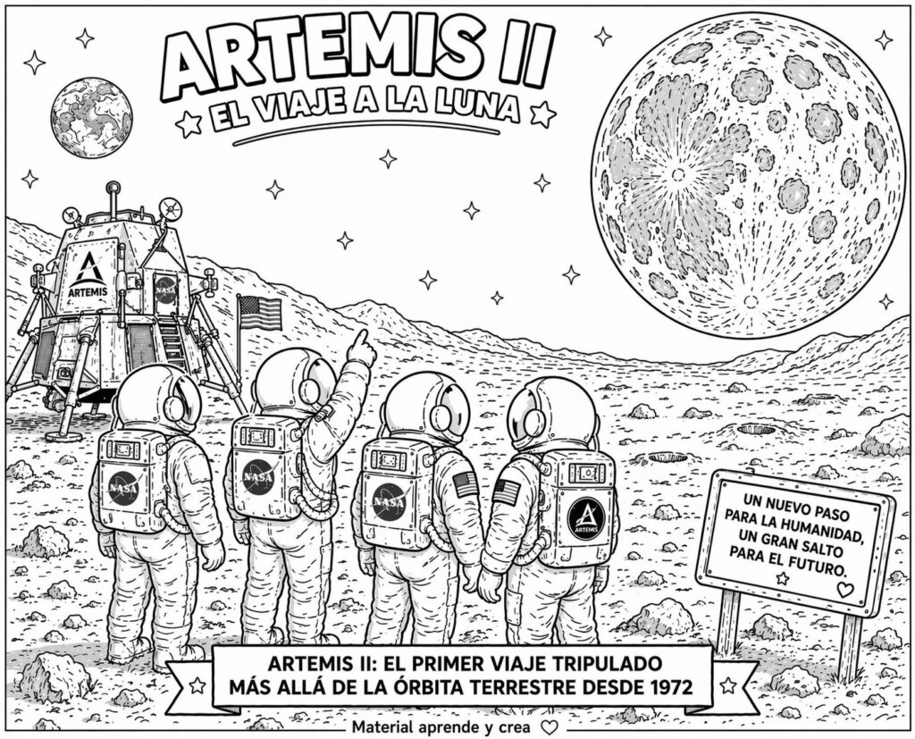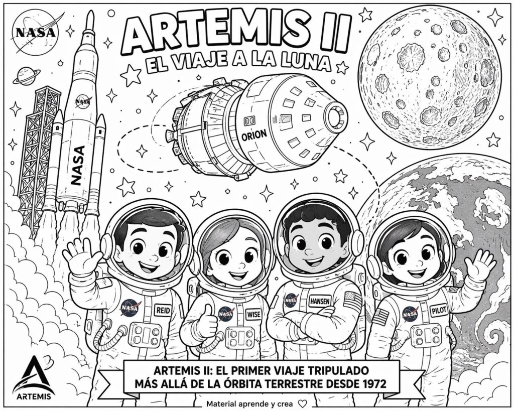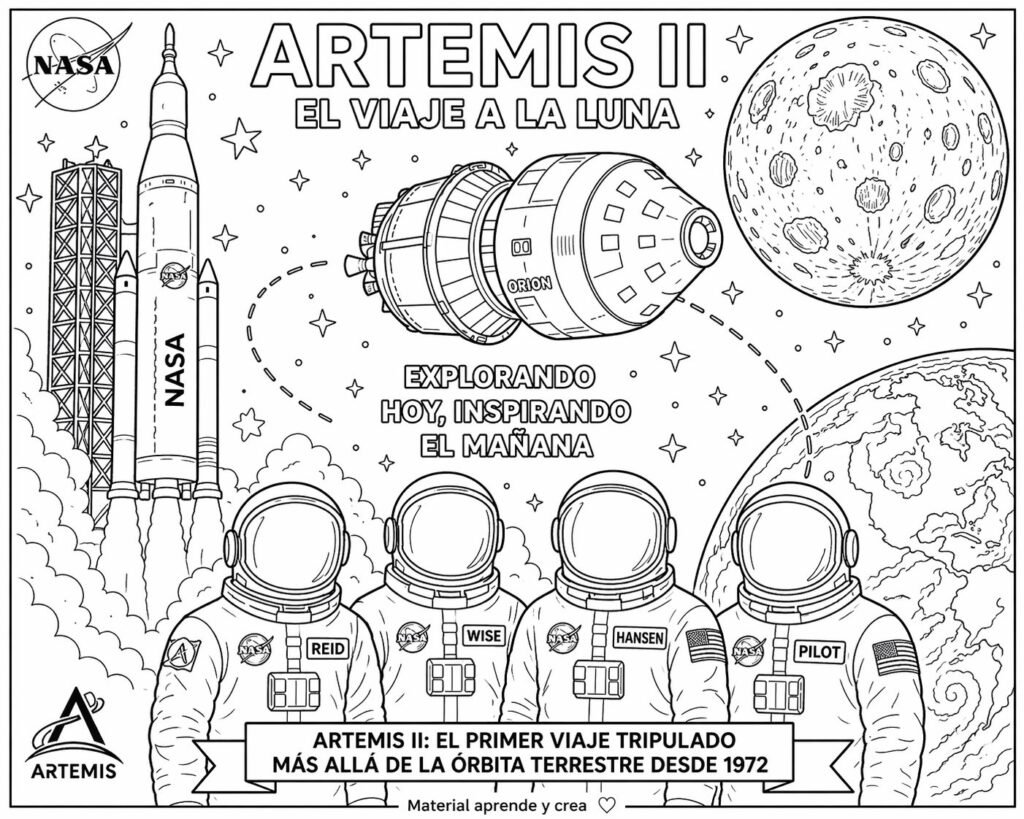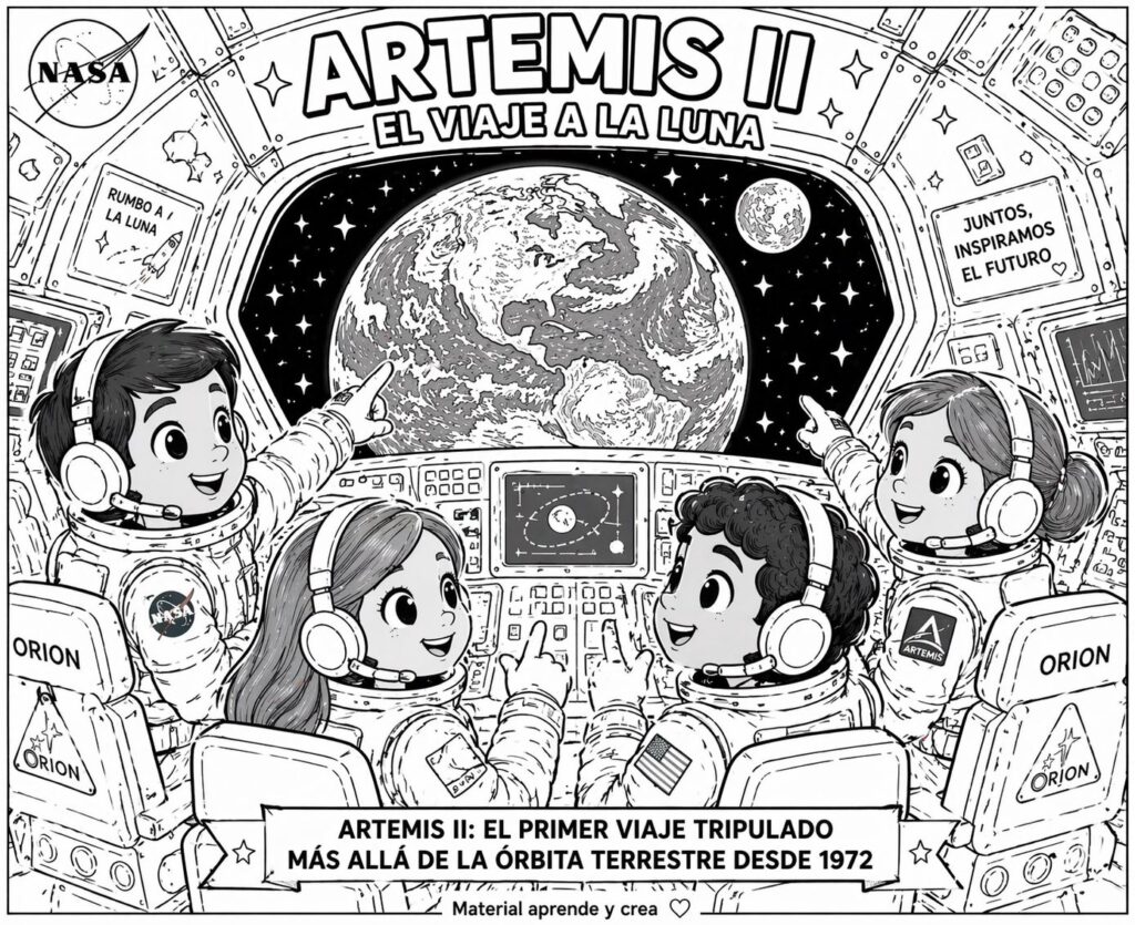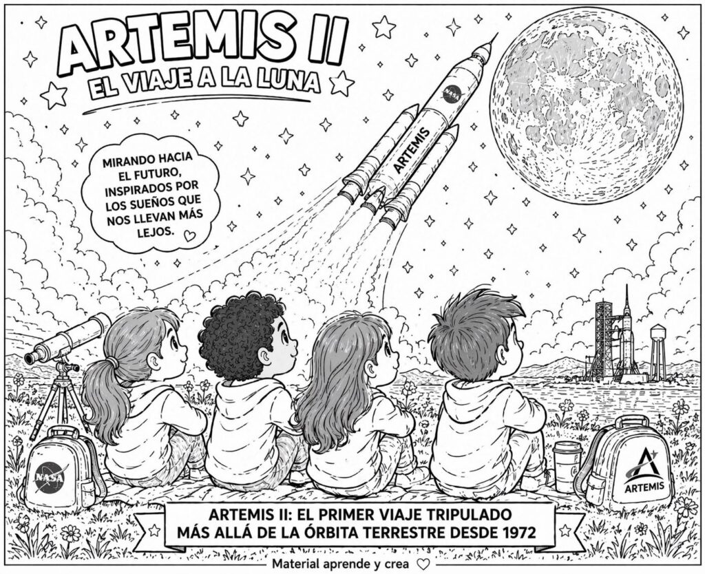 La exploración espacial vuelve a emocionarnos. Después de más de 50 años desde las misiones Apolo, la NASA prepara ARTEMIS II, la primera misión tripulada que viajará más allá de la órbita terrestre desde 1972. Este recurso Aprende y Colorea acerca esta misión histórica al alumnado de forma visual, sencilla y creativa.