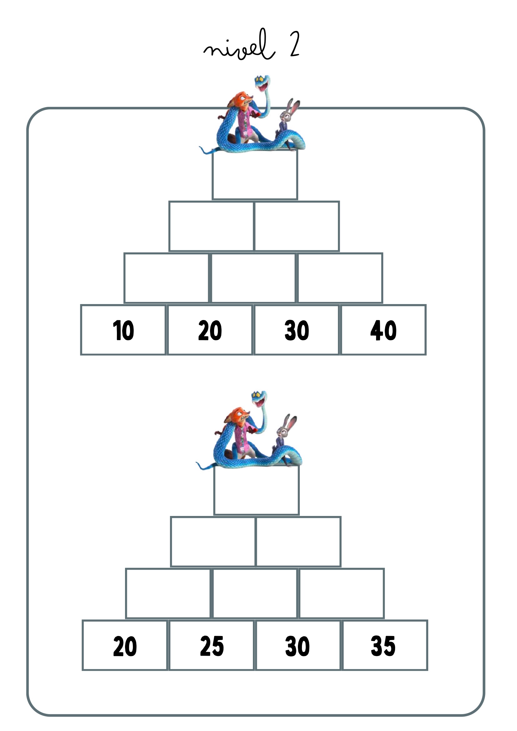 Las pirámides matemáticas son una forma visual y manipulativa de practicar operaciones básicas y relaciones numéricas. En este recurso, los protagonistas son los personajes de Zootrópolis, que acompañan al alumnado en distintos niveles de dificultad para aprender jugando.