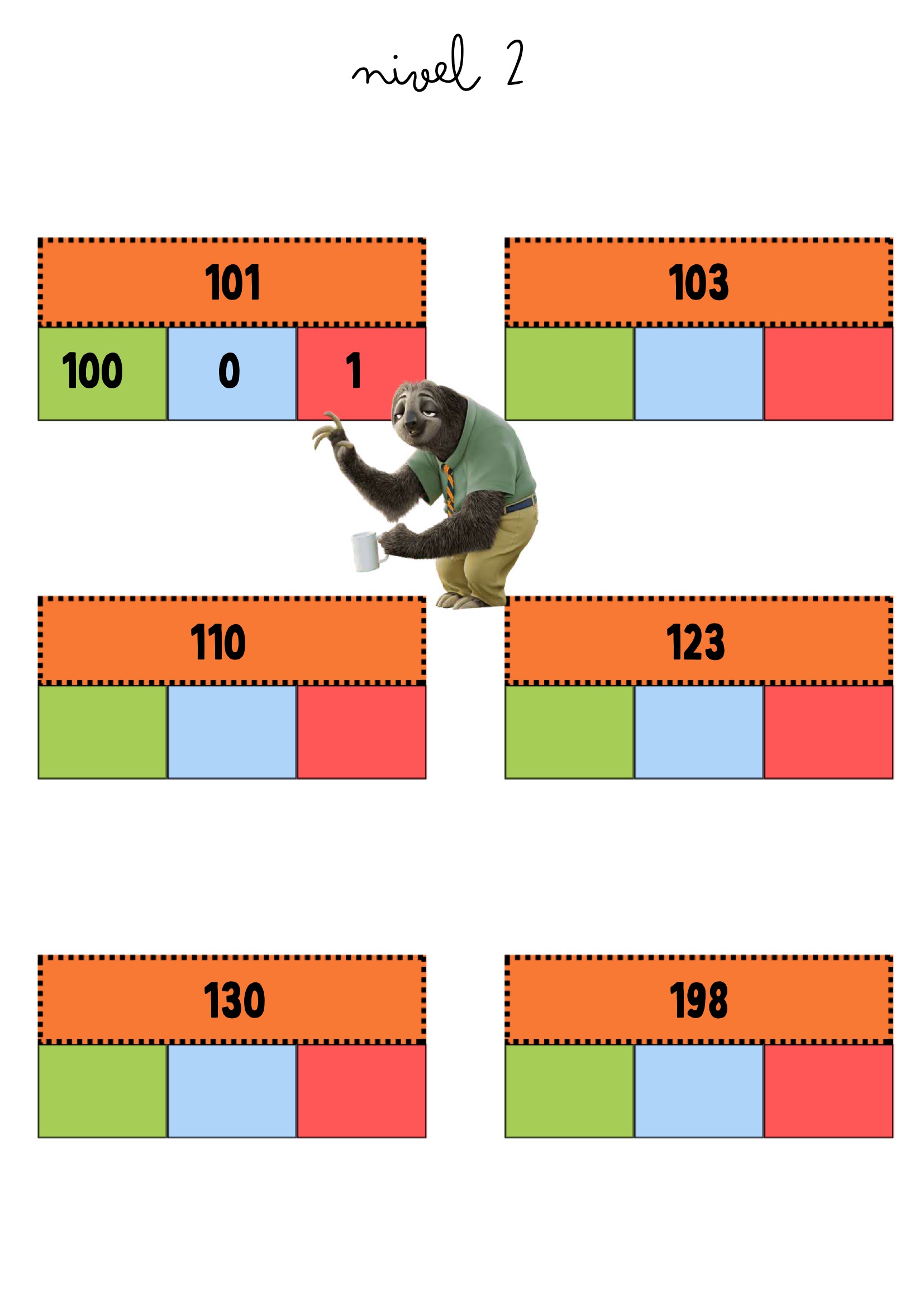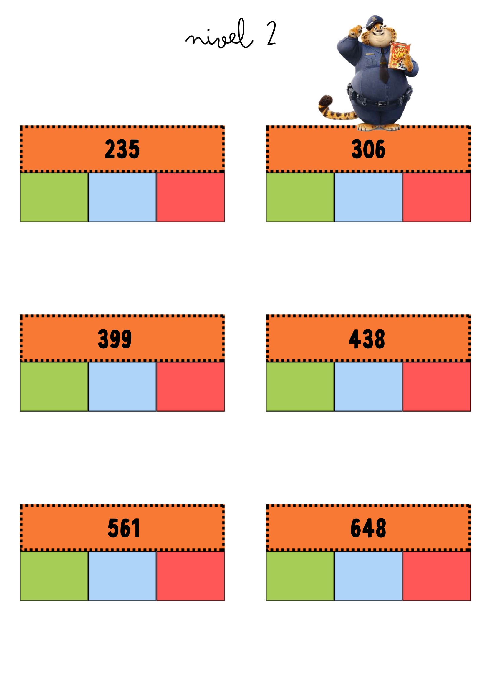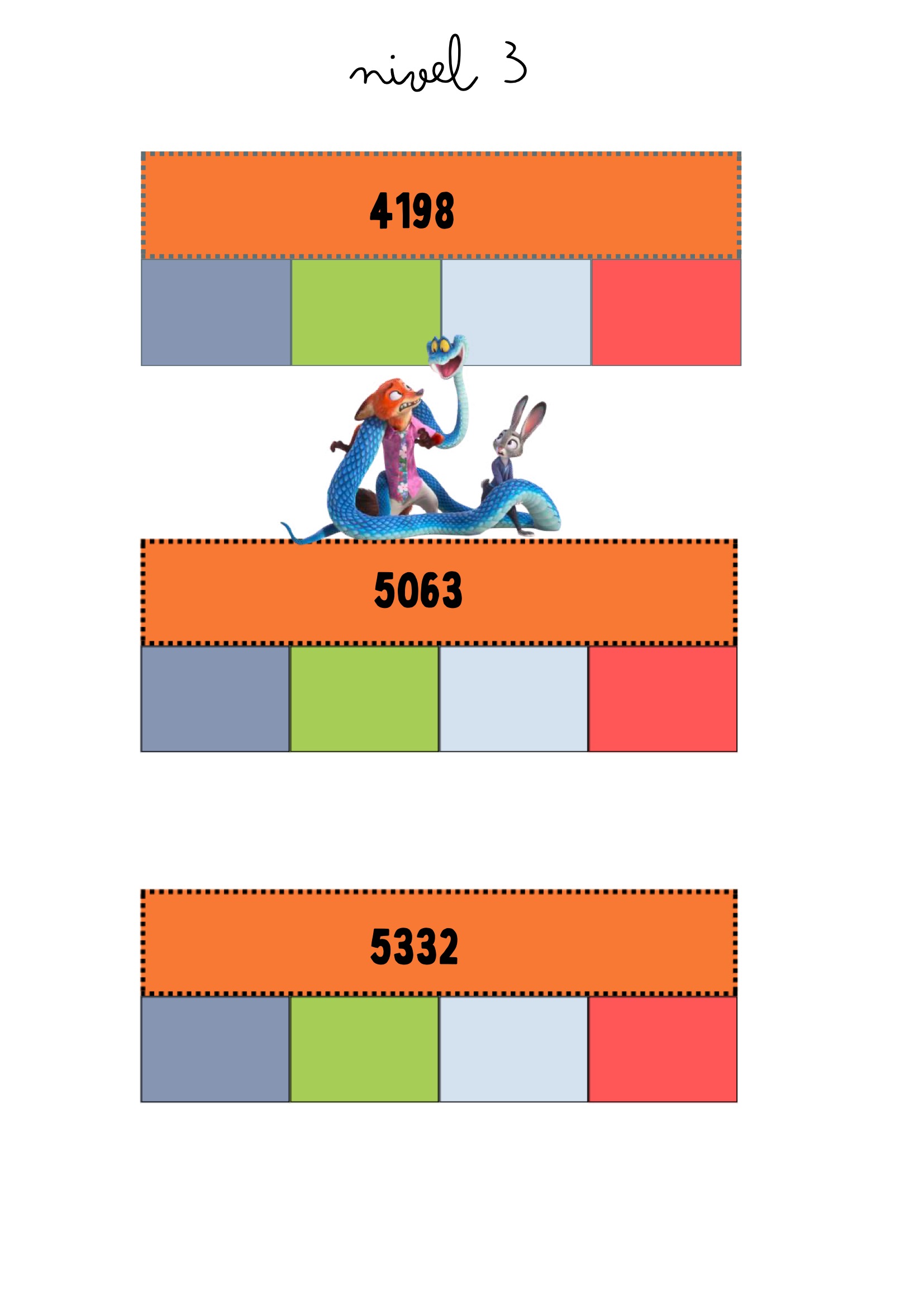 La descomposición numérica es una habilidad clave para comprender cómo están formados los números y para desarrollar estrategias de cálculo mental. Este recurso propone tarjetas visuales protagonizadas por personajes de Zootrópolis, que acompañan al alumnado a través de distintos niveles de dificultad: desde números de dos cifras hasta números de cuatro cifras.