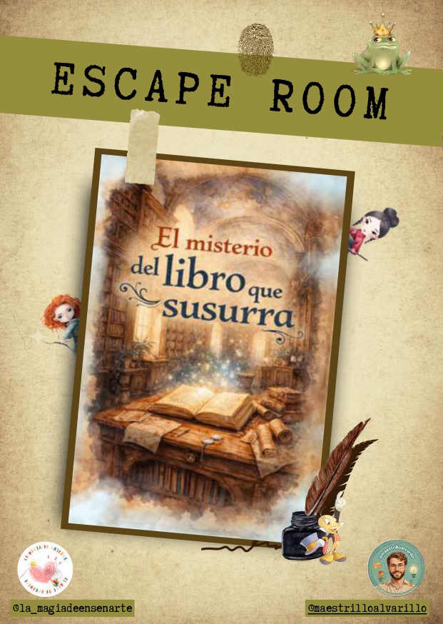 “𝔼𝕝 𝕞𝕚𝕤𝕥𝕖𝕣𝕚𝕠 𝕕𝕖𝕝 𝕝𝕚𝕓𝕣𝕠 𝕢𝕦𝕖 𝕤𝕦𝕤𝕦𝕣𝕣𝕒” es un escape room educativo diseñado para el aula. A través de él, nuestro alumnado trabaja en equipos y supera retos de lectura, textos y lógica para avanzar en la historia.